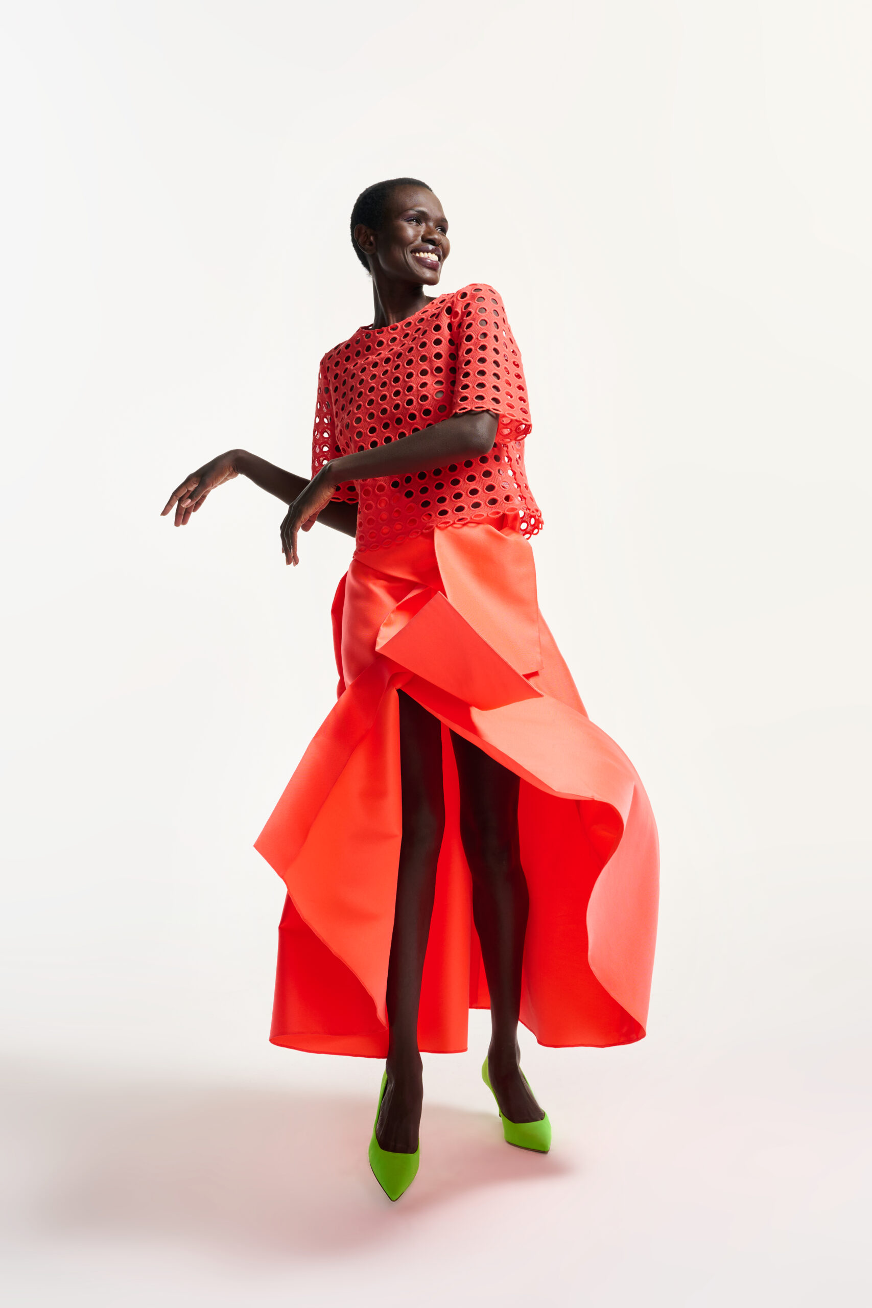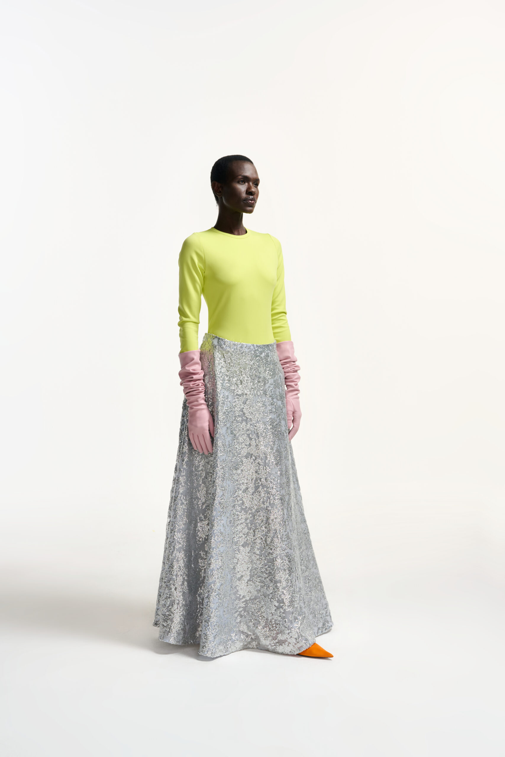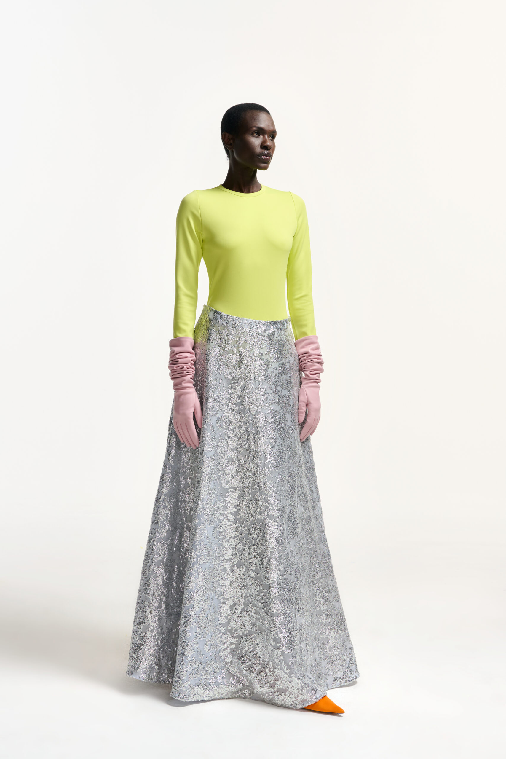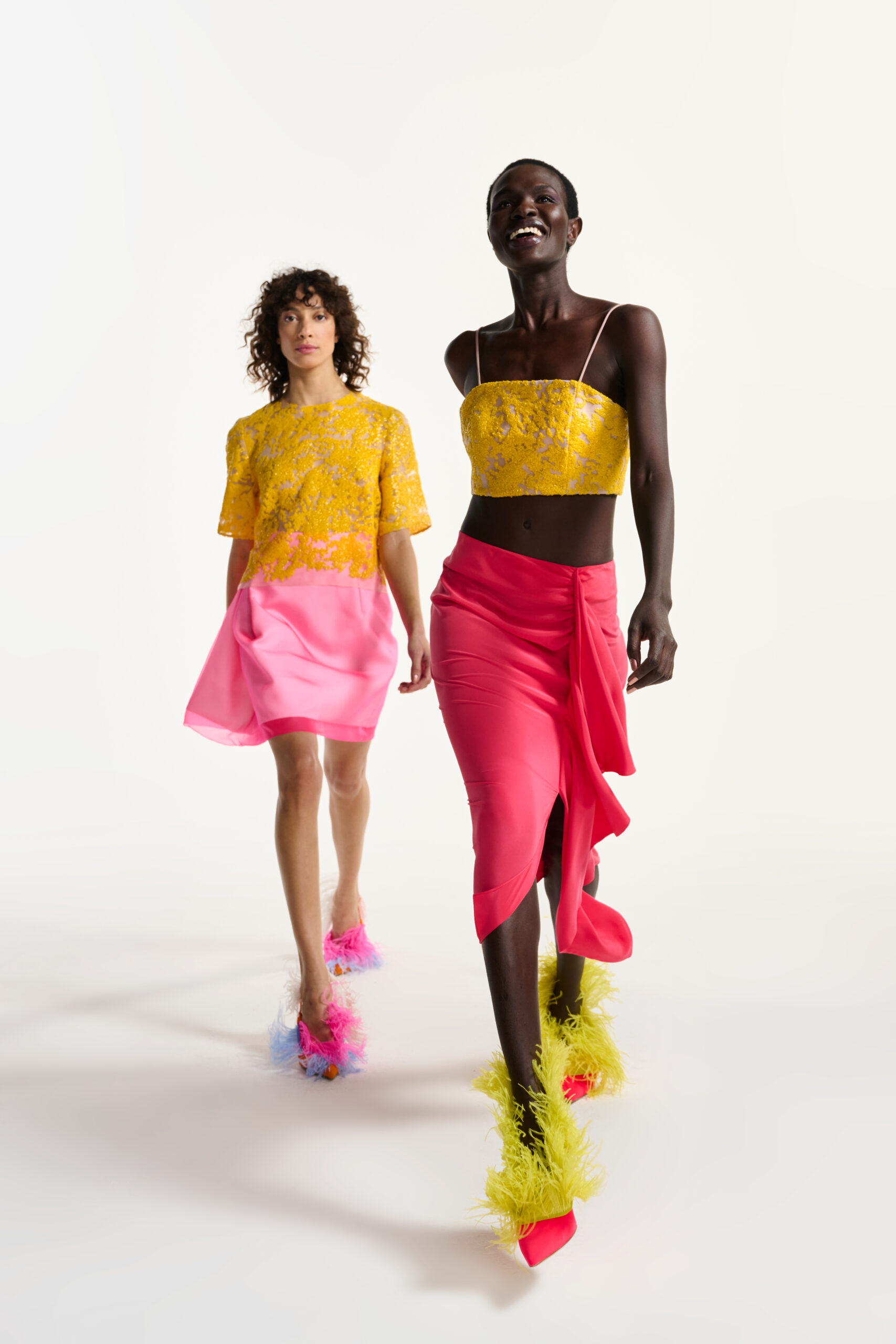 La Maison Natan propose des jupes drapées coordonnées avec des tops ouverts dans le dos, des décolletés plongeants et des feux d’artifice d’optimisme sur la peau. La collection reste fidèle à l’héritage de la Maison, tout en insufflant des accords plus rebelles pour cette nouvelle année de célébration en fanfare.