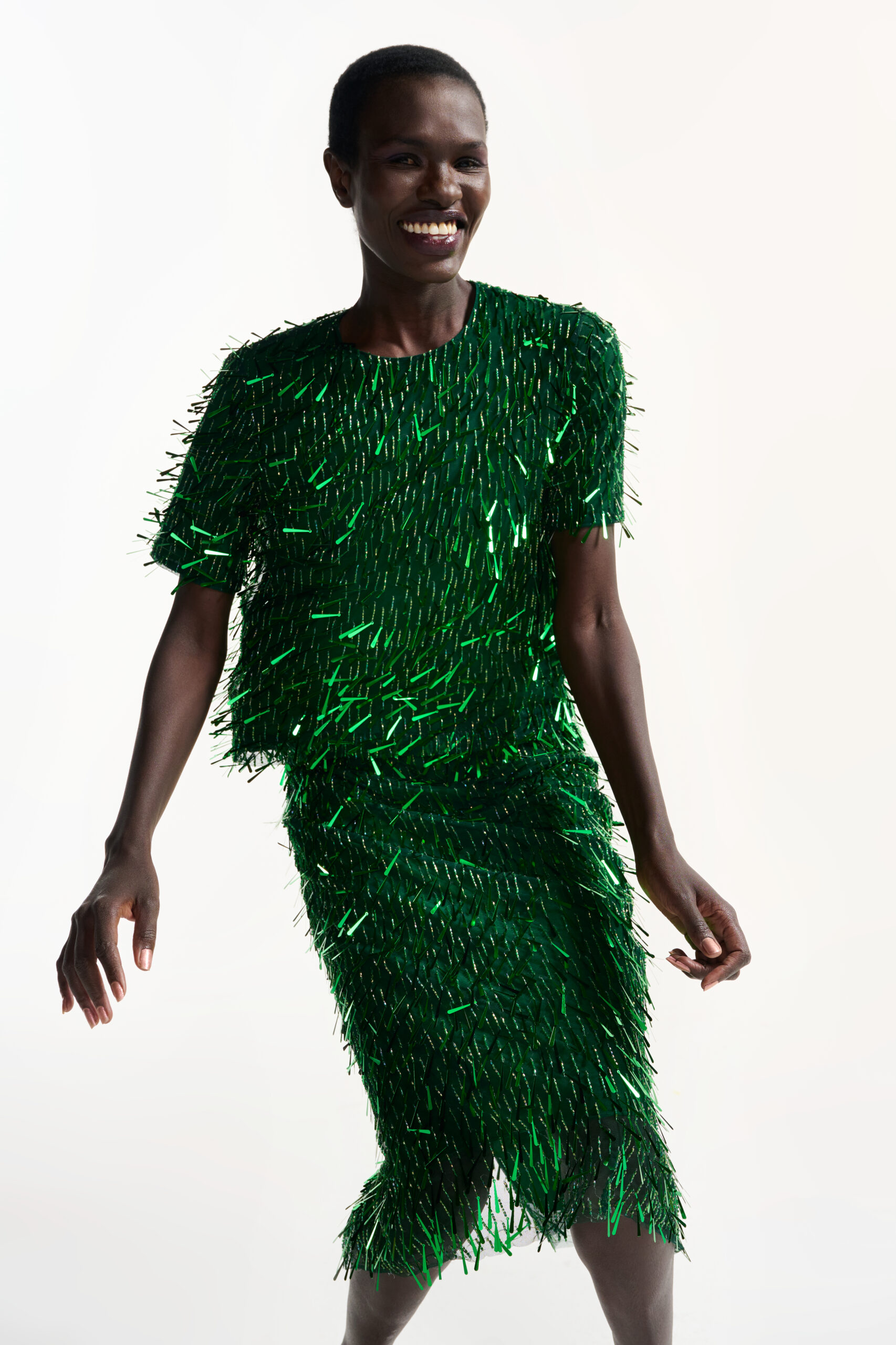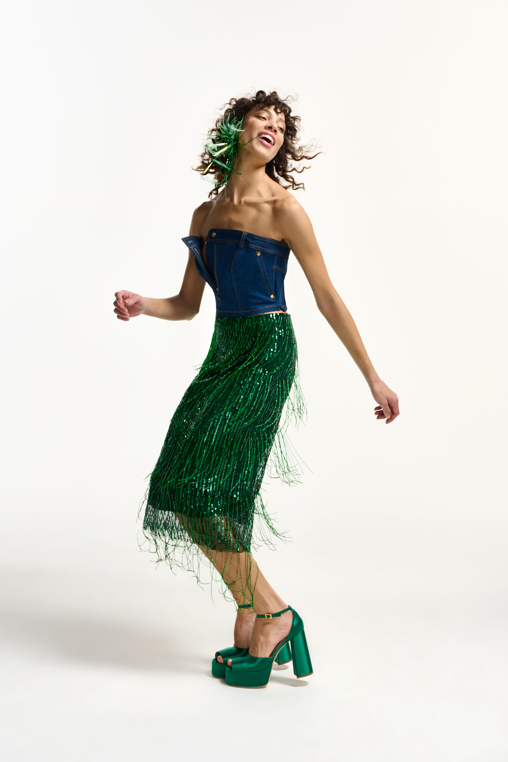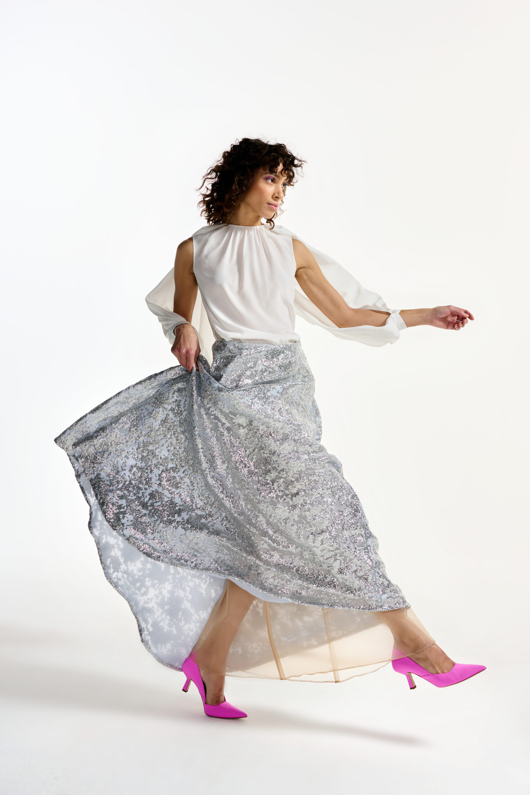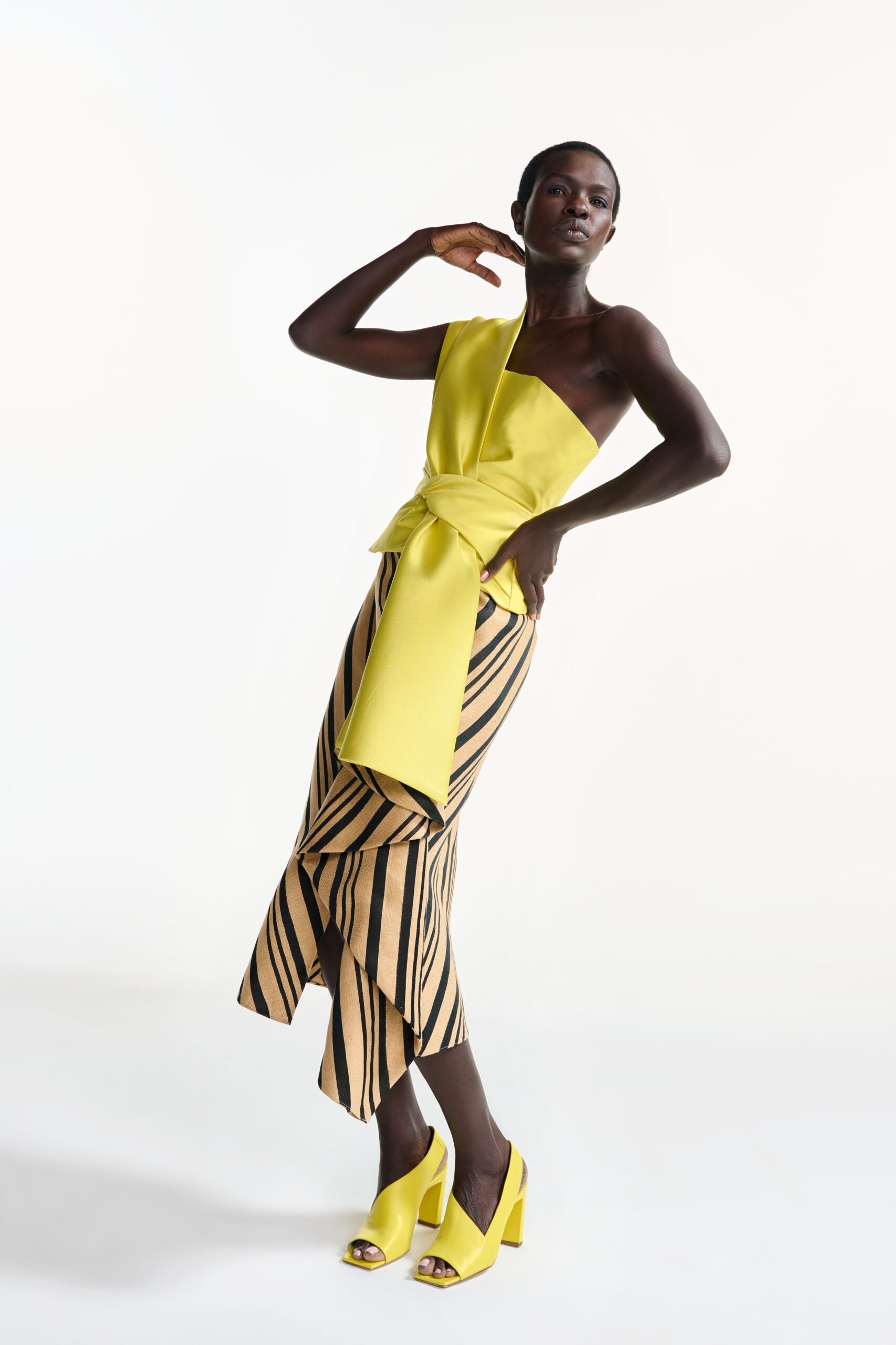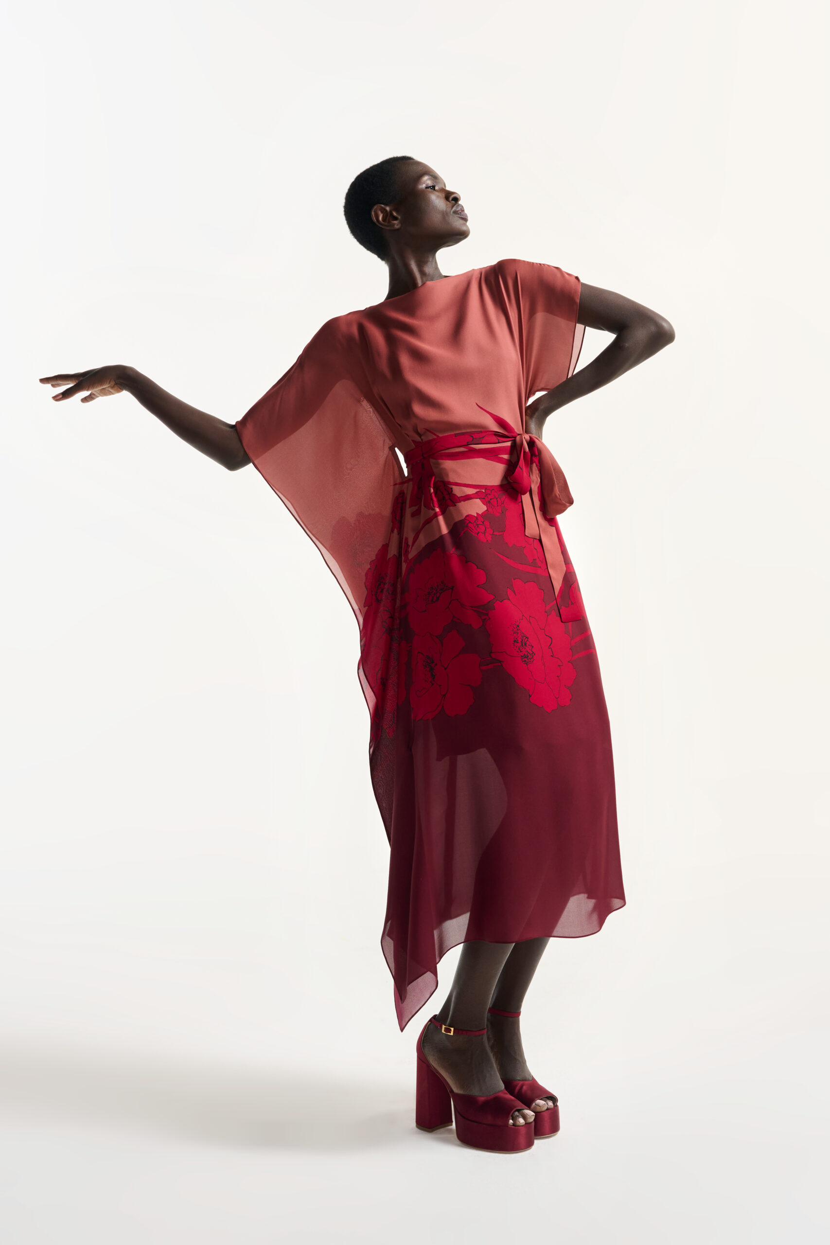 La Maison Natan propose des jupes drapées coordonnées avec des tops ouverts dans le dos, des décolletés plongeants et des feux d’artifice d’optimisme sur la peau. La collection reste fidèle à l’héritage de la Maison, tout en insufflant des accords plus rebelles pour cette nouvelle année de célébration en fanfare.