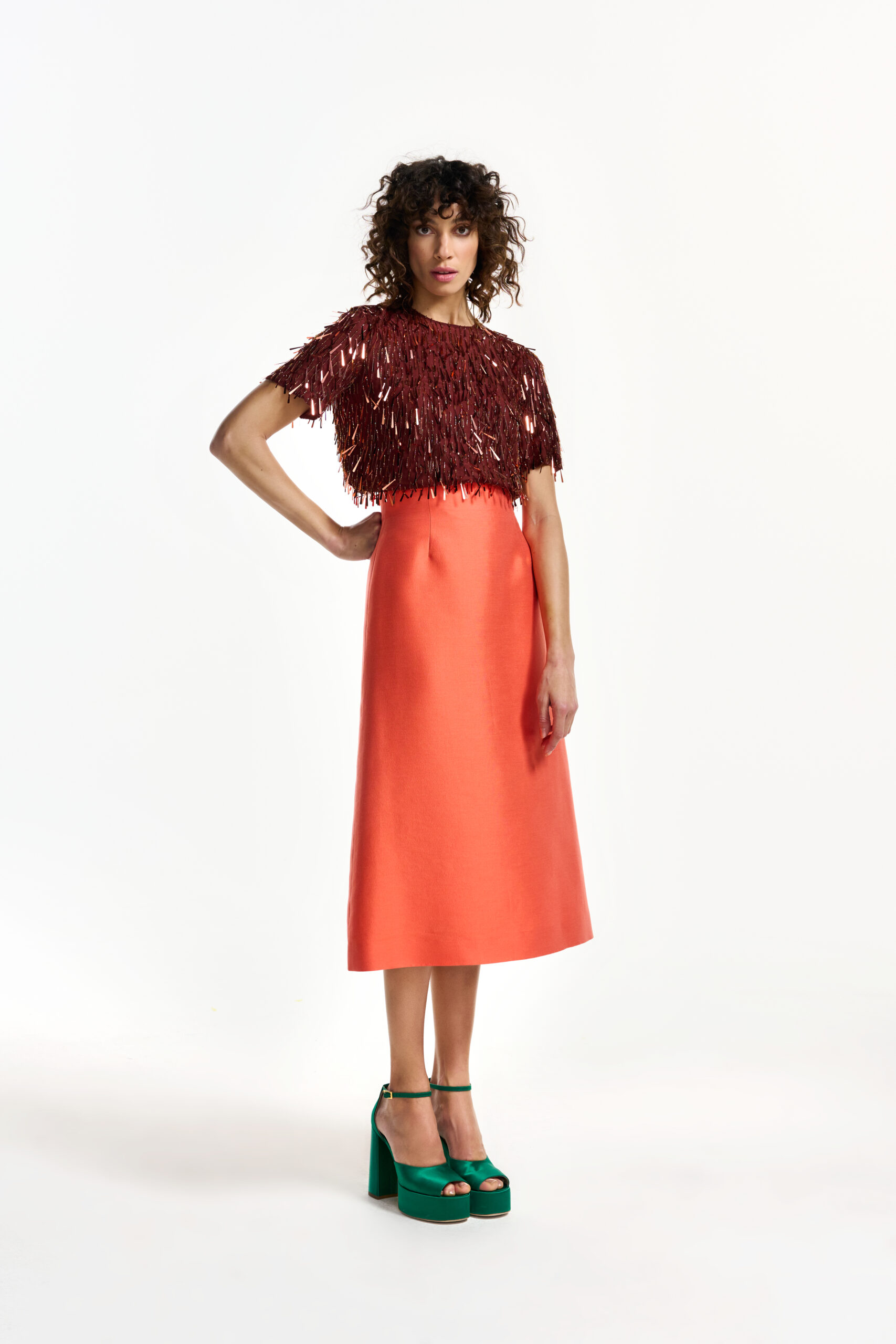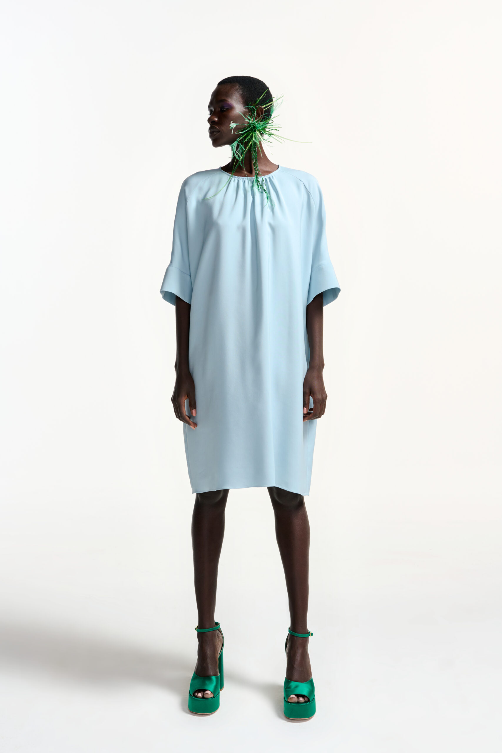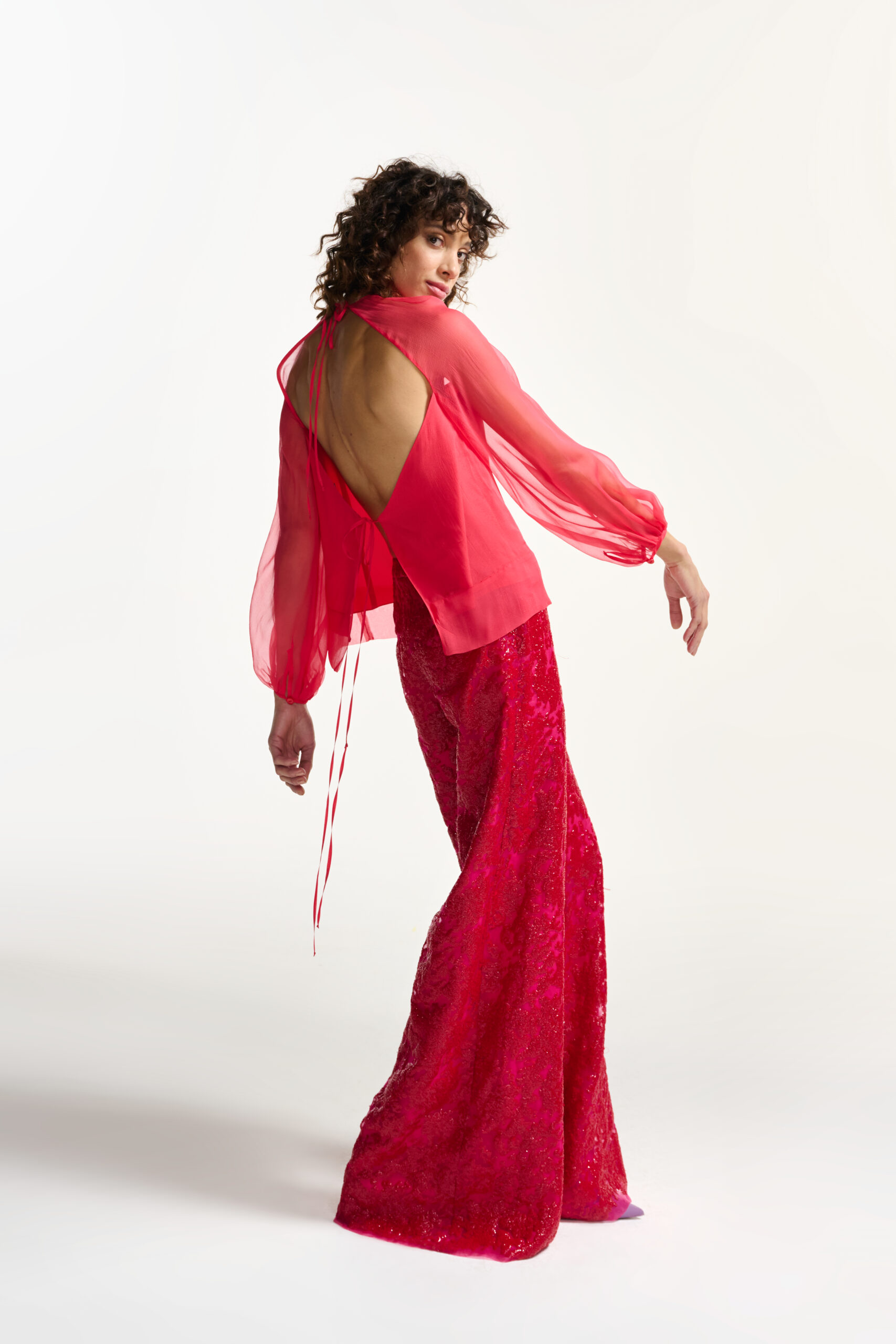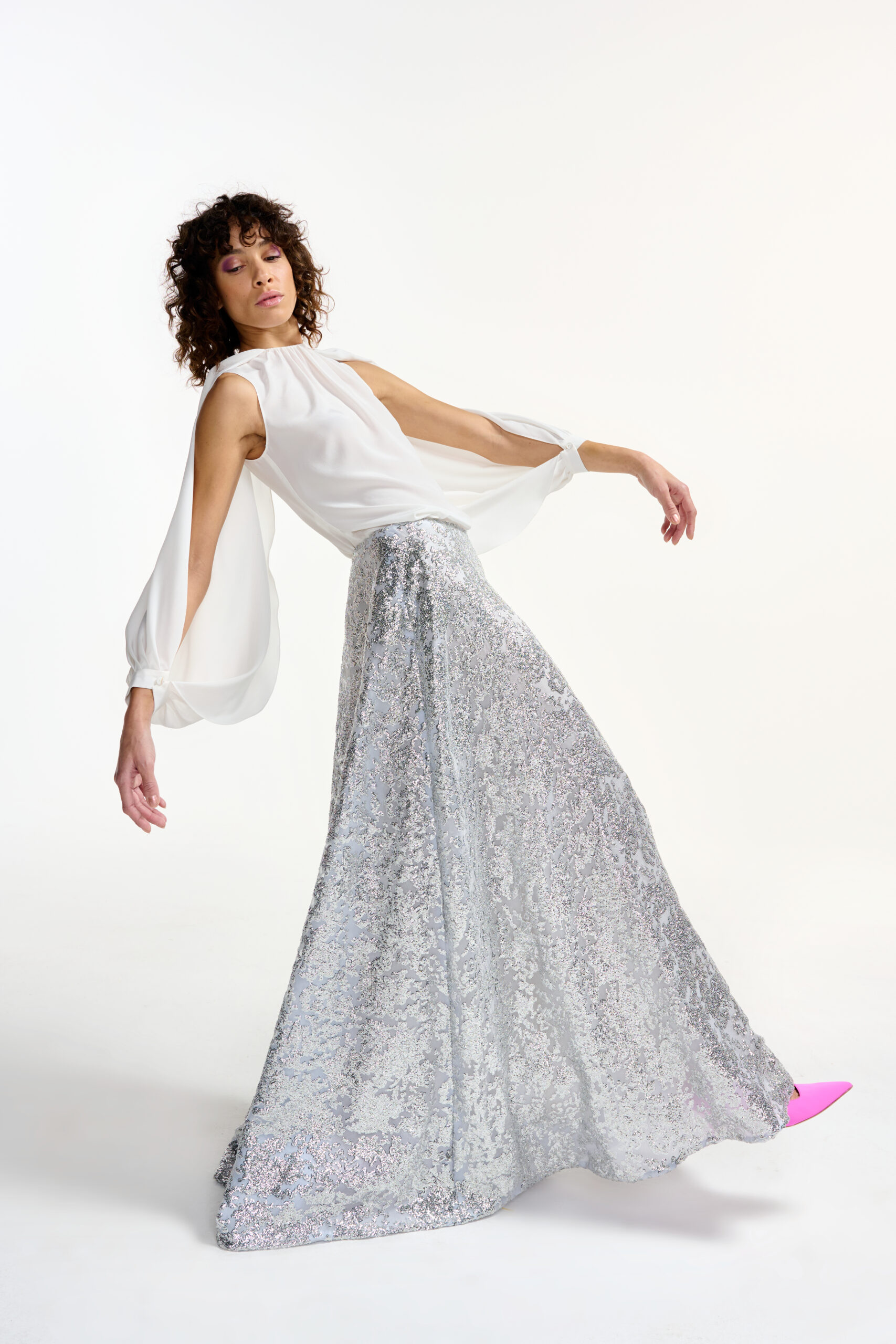 La Maison Natan propose des jupes drapées coordonnées avec des tops ouverts dans le dos, des décolletés plongeants et des feux d’artifice d’optimisme sur la peau. La collection reste fidèle à l’héritage de la Maison, tout en insufflant des accords plus rebelles pour cette nouvelle année de célébration en fanfare.