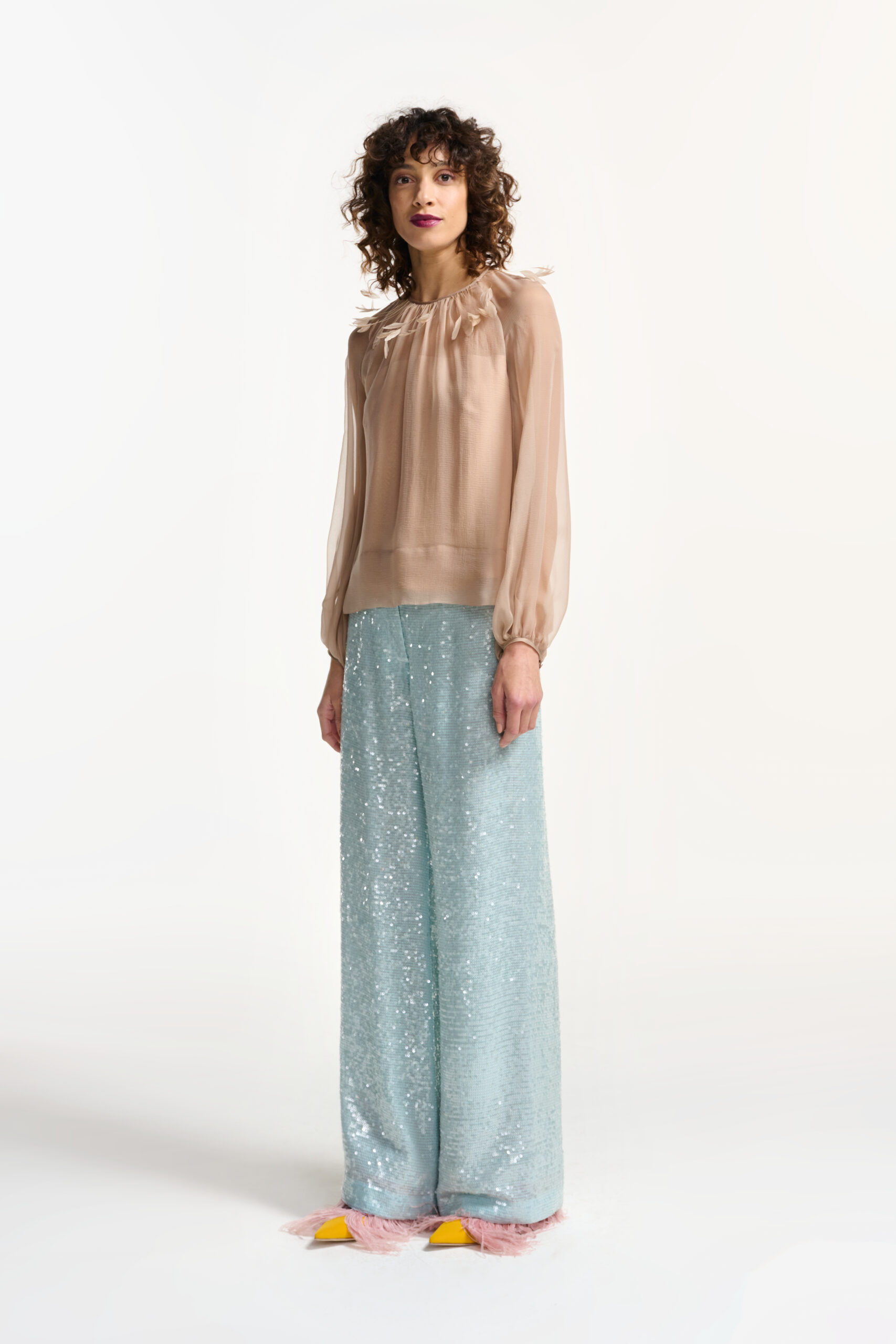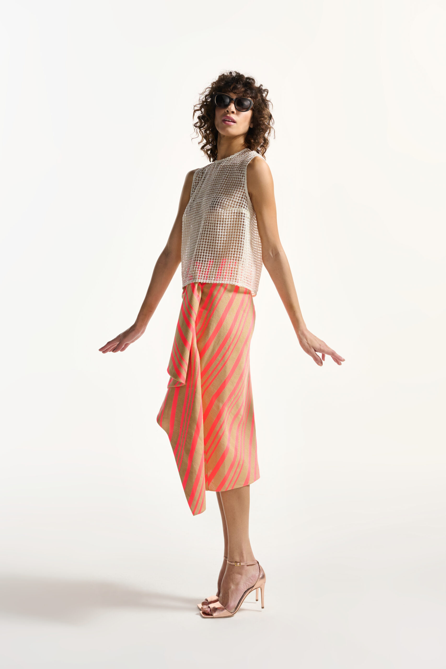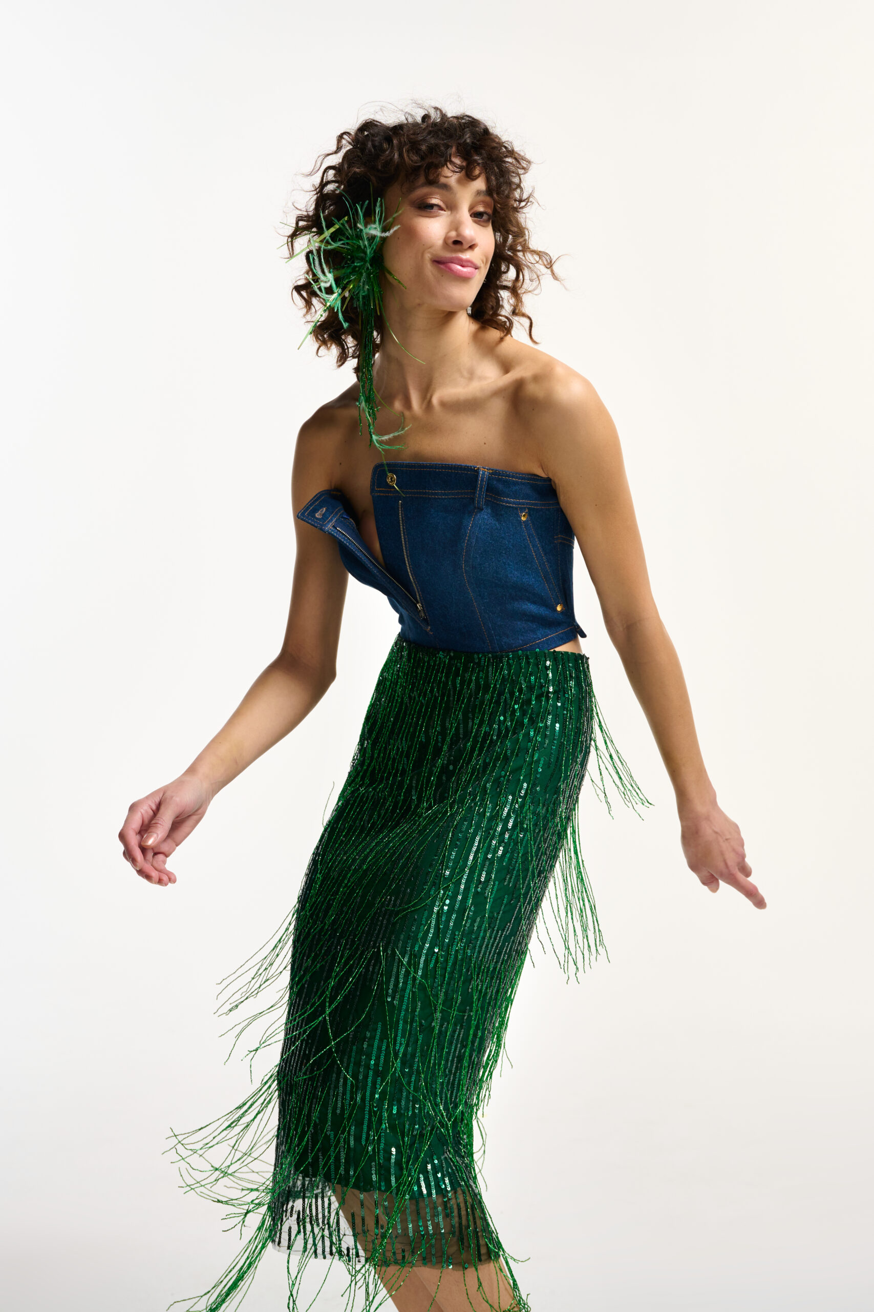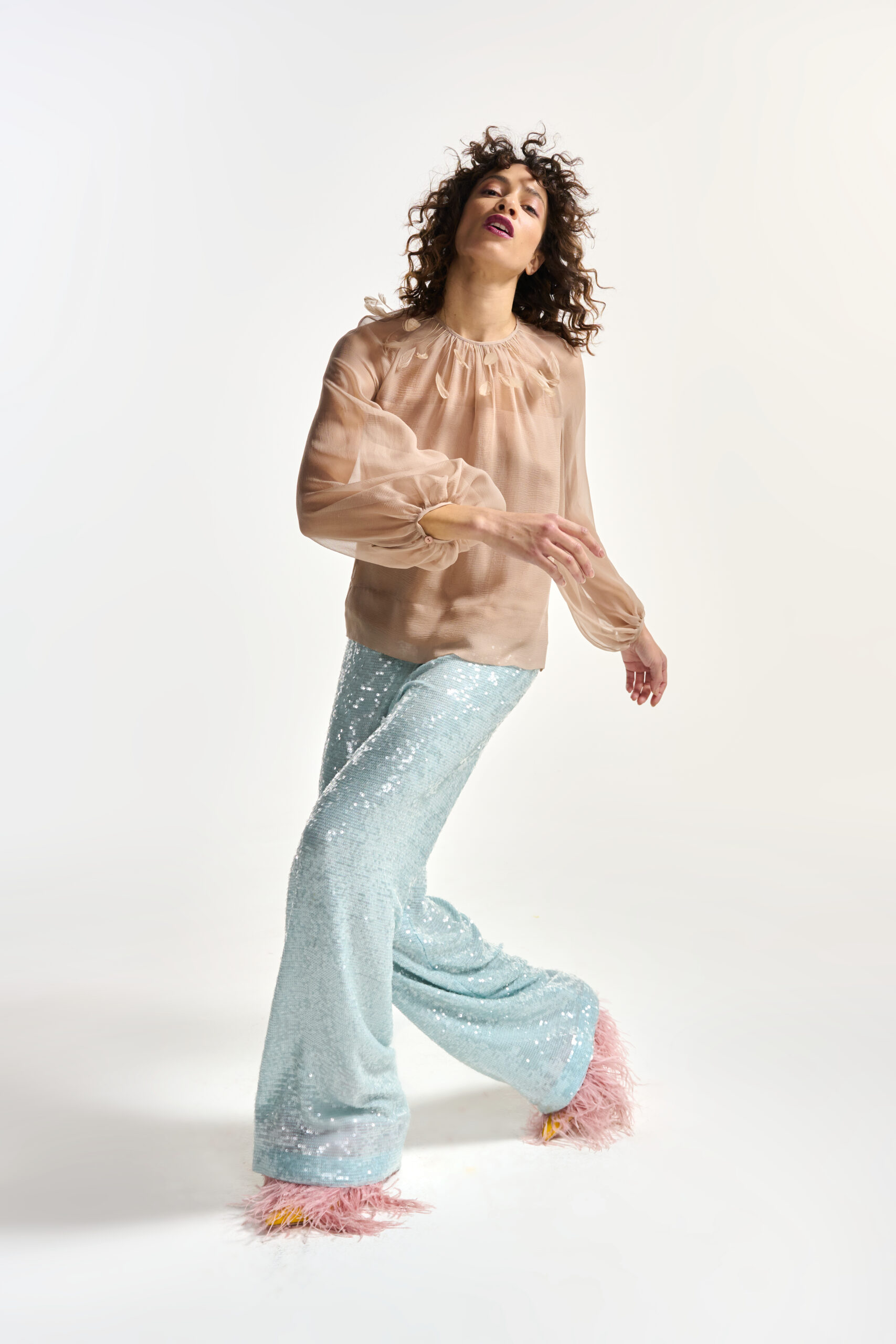 La Maison Natan propose des jupes drapées coordonnées avec des tops ouverts dans le dos, des décolletés plongeants et des feux d’artifice d’optimisme sur la peau. La collection reste fidèle à l’héritage de la Maison, tout en insufflant des accords plus rebelles pour cette nouvelle année de célébration en fanfare.