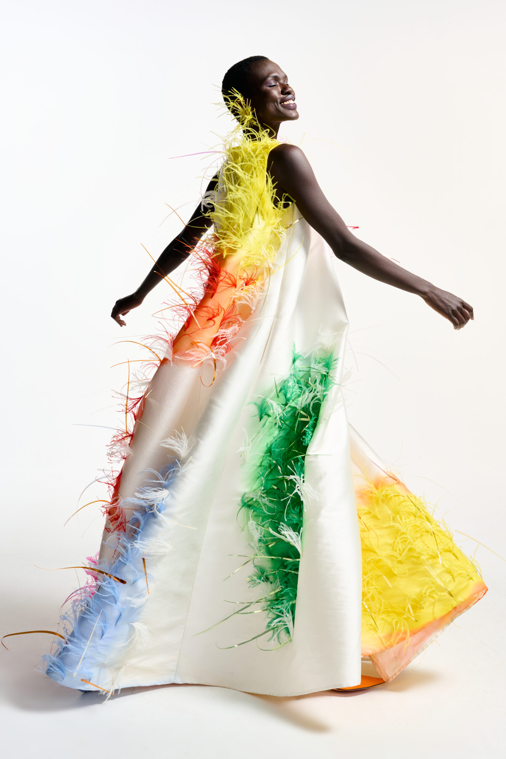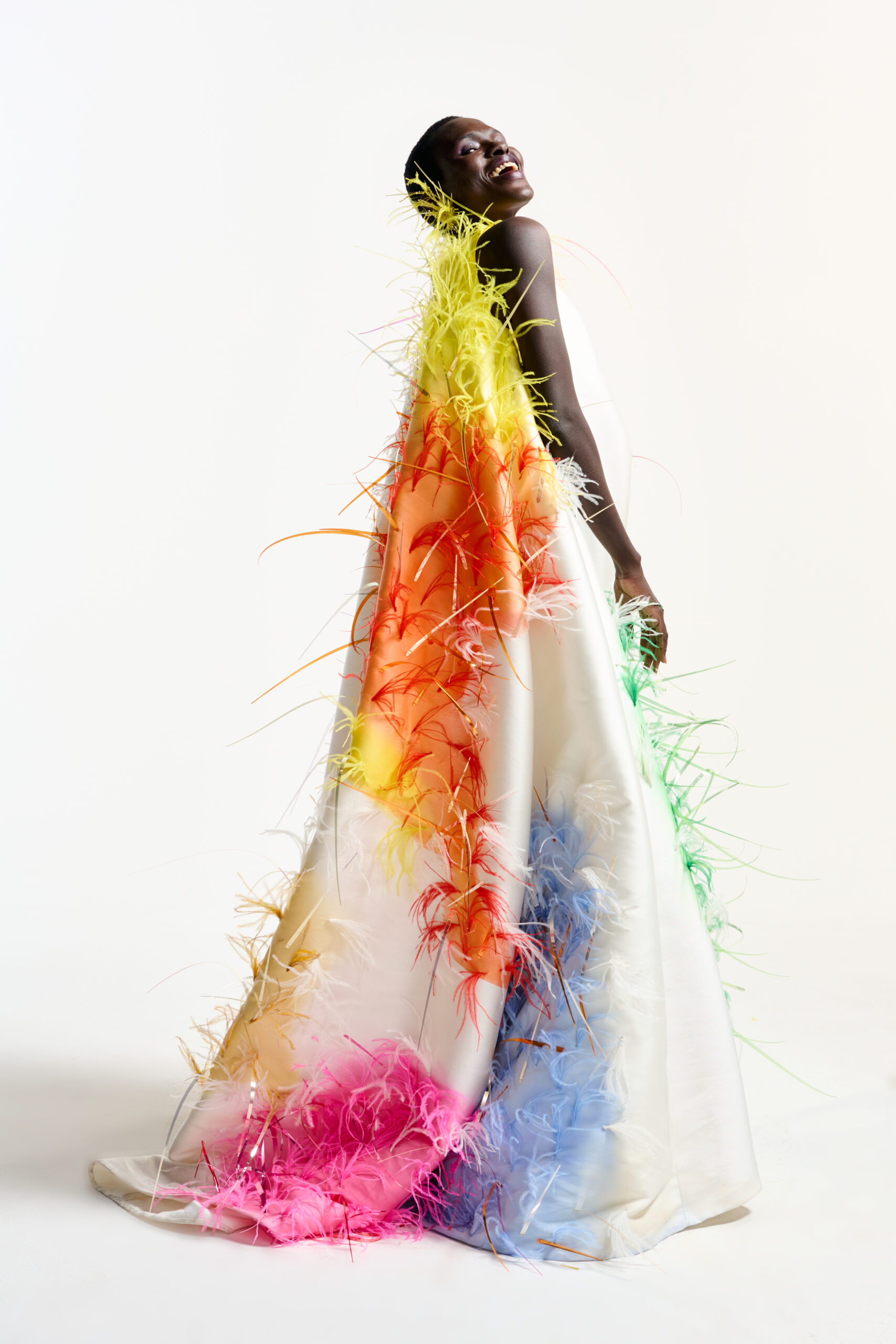 La Maison Natan célèbre ses 40 ans de création avec une nouvelle collection Couture qui allie élégance, éthique et bienveillance, tout en rendant hommage à la jeunesse et à l’énergie du mouvement. Cette collection Printemps-Été Couture 2023 joue avec les formes, les couleurs et les textures pour créer des ensembles bicolores et tricolores, avec des ornements flamboyants allant des plumes aux perles brodées et aux broches à l’énergie organique.