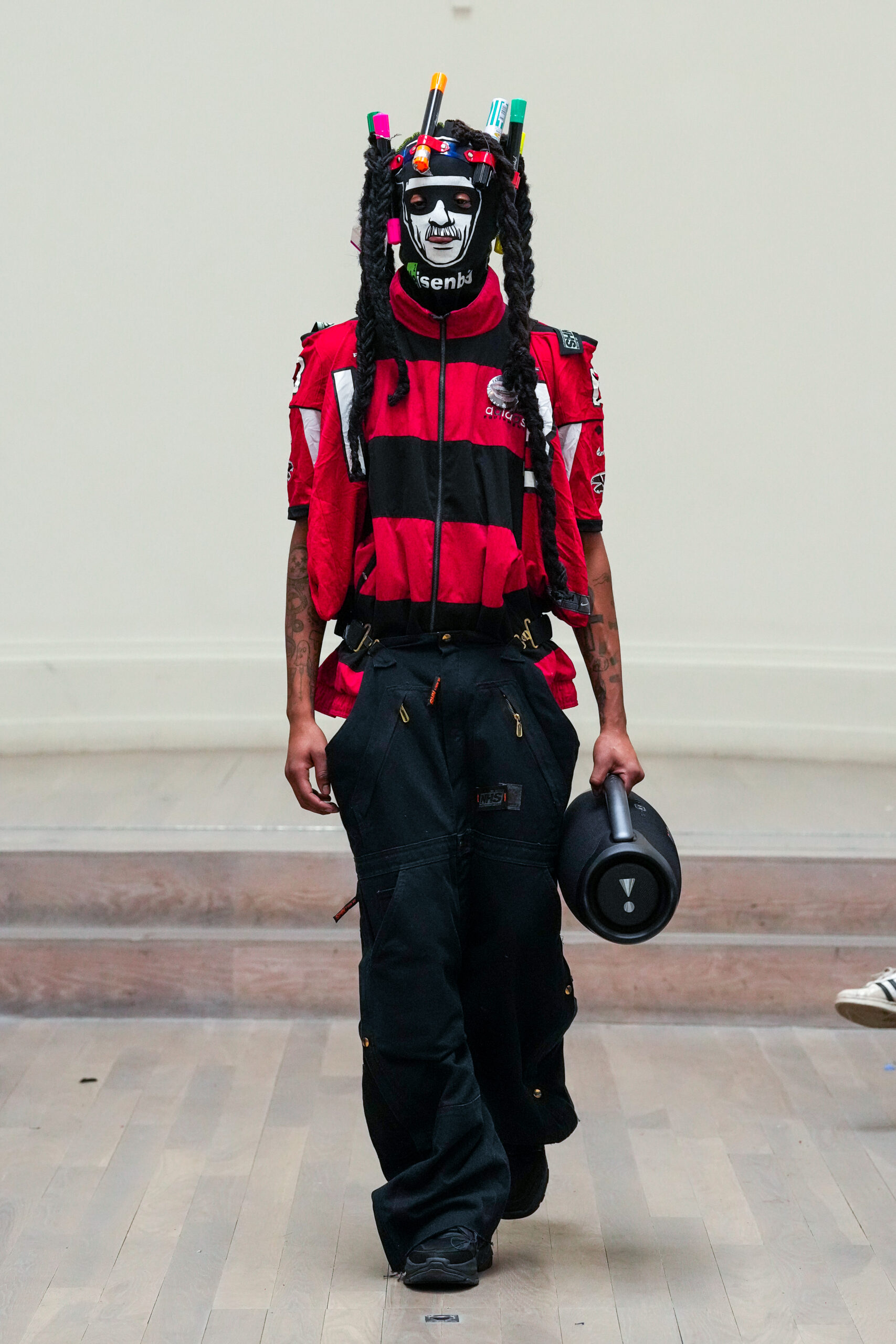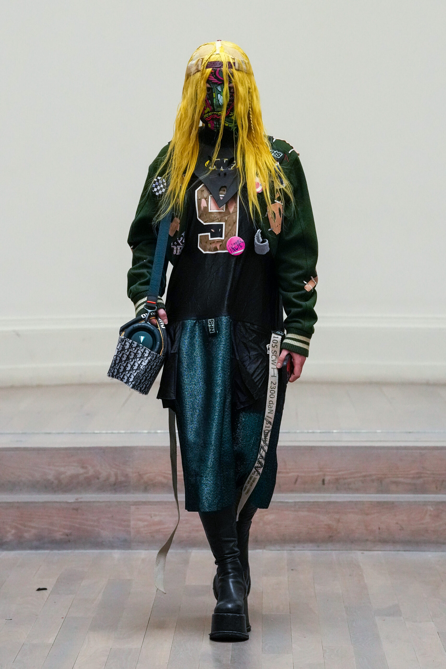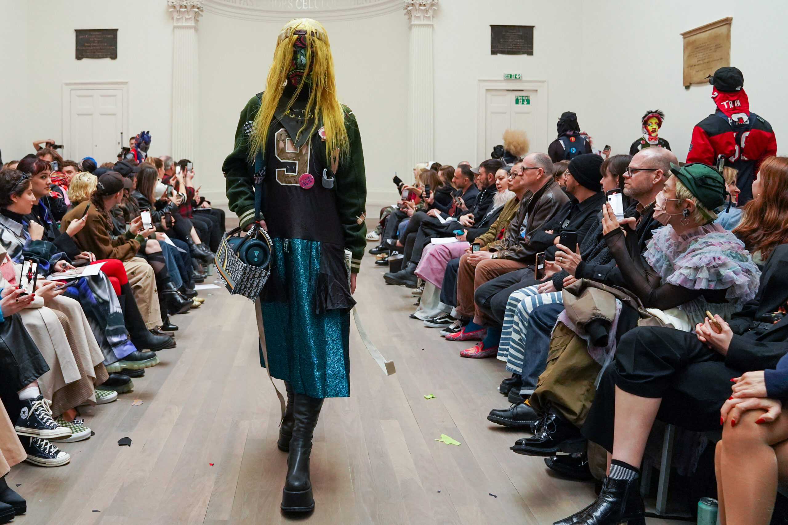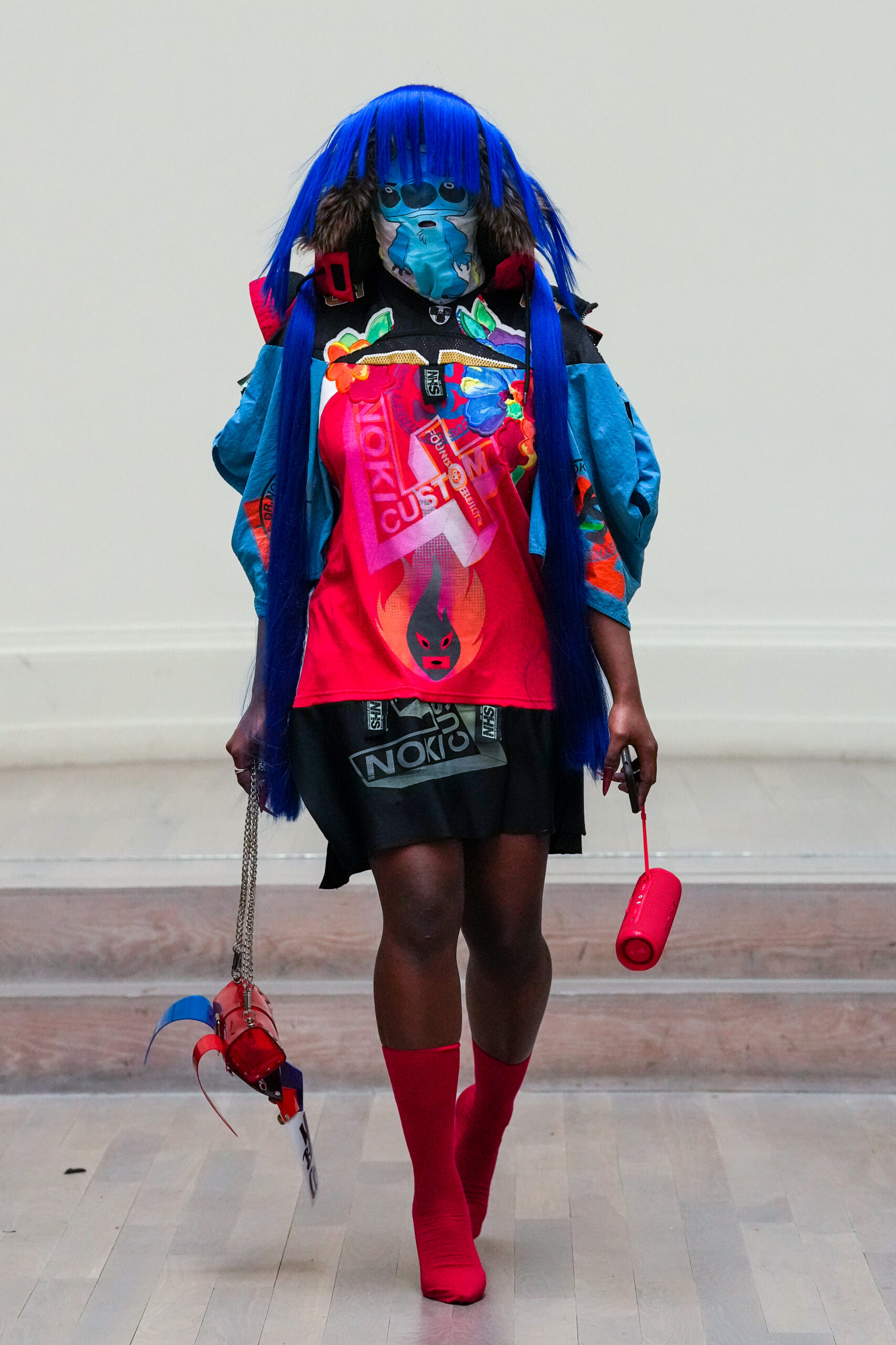 Noki et la NESTT (Noki Education of Sustainable Textiles and Technology) sont de retour à la London Fashion Week pour prouver que la durabilité peut être vive, inspirante et libératrice. Noki a toujours été l’anarchiste original en matière de gaspillage de la mode et de durabilité, né en réaction au mouvement de la fast fashion. Son style de collage de « franken-fashion » upcyclé a donné lieu au nom de Dr Noki – révolutionnaire alors, révolutionnaire maintenant. À mesure que nous nous approchons toujours plus près du bord de l’effondrement environnemental, économique et social, le message sans peur et sans compromis de Noki, ainsi que son récit anti-establishment, conçus comme une critique du capitalisme et un défi au consumérisme, n’a jamais été aussi poignant ou puissant.