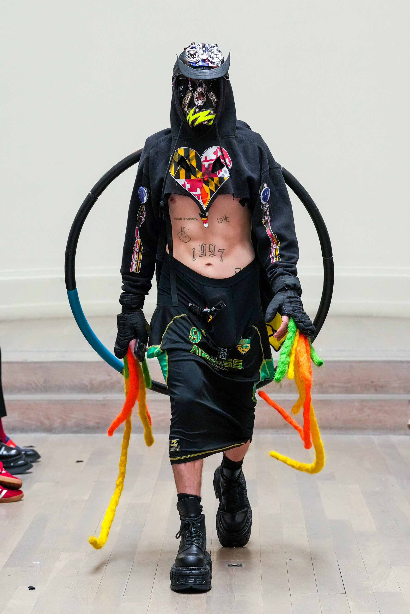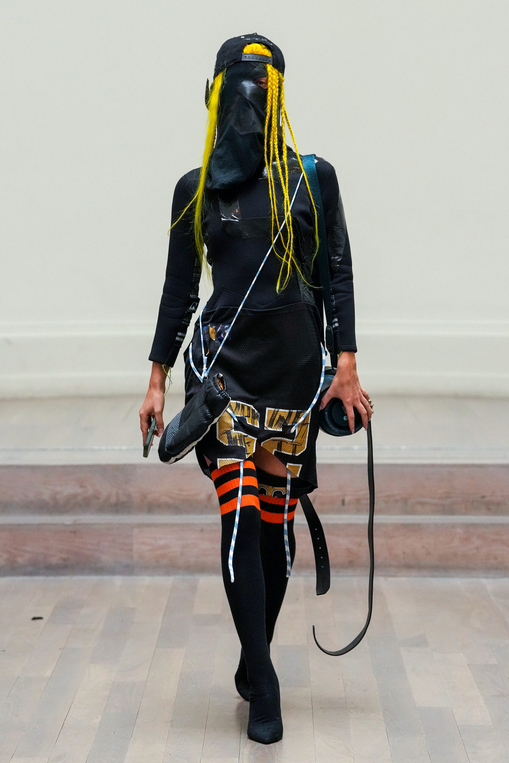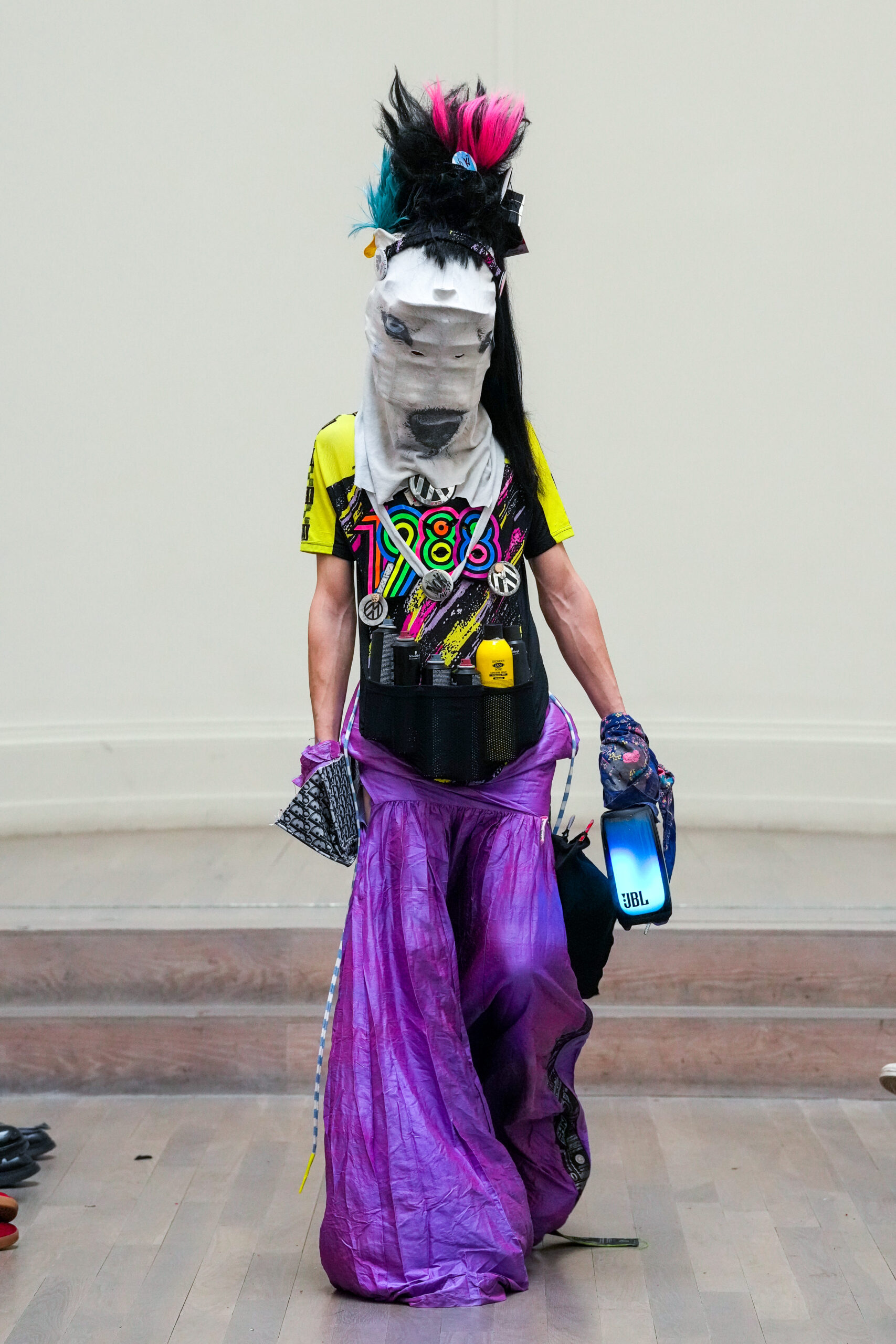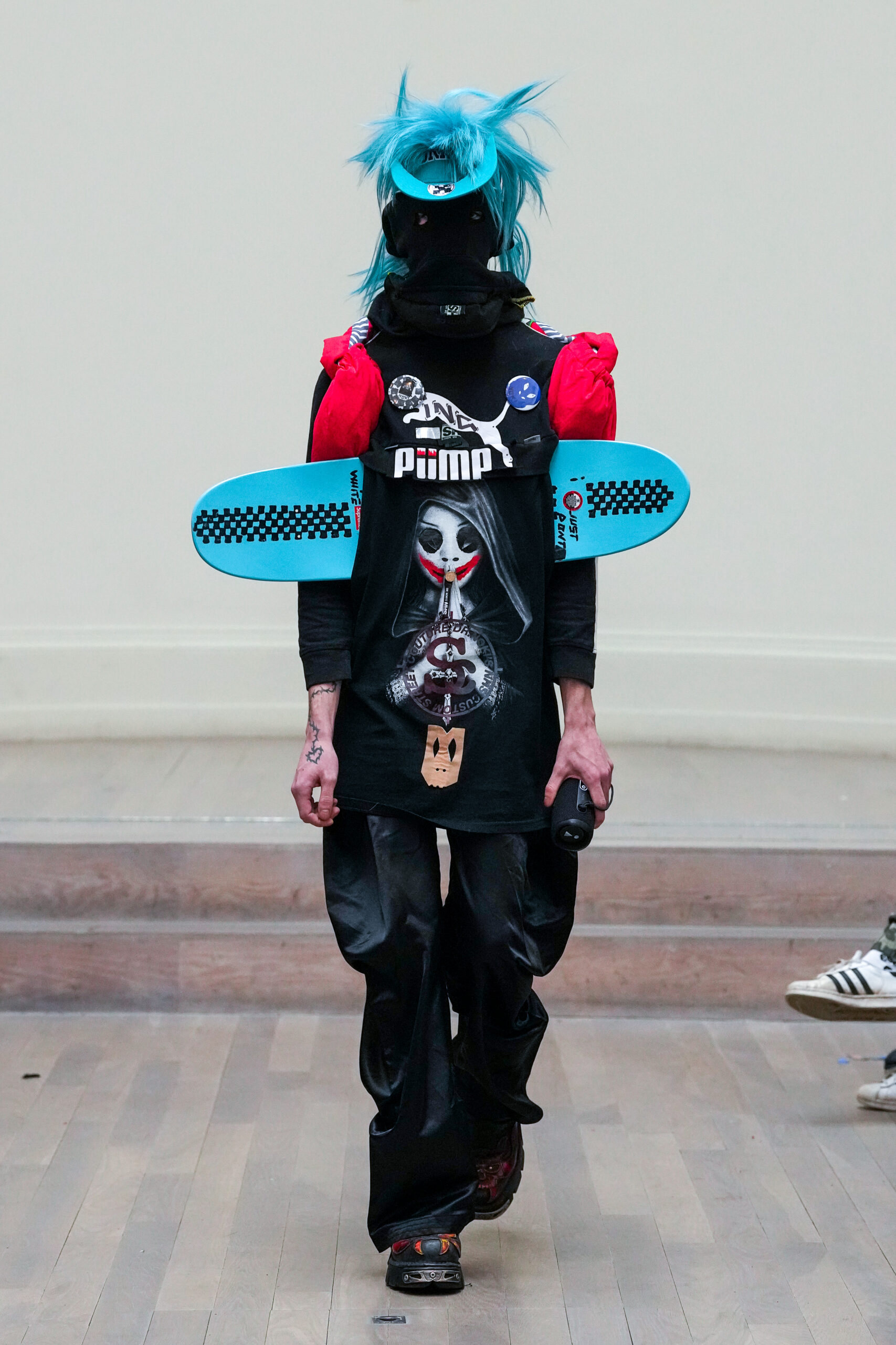 Noki et la NESTT (Noki Education of Sustainable Textiles and Technology) sont de retour à la London Fashion Week pour prouver que la durabilité peut être vive, inspirante et libératrice. Noki a toujours été l’anarchiste original en matière de gaspillage de la mode et de durabilité, né en réaction au mouvement de la fast fashion. Son style de collage de « franken-fashion » upcyclé a donné lieu au nom de Dr Noki – révolutionnaire alors, révolutionnaire maintenant. À mesure que nous nous approchons toujours plus près du bord de l’effondrement environnemental, économique et social, le message sans peur et sans compromis de Noki, ainsi que son récit anti-establishment, conçus comme une critique du capitalisme et un défi au consumérisme, n’a jamais été aussi poignant ou puissant.