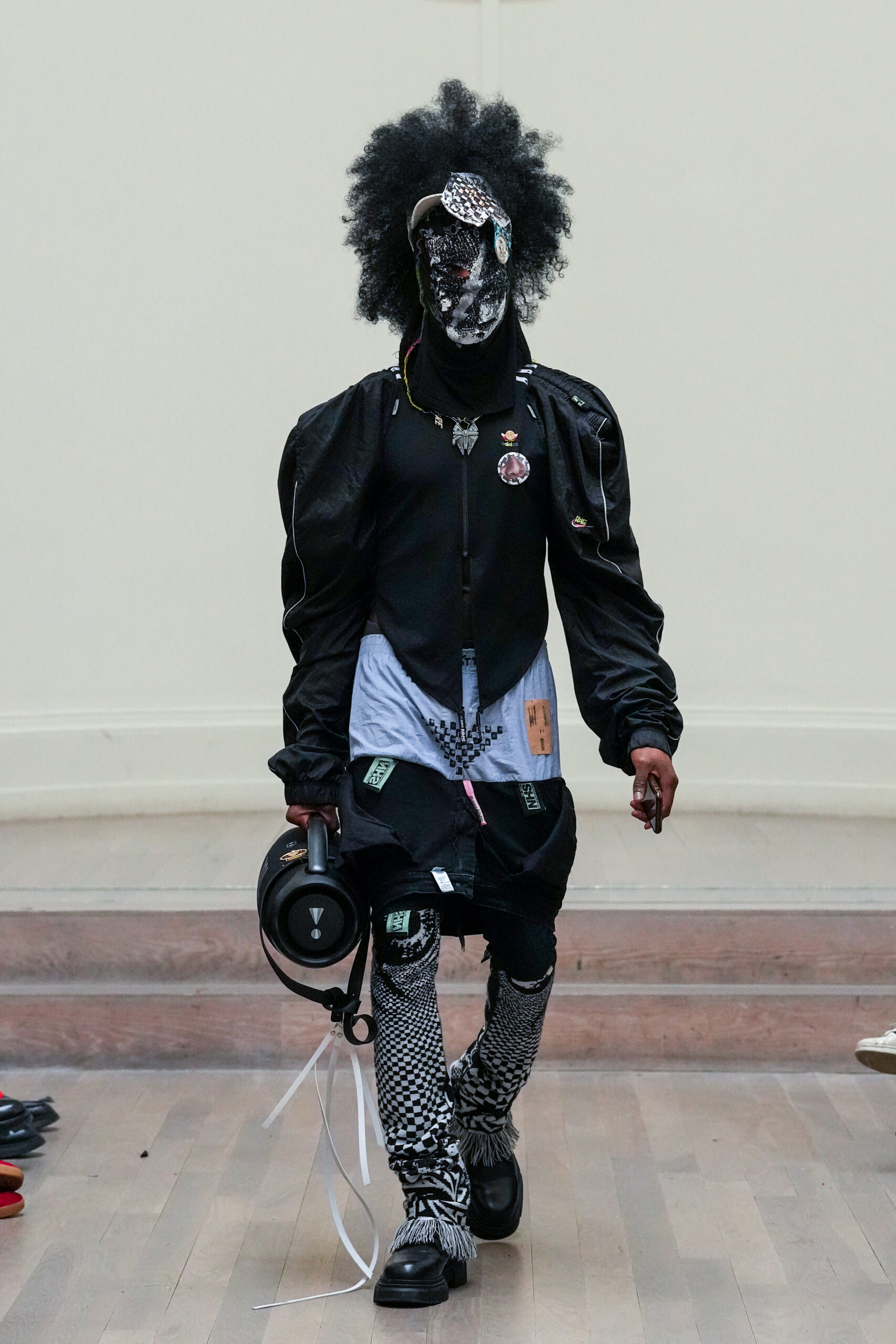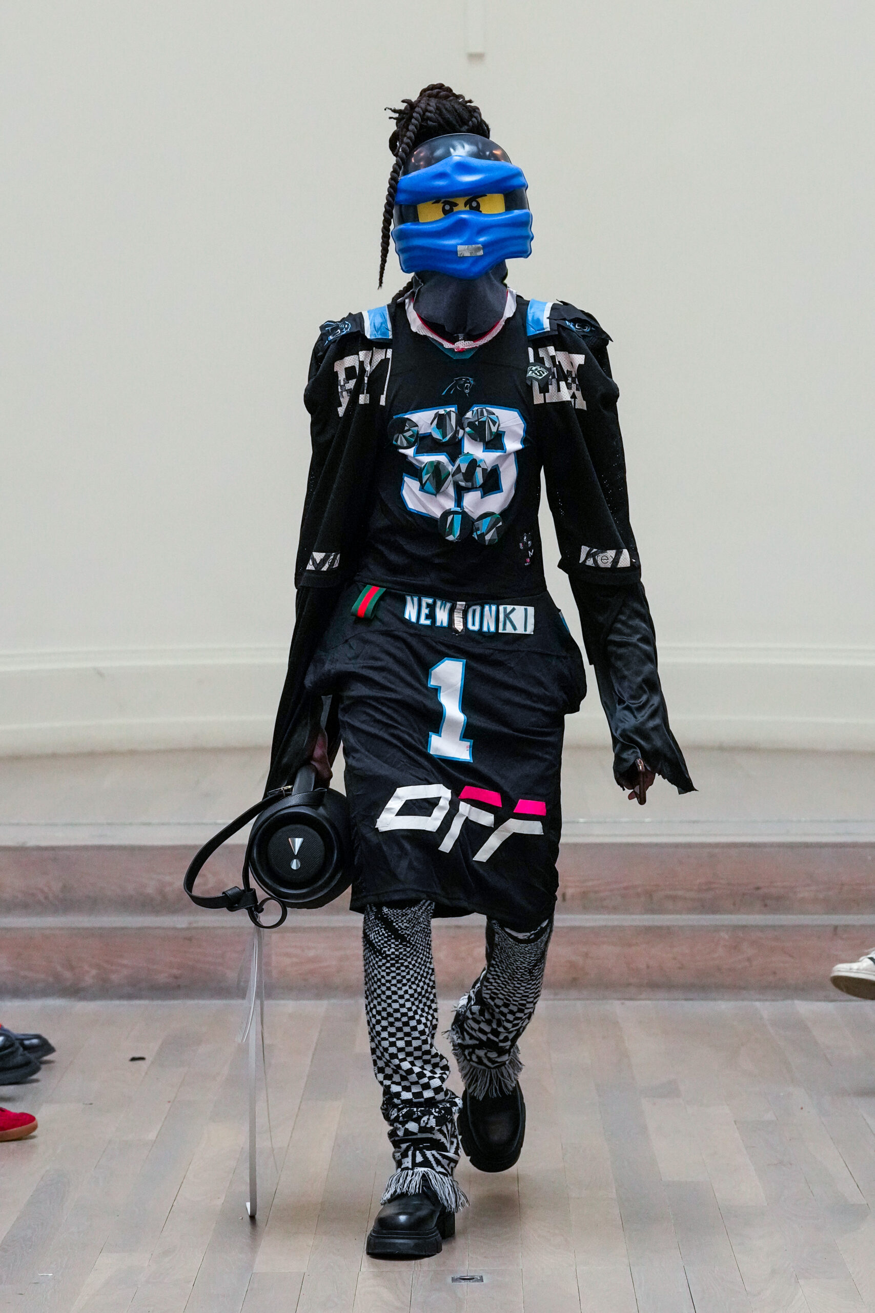 Les 22-4-1 Évolutions sont une collection de 22 créations personnalisées à partir d’une source et d’un plan commun. Le 2-4-1 original a fait ses débuts lors du défilé NESTT SS23, une révélation qui a présenté 2 looks en 1, et devient le look d’ouverture et l’inspiration de la collection qui suit. Noki a transformé ce concept en une collection complète de créations originales témoignant de son désir de réutiliser, de réinventer et de révolutionner notre façon de voir le système de la mode. Comme toujours, tout ce qui est présenté sur le podium est fabriqué à partir de vêtements destinés à la décharge, sauvés et réinventés en nouveaux styles de mode dynamiques grâce à des coupes et des collages de vêtements caractéristiques.