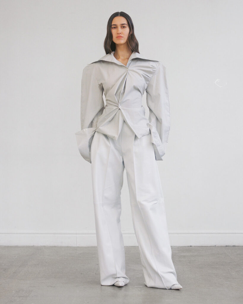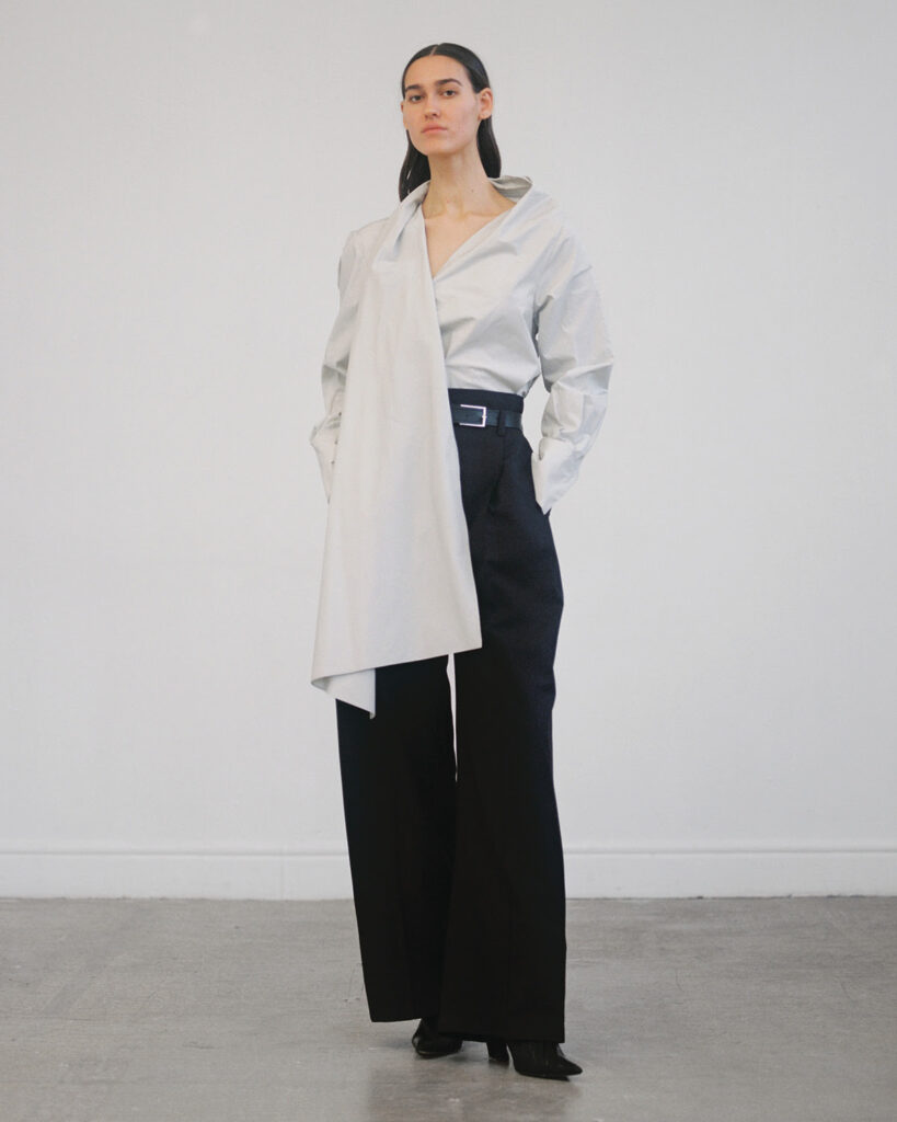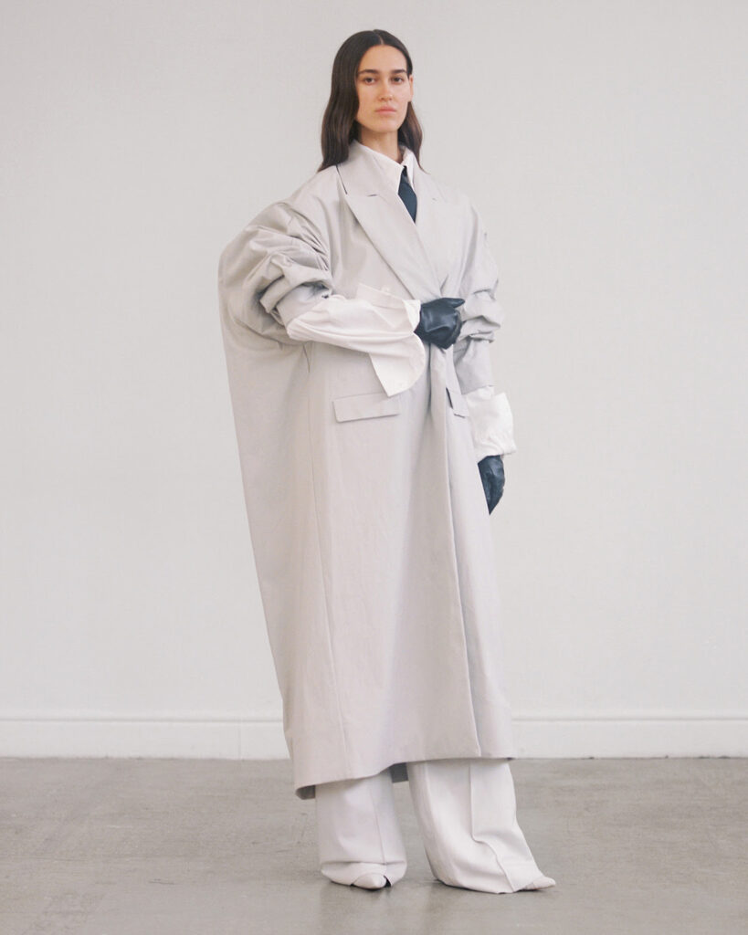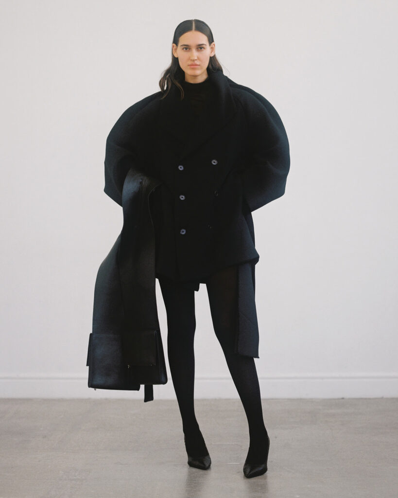 La collection Automne/Hiver 2023 de VAUTRAIT est une fusion réussie entre les techniques traditionnelles et une vision contemporaine. Cette collection utilise des matériaux de qualité pour créer des vêtements qui peuvent être portés tous les jours, tout en incorporant un certain niveau d’allure et de dramatisme. Les silhouettes sont de manière excessive, déconstruites mais équilibrées pour donner une notion de drame et un jeu de proportion.