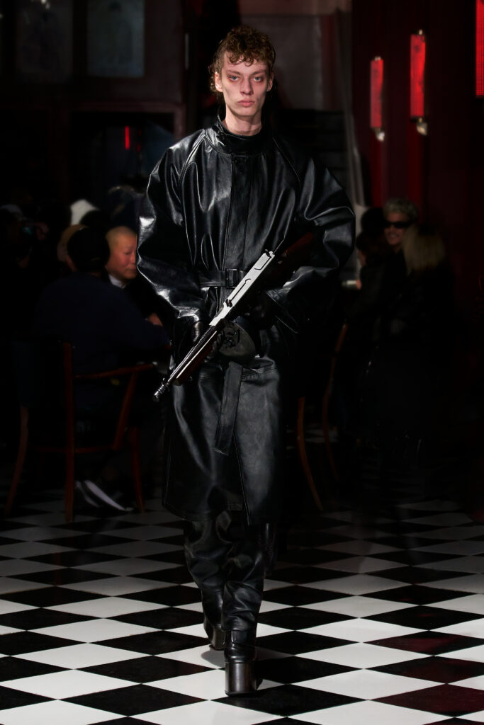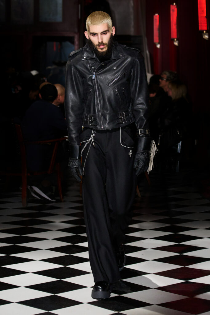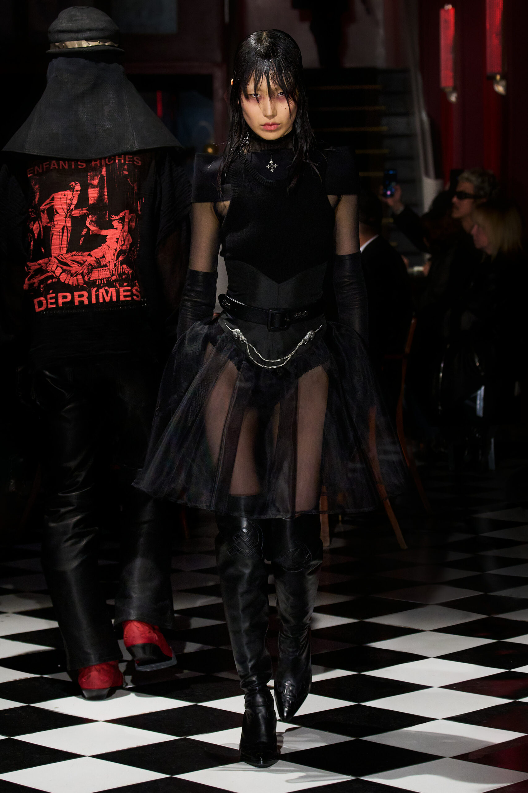 Lors du défilé Enfants Riches Déprimés, le directeur créatif Henri Levy a présenté une collection automne/hiver 2023 qui célèbre la dualité de l’élégance brute et raffinée. La collection était marquée par une lueur romantique rouge qui soulignait la qualité hybride de chaque tenue. Les silhouettes pour hommes et femmes étaient construites indépendamment avec une combinaison de références esthétiques allemandes sombres et de sous-tons soviétiques, mais étaient unies pour créer une collection subversive et cohérente.
