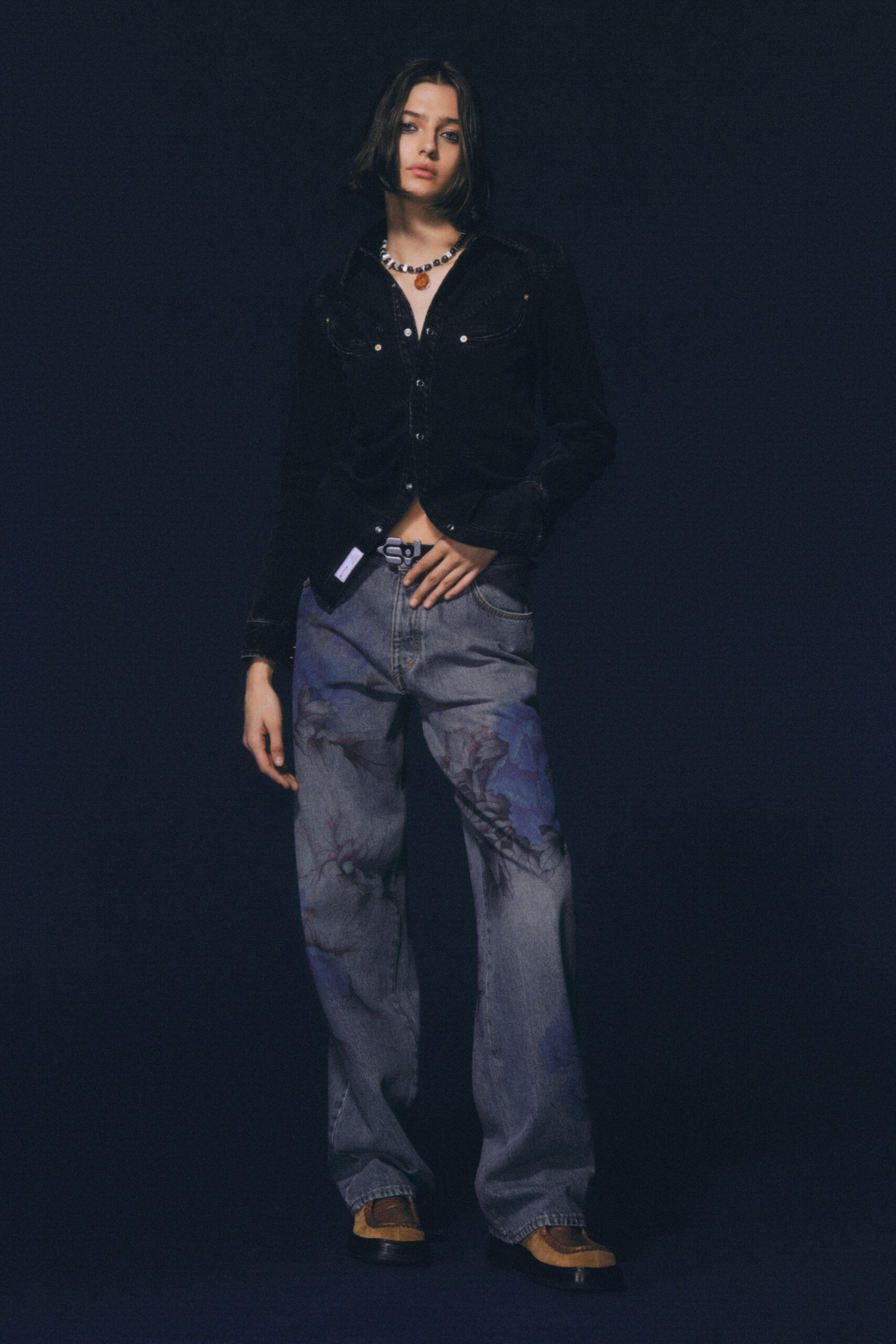 Au cœur de cette collection se trouve un hommage à l’artiste Anders Zorn et ses gravures de femmes nues sur l’île de Dalarö en Suède, où la grand-mère de Max a vécu et où il a passé ses étés d’enfance. Pour l’automne/hiver 2023, ces gravures décorent des chemises à manches longues, une veste en cuir et une mini-jupe en cuir. Comme les personnes des dancehalls jamaïcains des années 70, les femmes des peintures de Zorn sont libres et indépendantes.