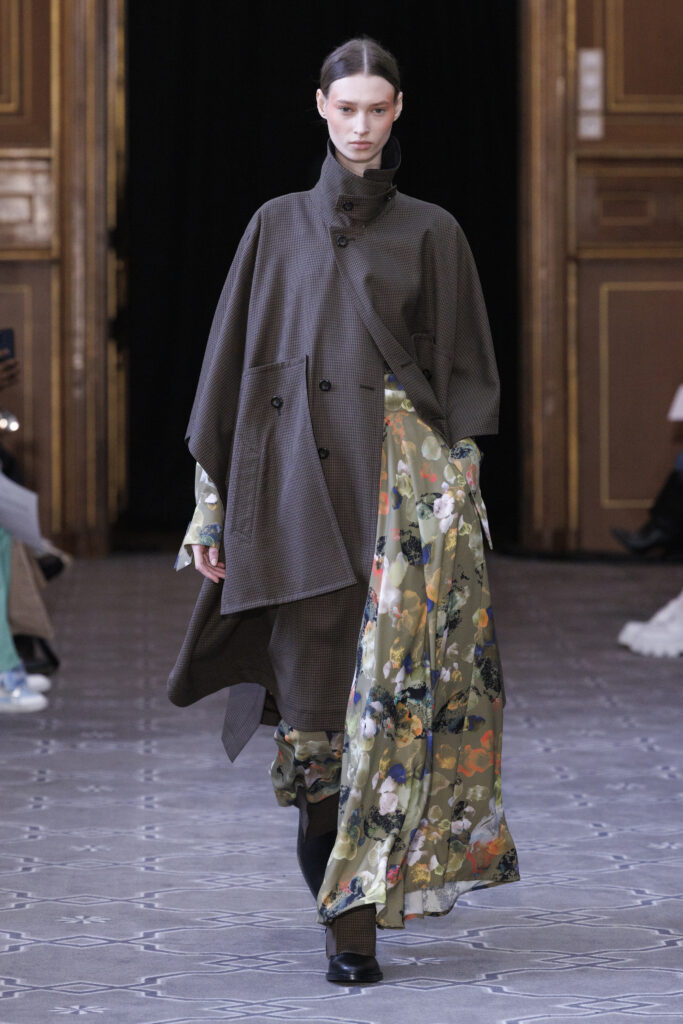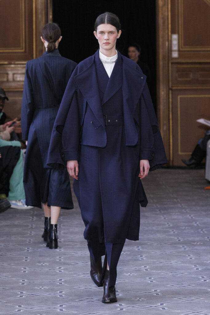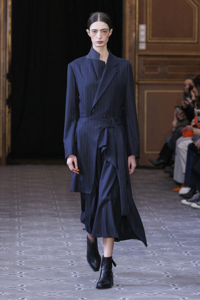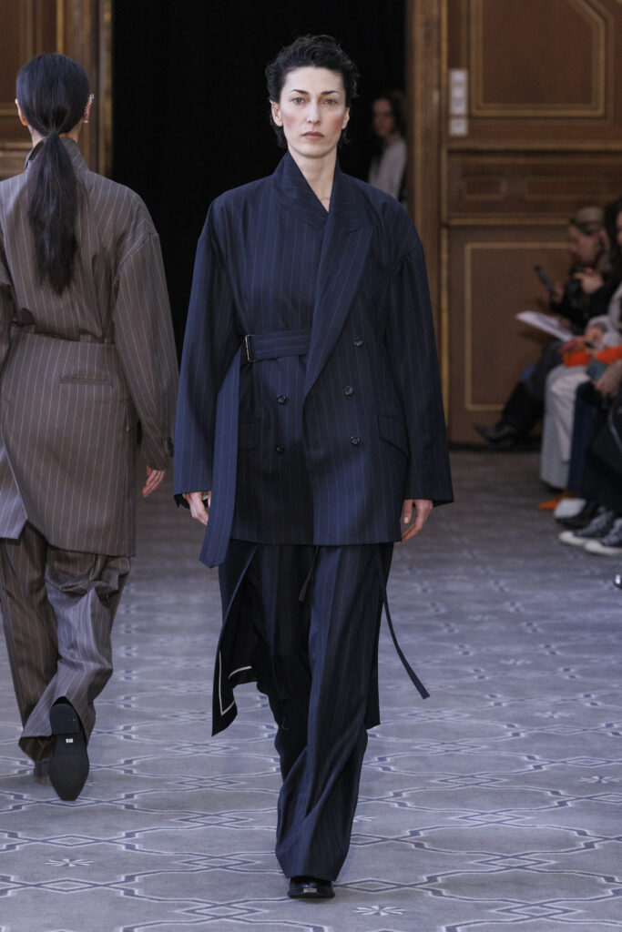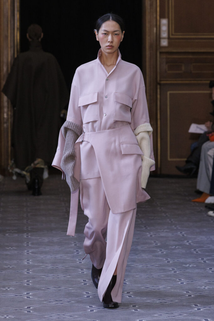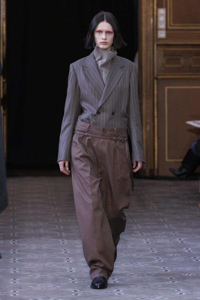 Les couleurs clés sont le gris olive et les rayures de craie marine, signatures de la marque. Avec cela, UJOH incorpore de nouveaux tons sombres et sensuels tels que la gabardine de laine en vieux rose et gris de Payne, ainsi que des tissus en mûre, vert bouteille et brun rosé pour créer une palette de couleurs parfaite pour l’automne et l’hiver. La collection de cette saison montre que la marque continue d’explorer et de réinventer sa propre identité, offrant une expérience de mode unique pour les amateurs de style.