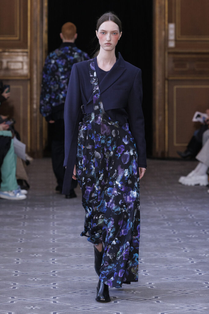 Les articles phares de cette saison incluent des vêtements utilitaires tels que des salopettes, des pantalons mi-couches et des vestes séparées tenues par des bretelles. Les blousons pour hommes et les jupes et robes pour femmes sont imprimés de pétales de lumière, inspirés de la légendaire performance de Yukio Nakagawa en 2002, Tenku Sange (« Offrande au ciel »), ainsi que de fleurs rouges exprimant la vitalité luxuriante des fleurs. La laine serge masculine est également décorée de charmes confectionnés en motifs de main et d’œil, rendant les articles emblématiques de cette saison encore plus symboliques.