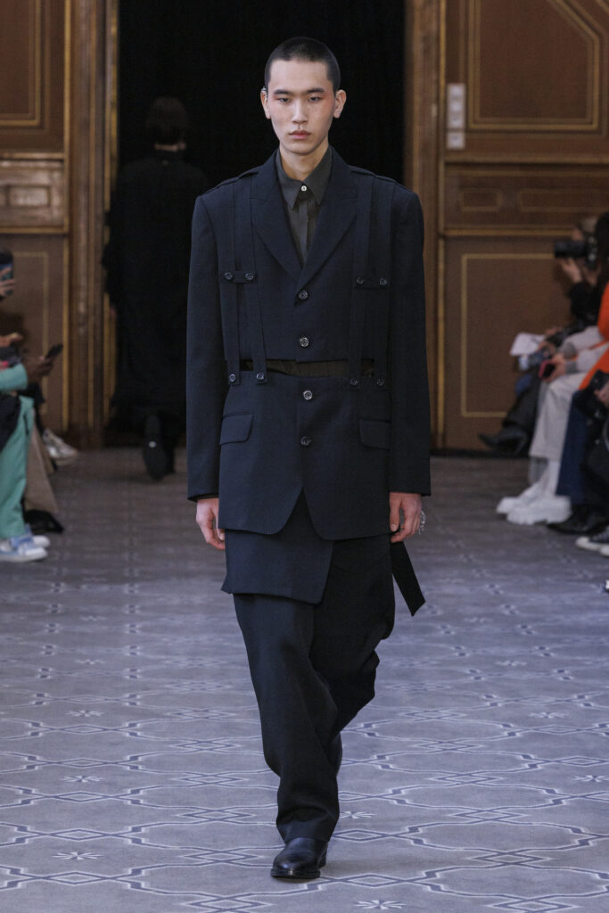 La collection Automne-Hiver 2023 d’UJOH est un parfait mélange de modernité et de sophistication, grâce à l’application habile des techniques caractéristiques de la marque. Tout en gardant une touche de bizarrerie, la collection offre un look beau et contemporain, avec des vestes aux formes légèrement inhabituelles, des superpositions aux bords ambigus et d’autres éléments subtilement intégrés. Les vêtements peuvent être combinés librement pour convenir à tous les genres et morphologies, résultat des efforts pour explorer la relation entre les vêtements et le corps humain, ce qui donne une allure intelligente et séduisante.