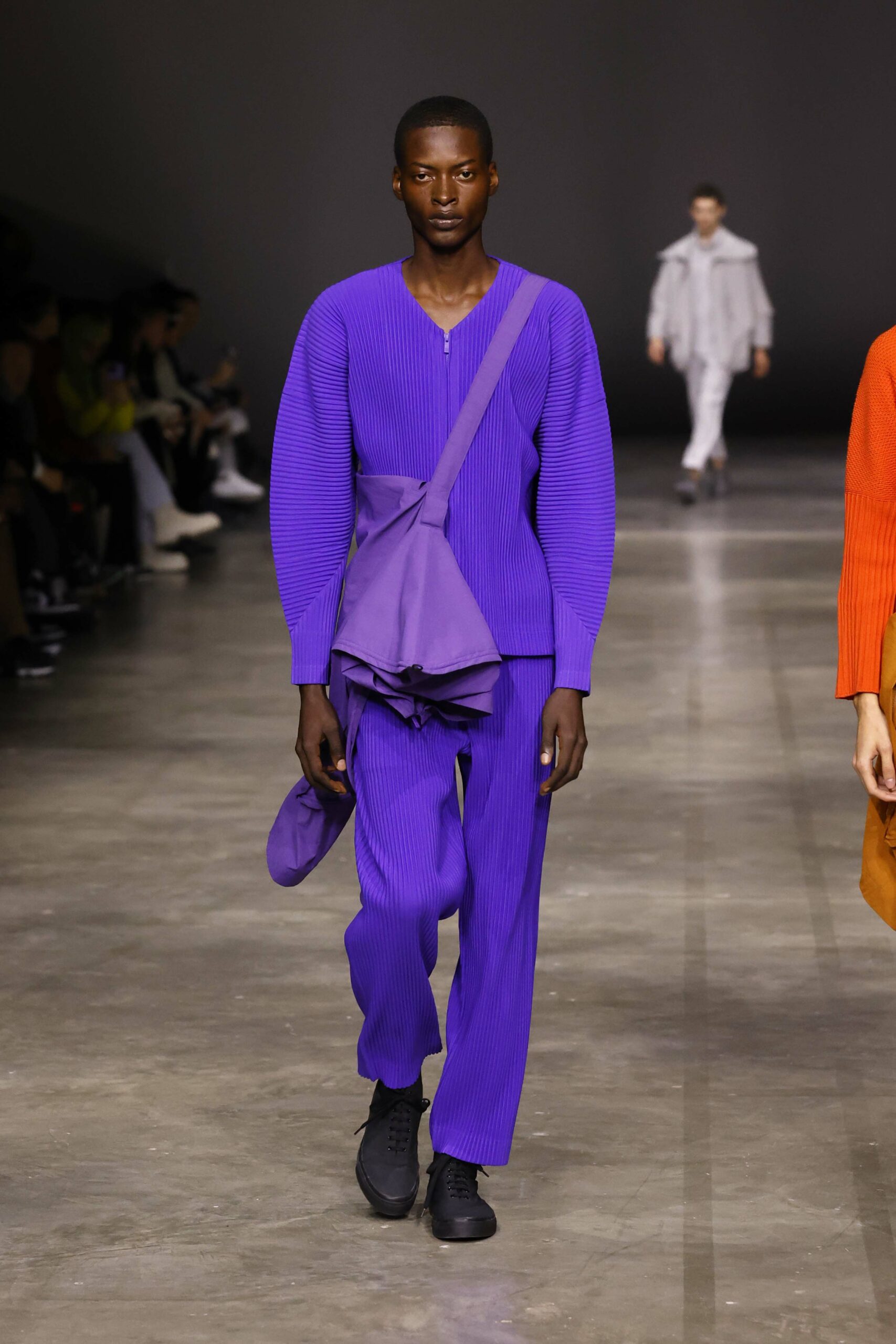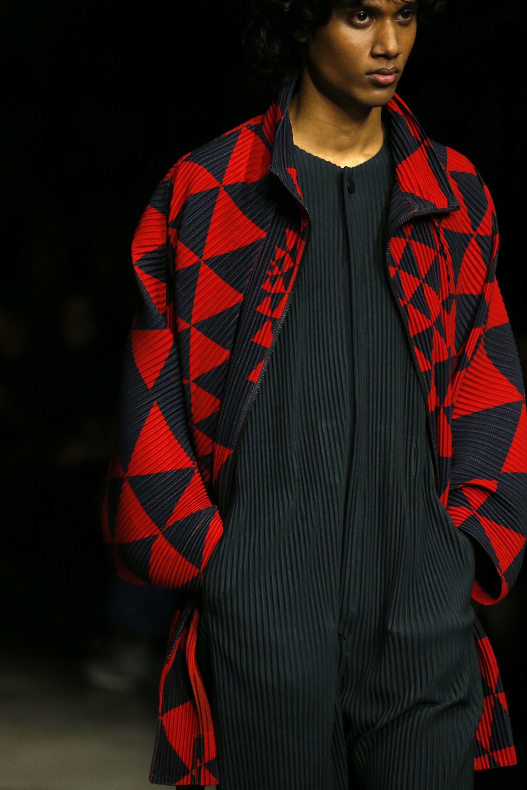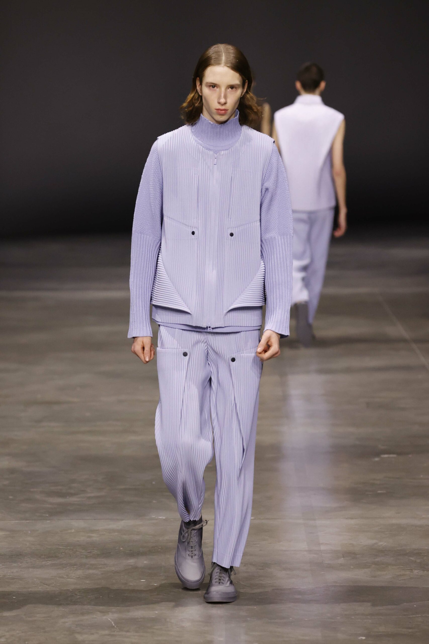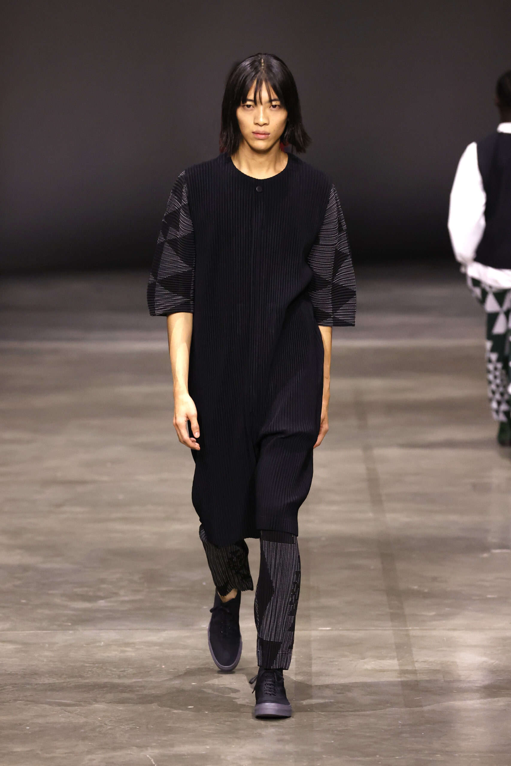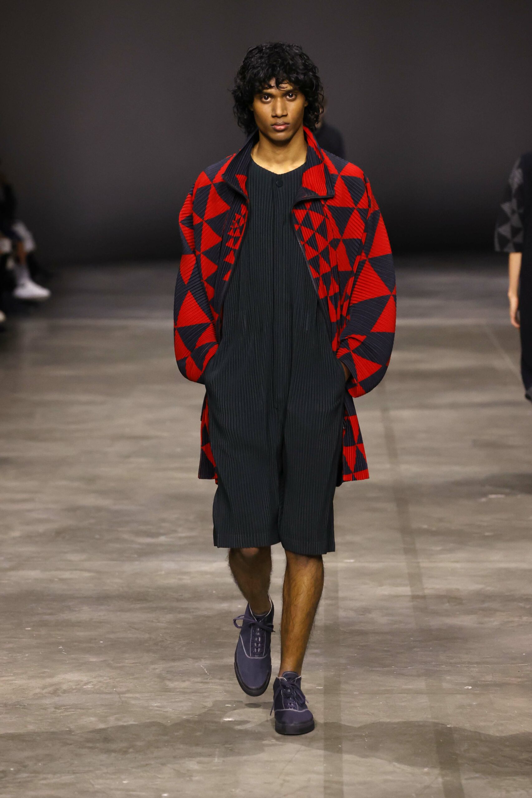 La nouvelle collection HOMME PLISSÉ ISSEY MIYAKE AUTUMN WINTER 2023/24, présentée lors du défilé Upon A Simplex au Palais de Tokyo à Paris le jeudi 19 janvier, se caractérise par une exploration de triangles et d’autres formes géométriques simples qui se transforment en créations aux formes complexes. Les formes obtenues sont intégrées aux vêtements, et les segments de ligne de leurs composants sont adaptés en plis dans les constructions de tissu, créant une collection de formations élaborées qui reflètent la simplicité de la géométrie de base.