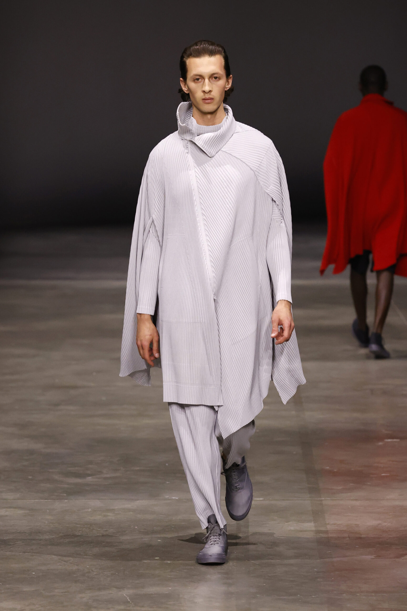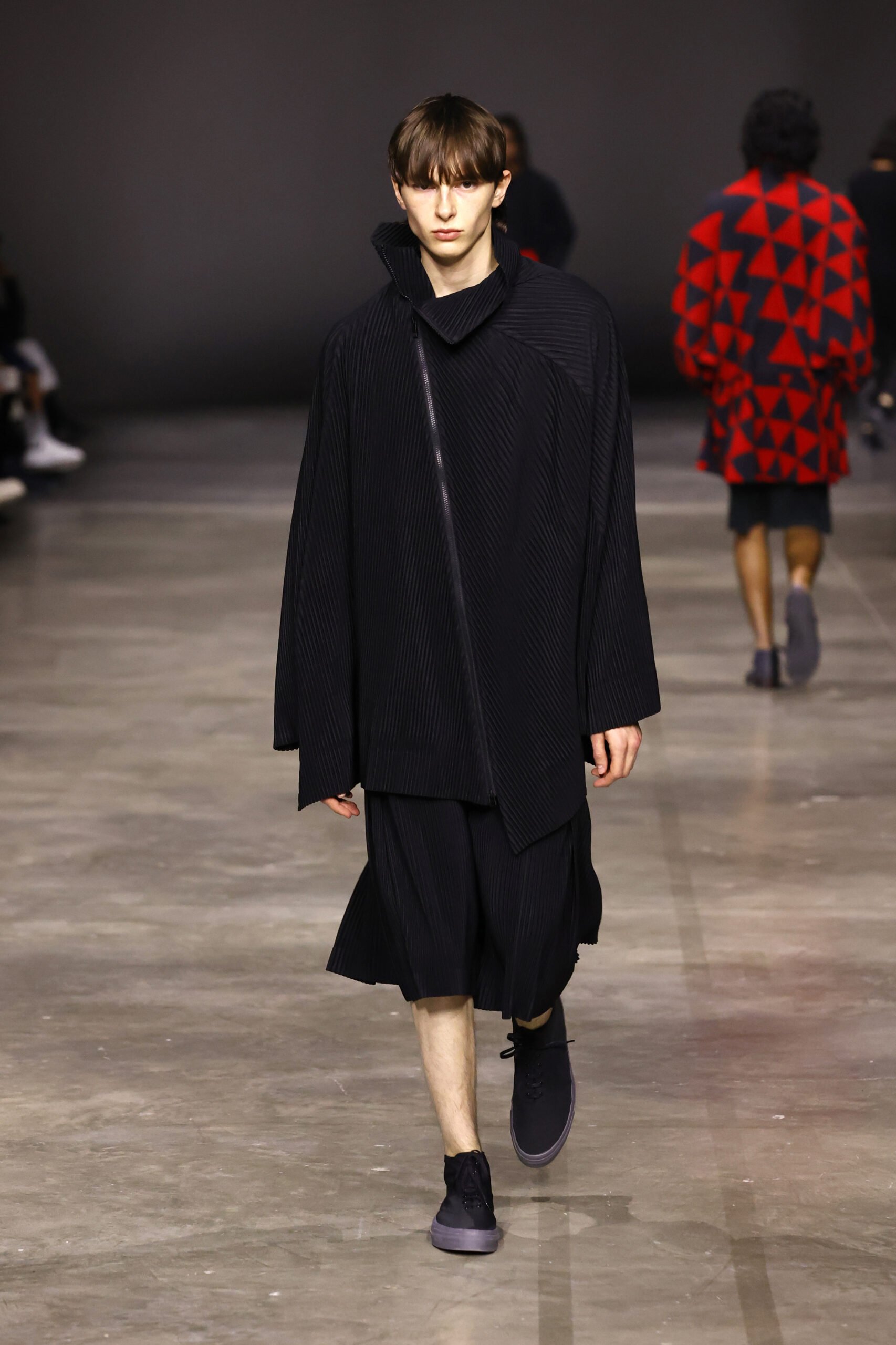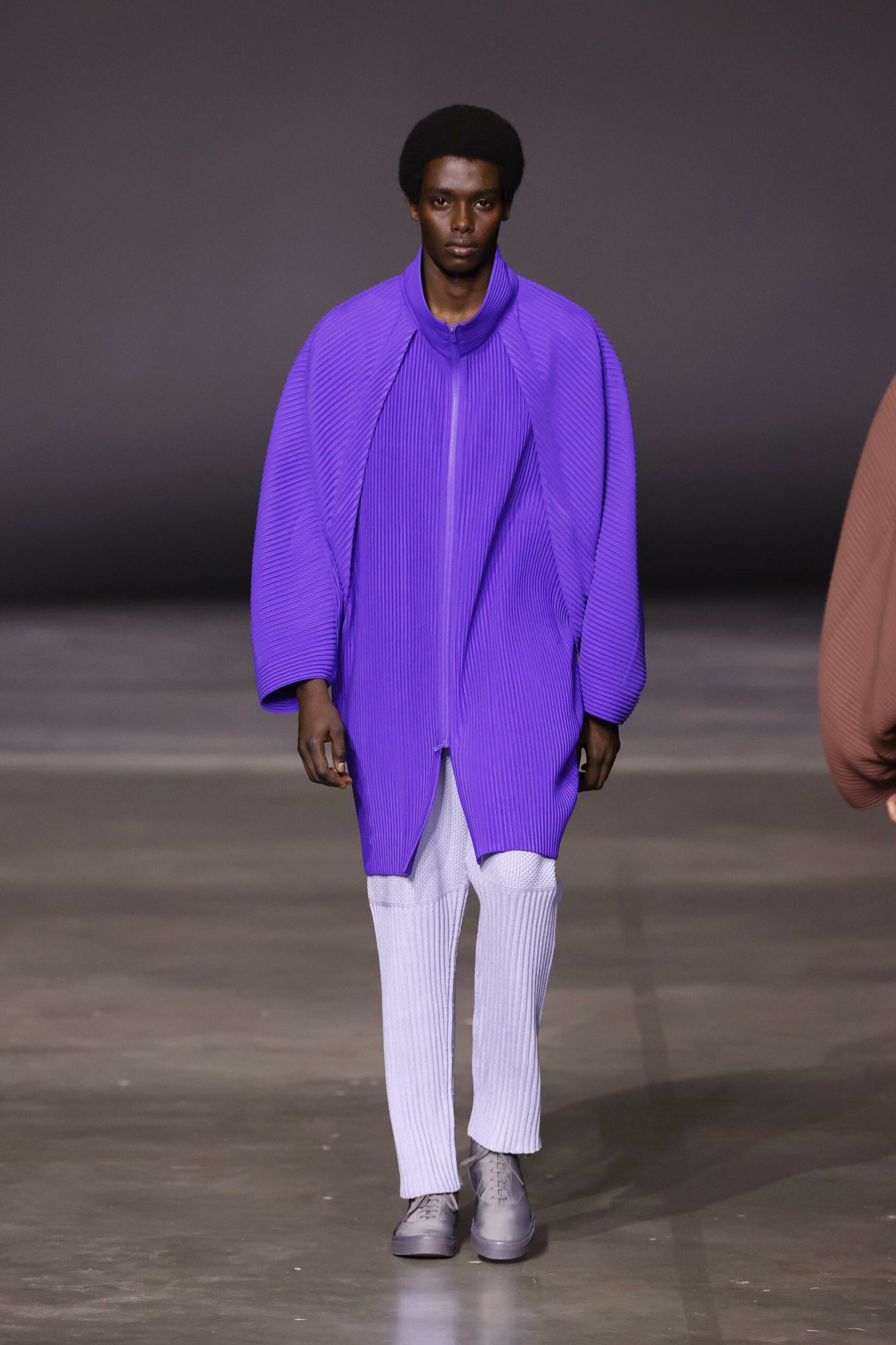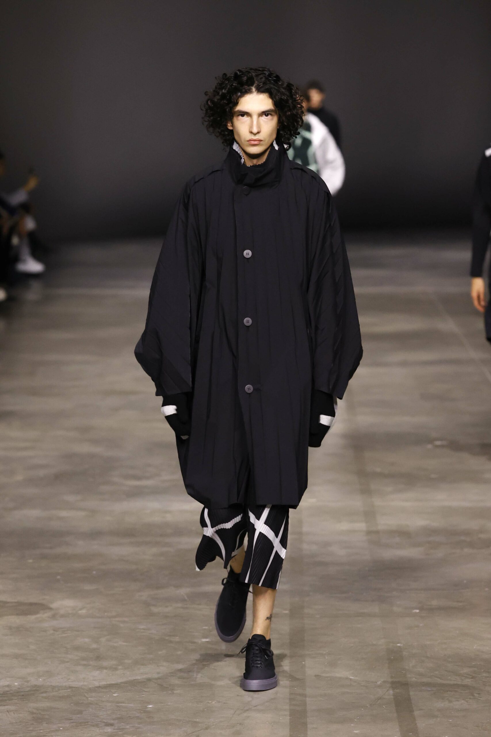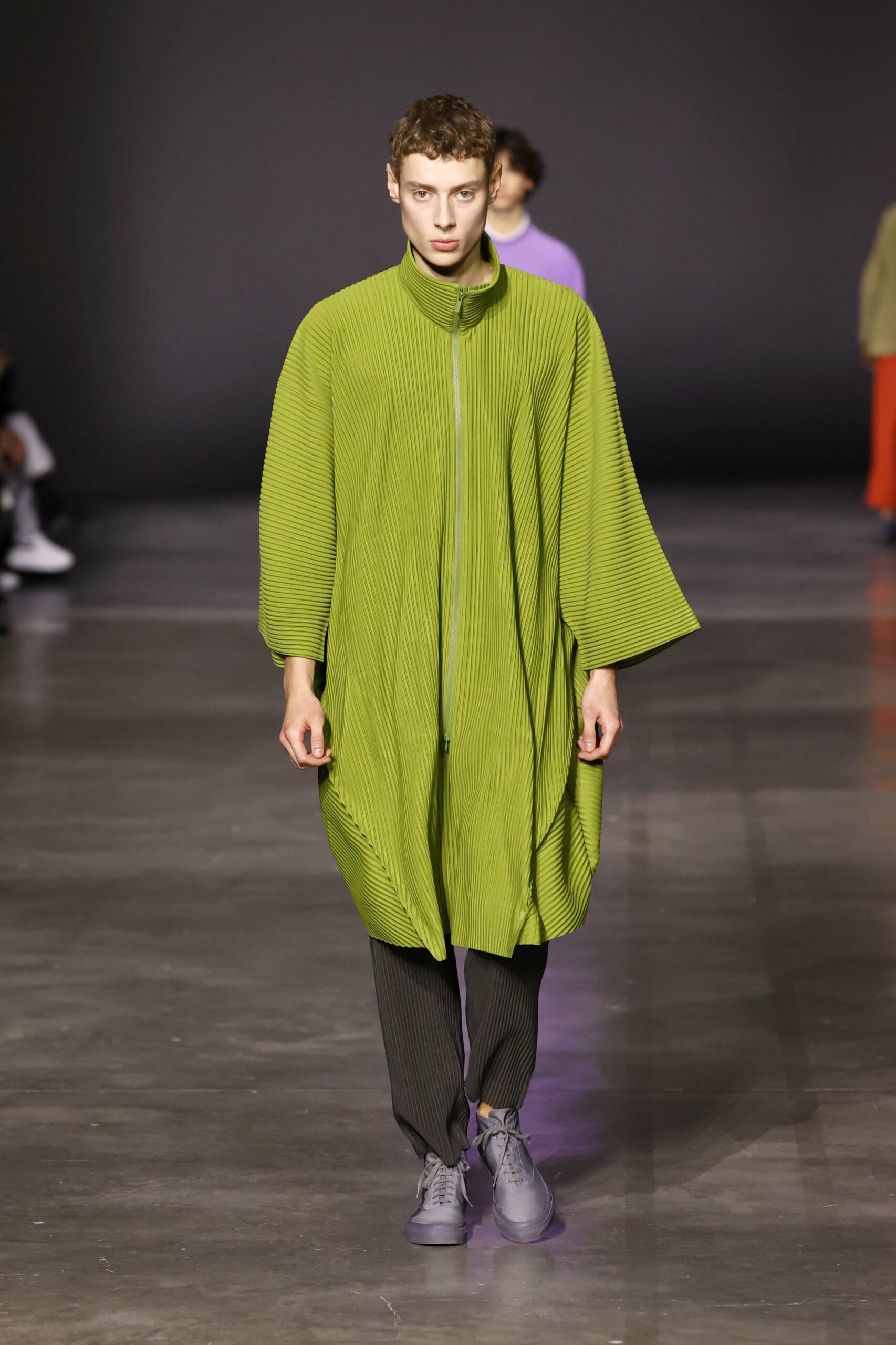 La nouvelle collection HOMME PLISSÉ ISSEY MIYAKE AUTUMN WINTER 2023/24, présentée lors du défilé Upon A Simplex au Palais de Tokyo à Paris le jeudi 19 janvier, se caractérise par une exploration de triangles et d’autres formes géométriques simples qui se transforment en créations aux formes complexes. Les formes obtenues sont intégrées aux vêtements, et les segments de ligne de leurs composants sont adaptés en plis dans les constructions de tissu, créant une collection de formations élaborées qui reflètent la simplicité de la géométrie de base.
