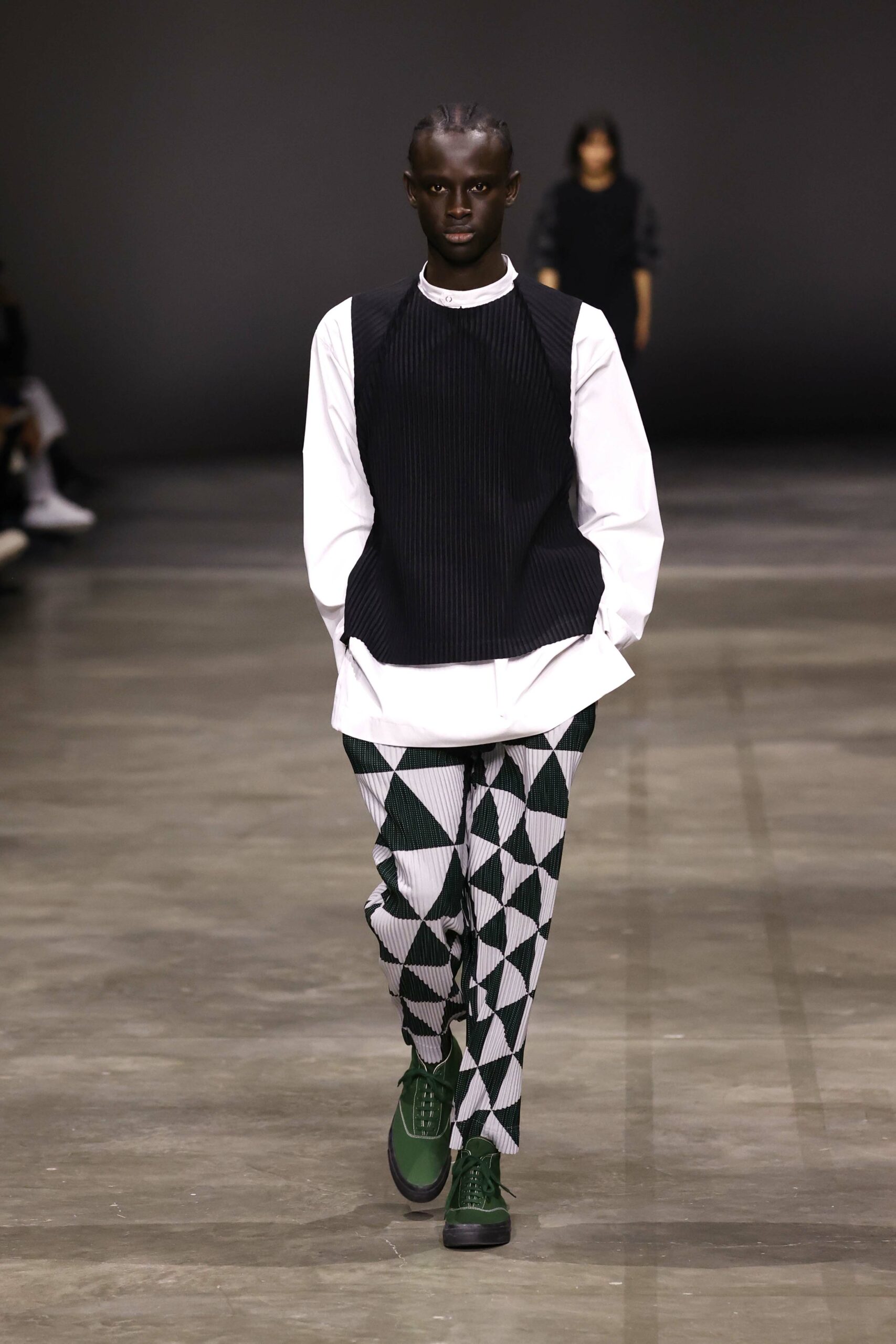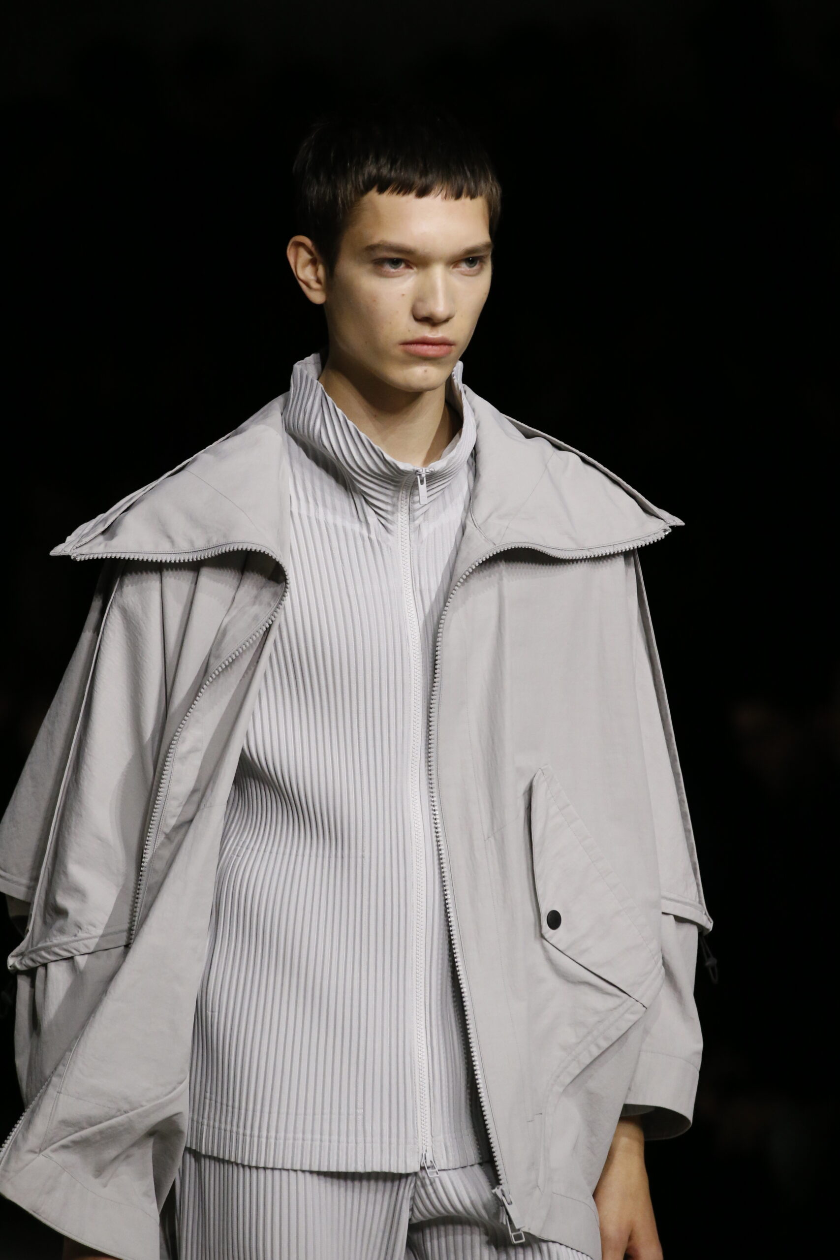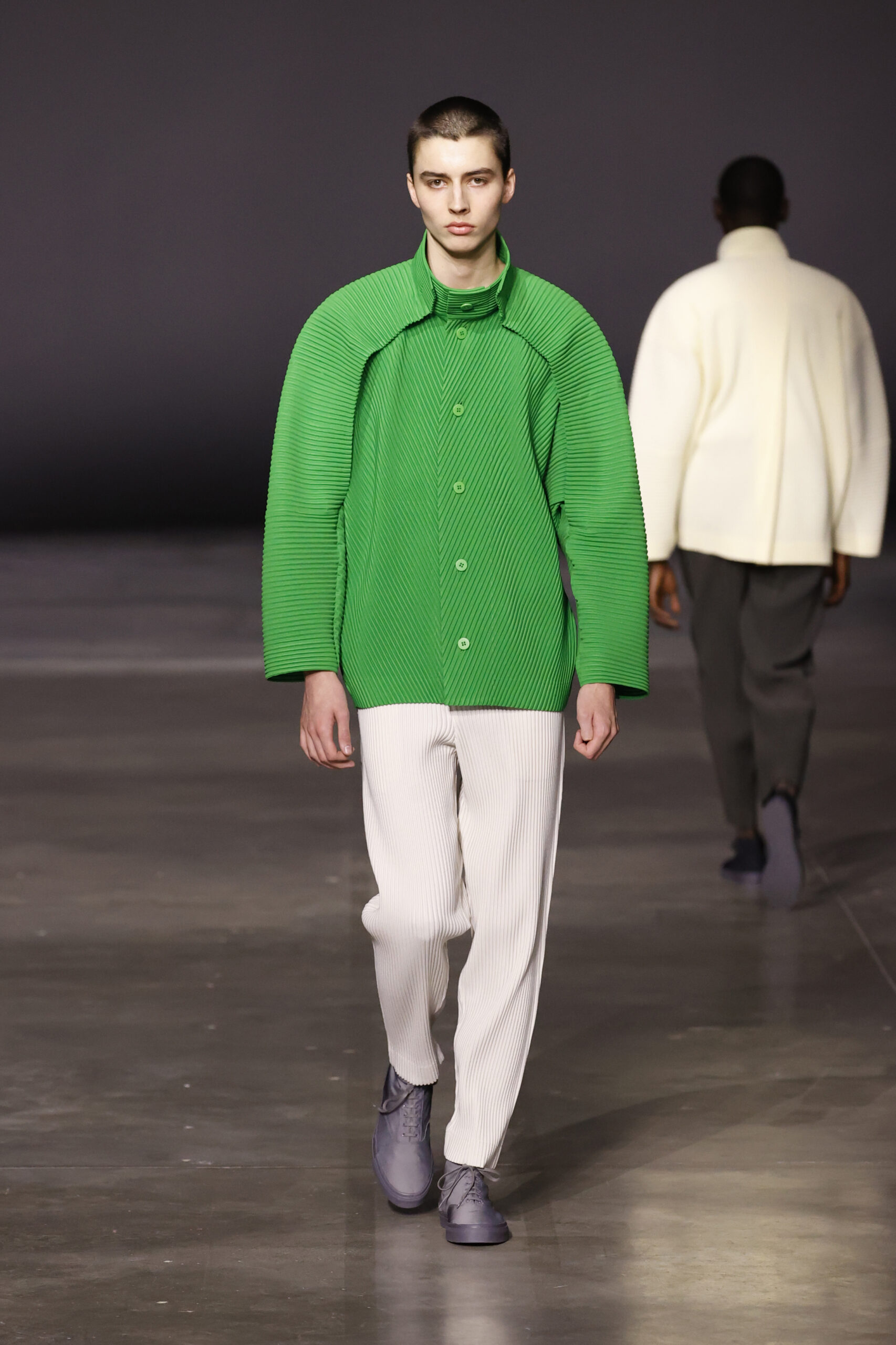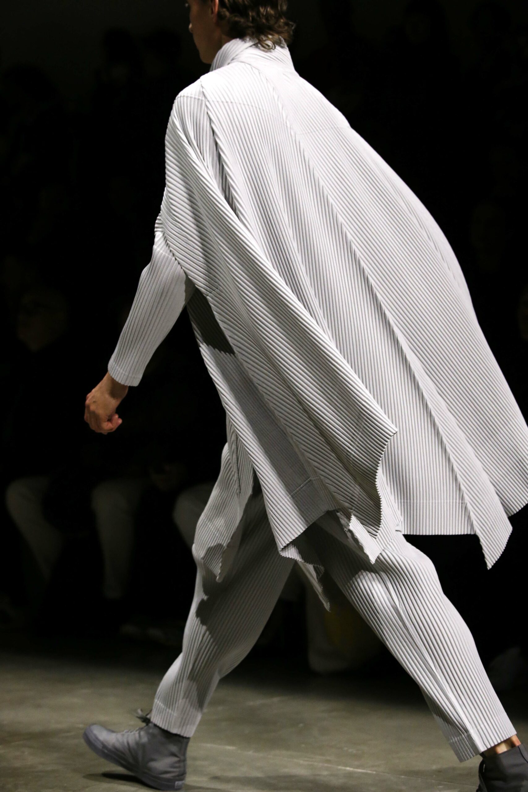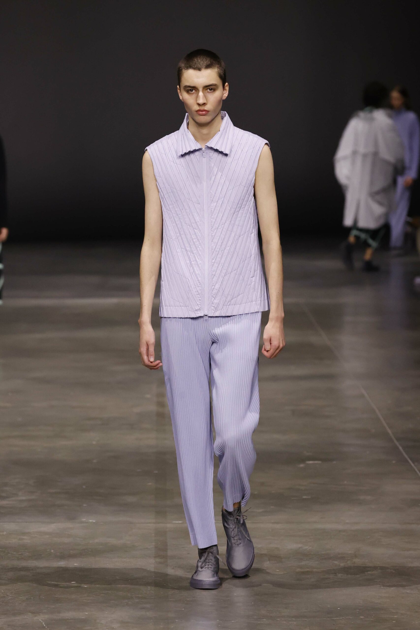 La nouvelle collection HOMME PLISSÉ ISSEY MIYAKE AUTUMN WINTER 2023/24, présentée lors du défilé Upon A Simplex au Palais de Tokyo à Paris le jeudi 19 janvier, se caractérise par une exploration de triangles et d’autres formes géométriques simples qui se transforment en créations aux formes complexes. Les formes obtenues sont intégrées aux vêtements, et les segments de ligne de leurs composants sont adaptés en plis dans les constructions de tissu, créant une collection de formations élaborées qui reflètent la simplicité de la géométrie de base.