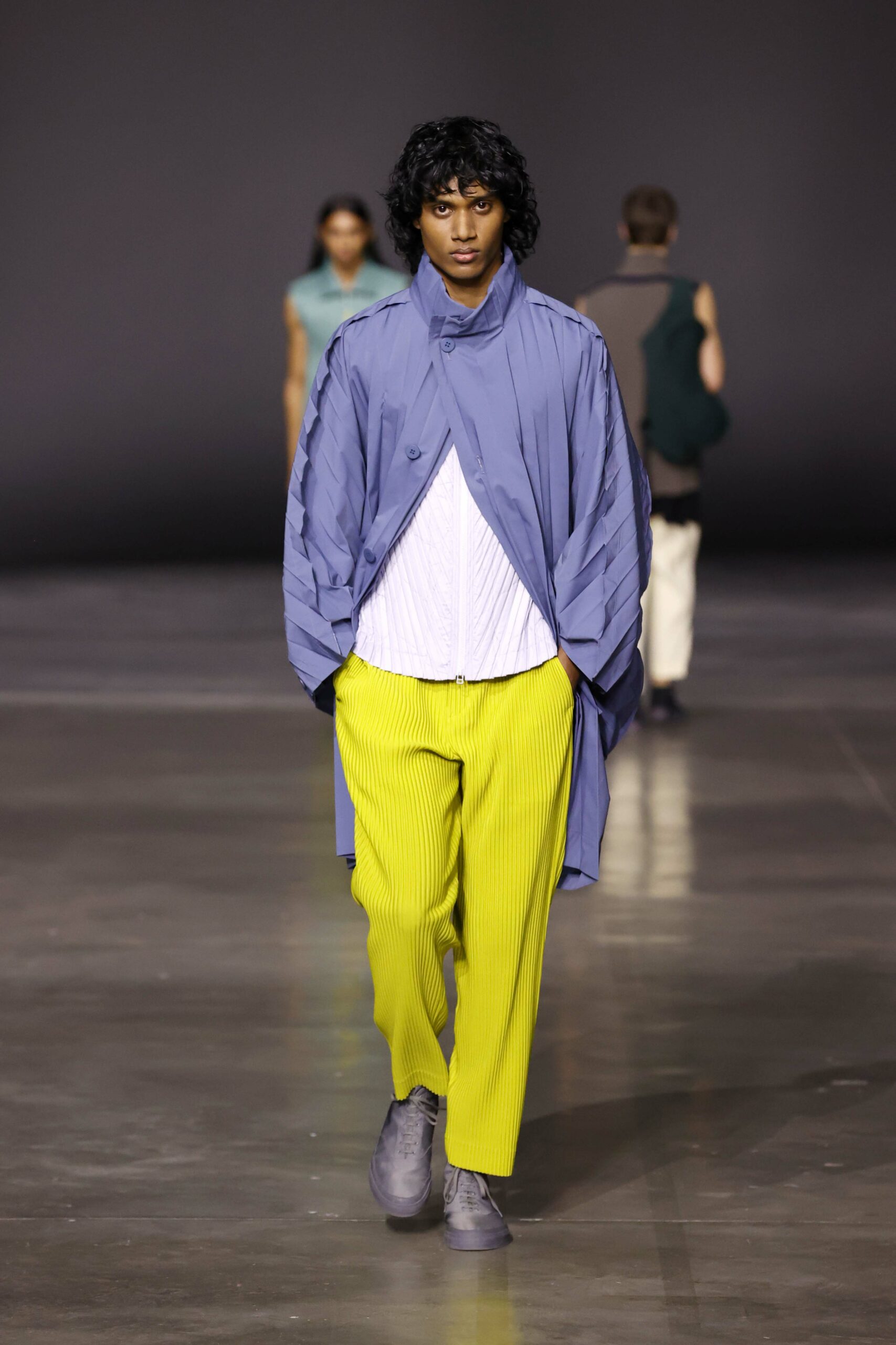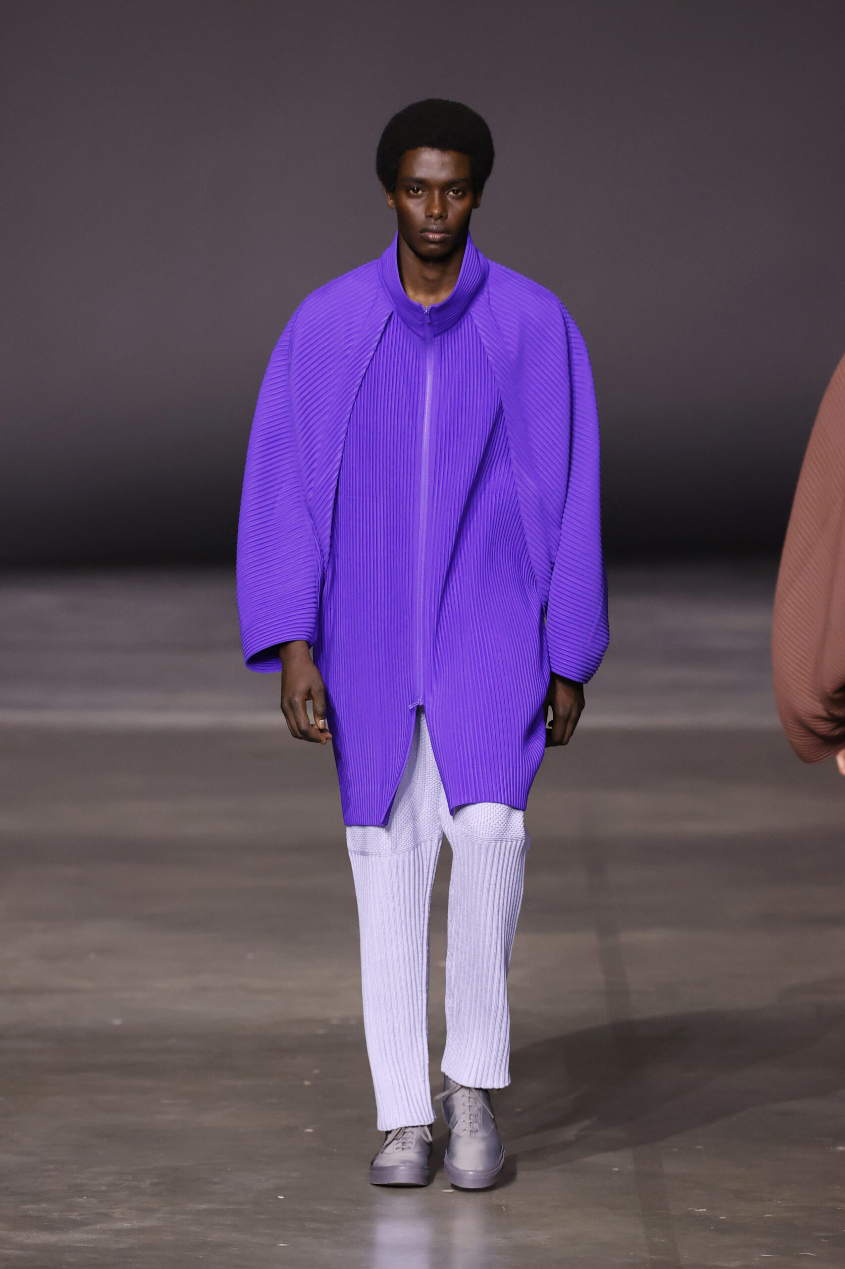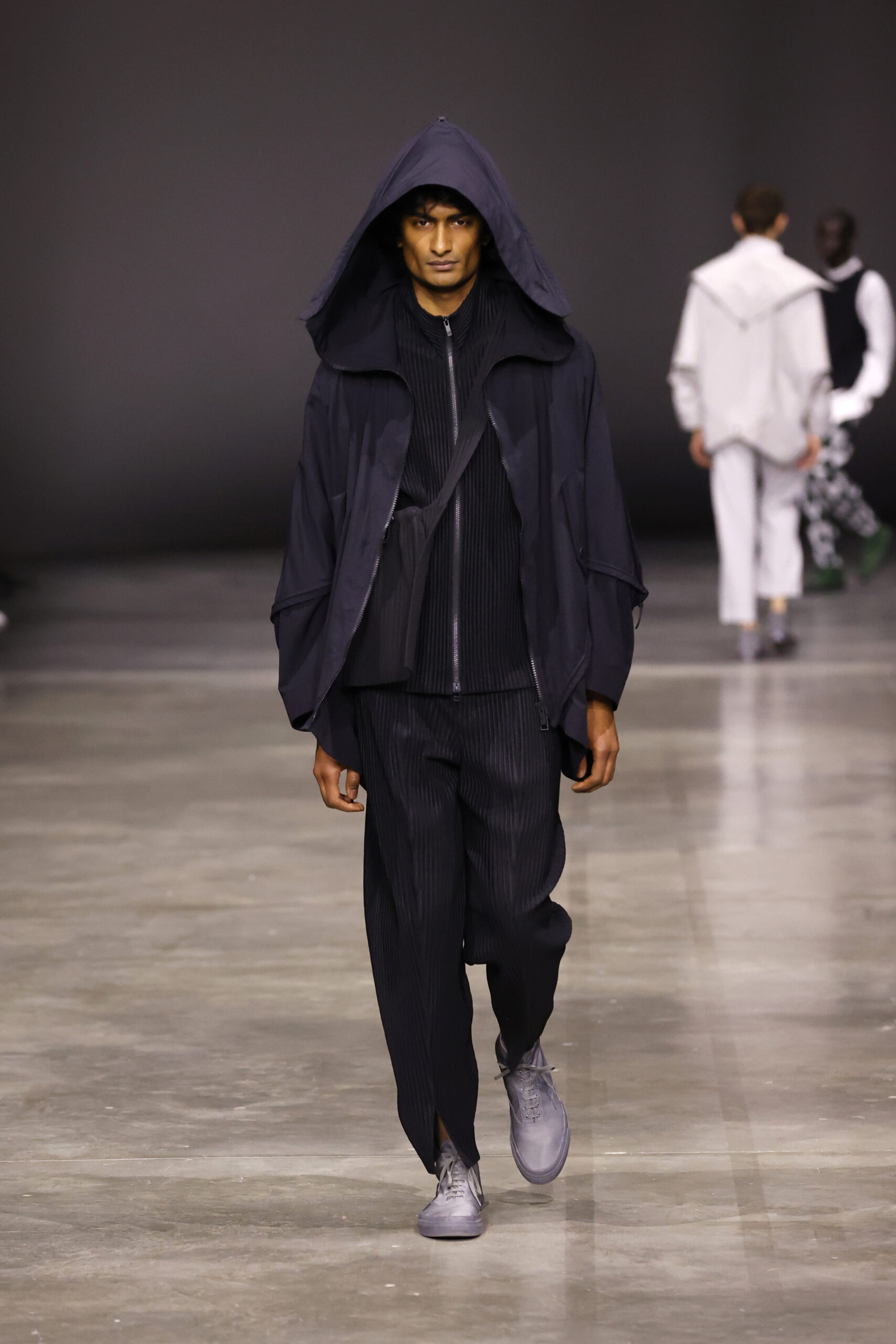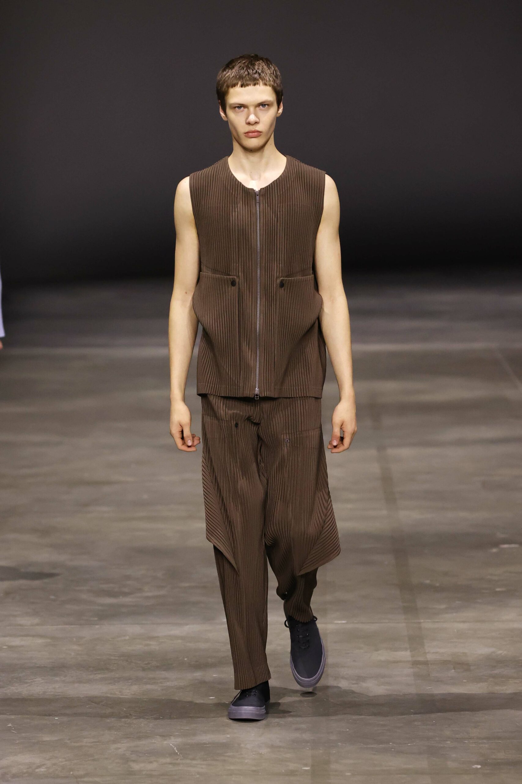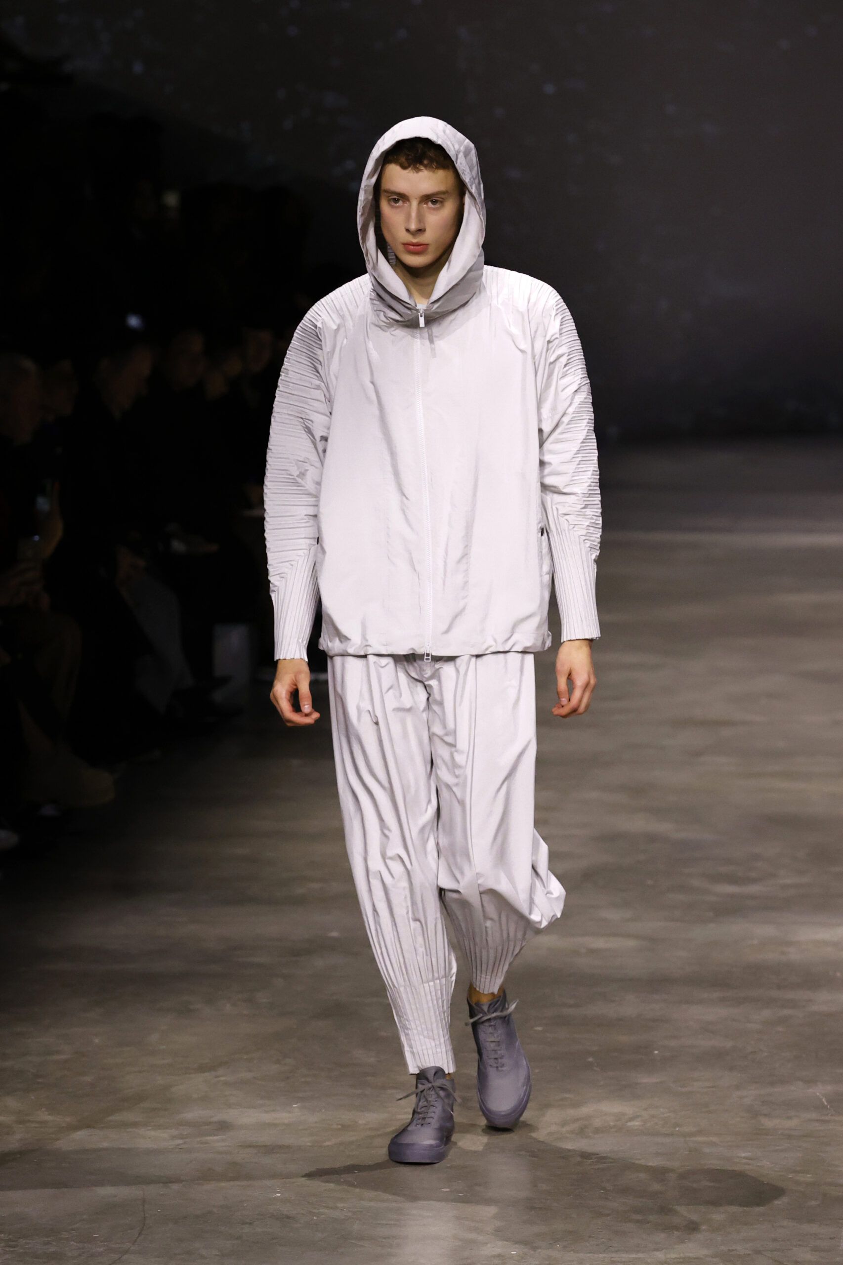 La nouvelle collection HOMME PLISSÉ ISSEY MIYAKE AUTUMN WINTER 2023/24, présentée lors du défilé Upon A Simplex au Palais de Tokyo à Paris le jeudi 19 janvier, se caractérise par une exploration de triangles et d’autres formes géométriques simples qui se transforment en créations aux formes complexes. Les formes obtenues sont intégrées aux vêtements, et les segments de ligne de leurs composants sont adaptés en plis dans les constructions de tissu, créant une collection de formations élaborées qui reflètent la simplicité de la géométrie de base.