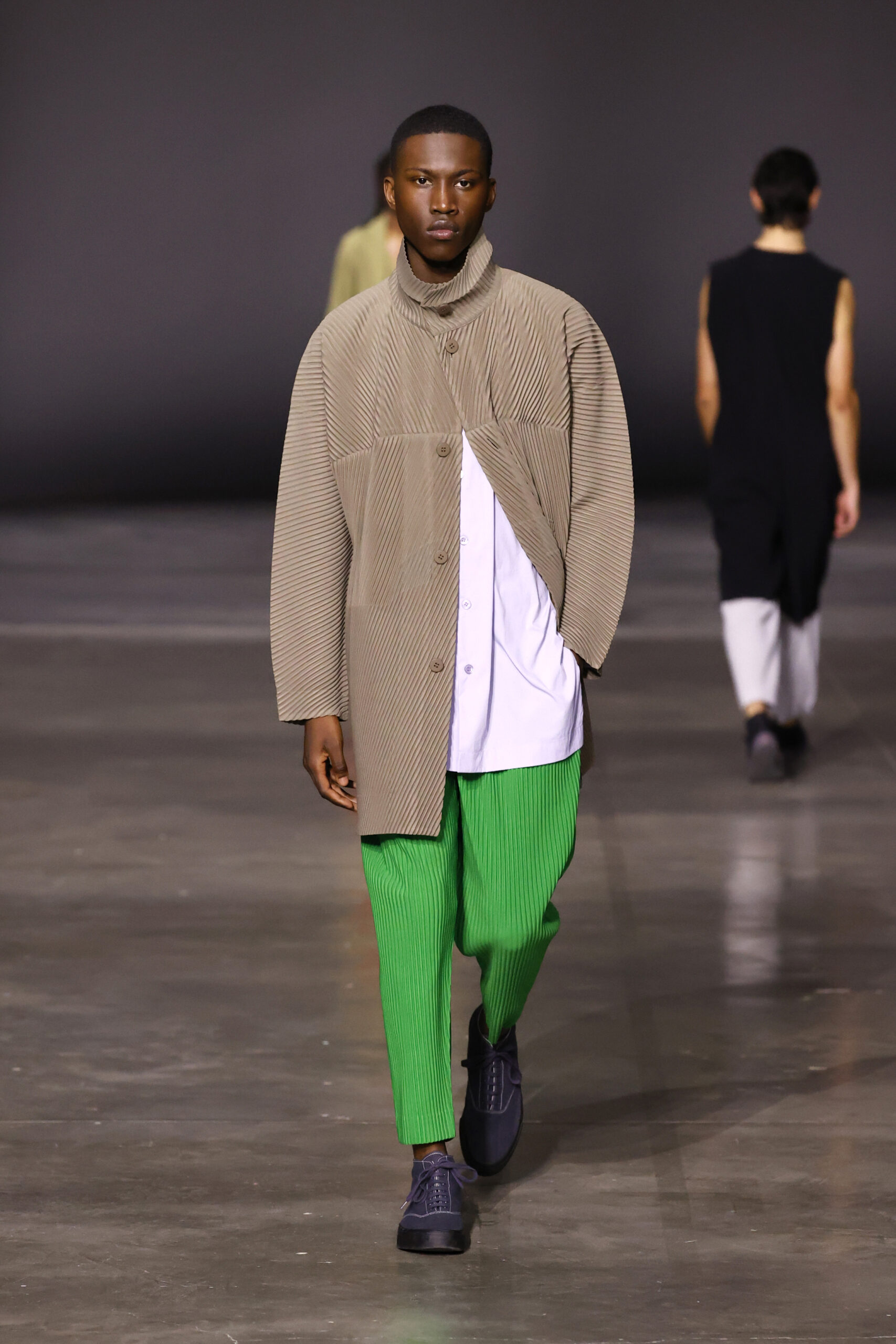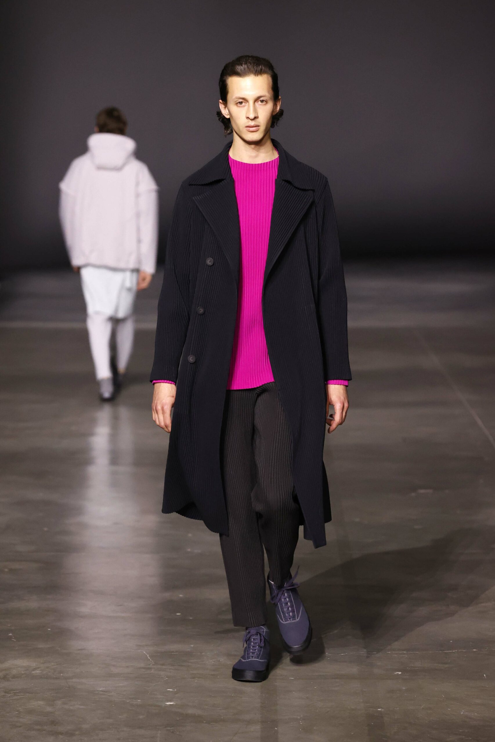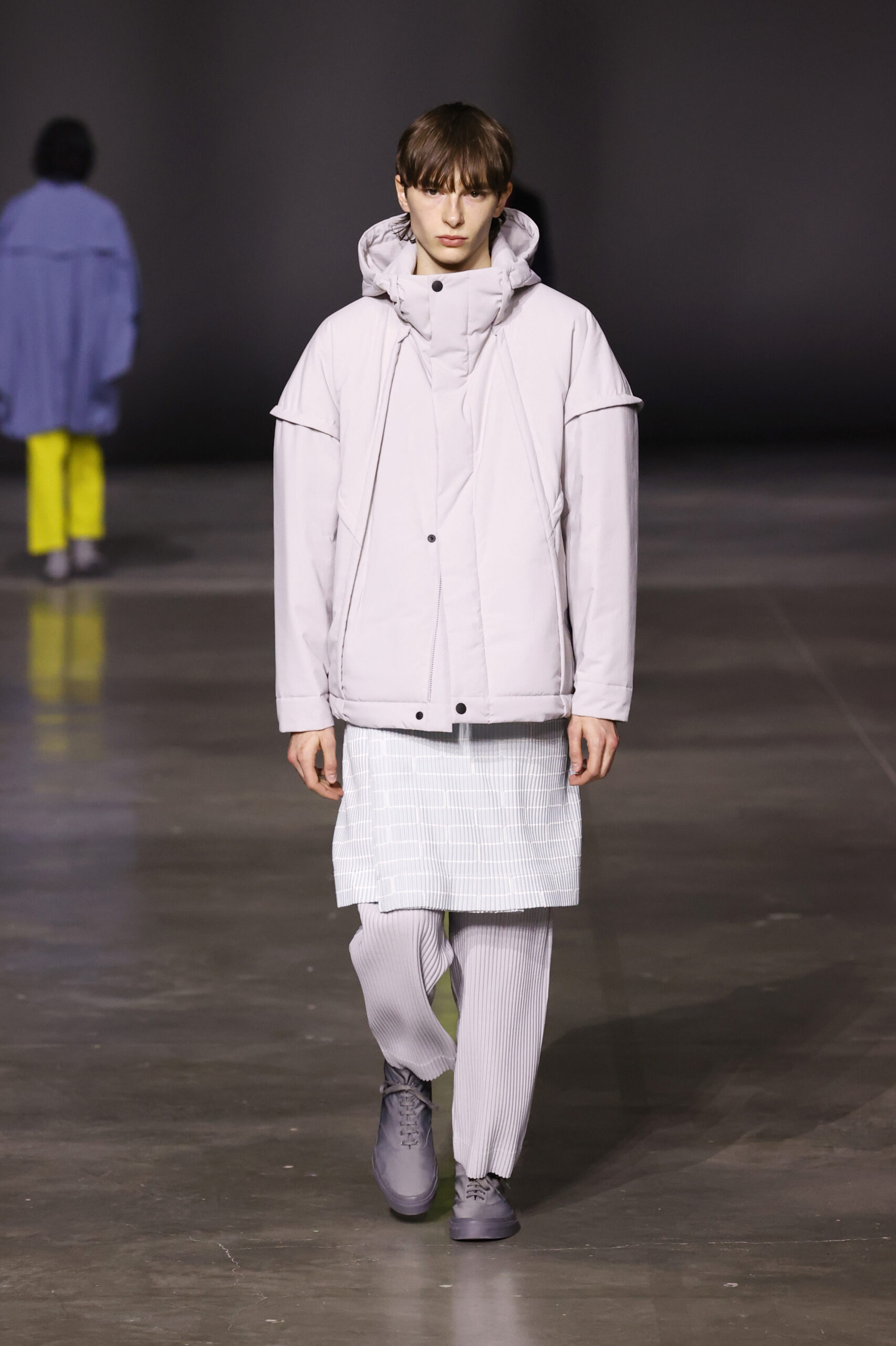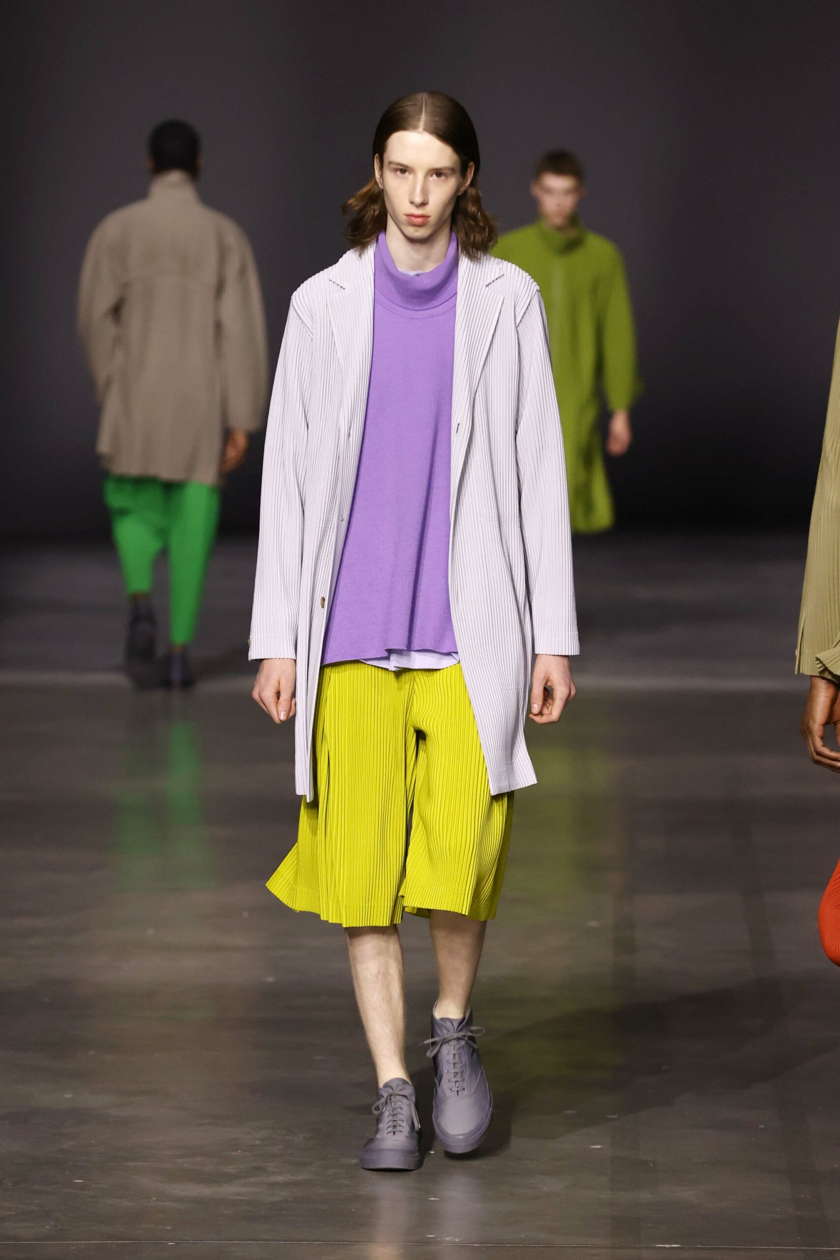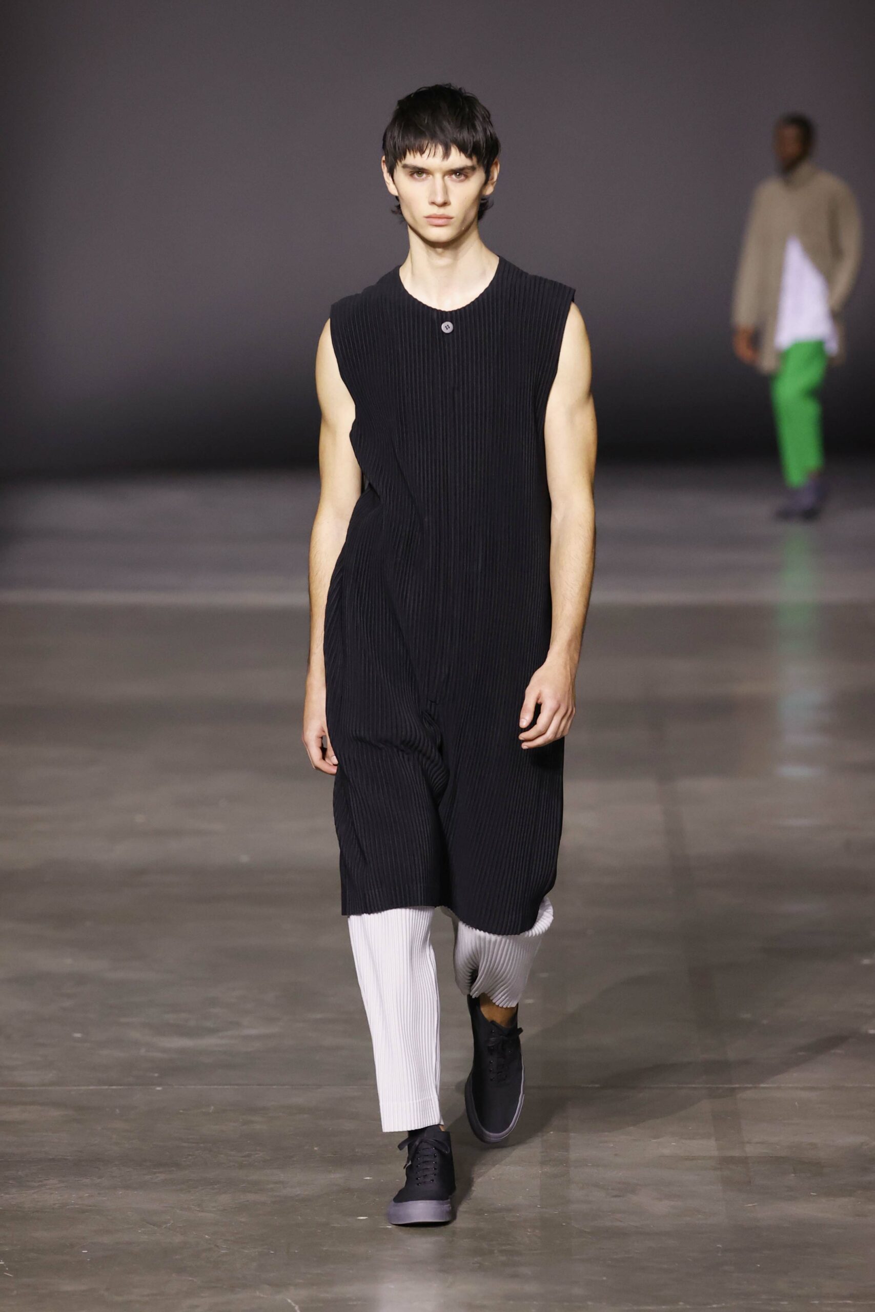 La nouvelle collection HOMME PLISSÉ ISSEY MIYAKE AUTUMN WINTER 2023/24, présentée lors du défilé Upon A Simplex au Palais de Tokyo à Paris le jeudi 19 janvier, se caractérise par une exploration de triangles et d’autres formes géométriques simples qui se transforment en créations aux formes complexes. Les formes obtenues sont intégrées aux vêtements, et les segments de ligne de leurs composants sont adaptés en plis dans les constructions de tissu, créant une collection de formations élaborées qui reflètent la simplicité de la géométrie de base.