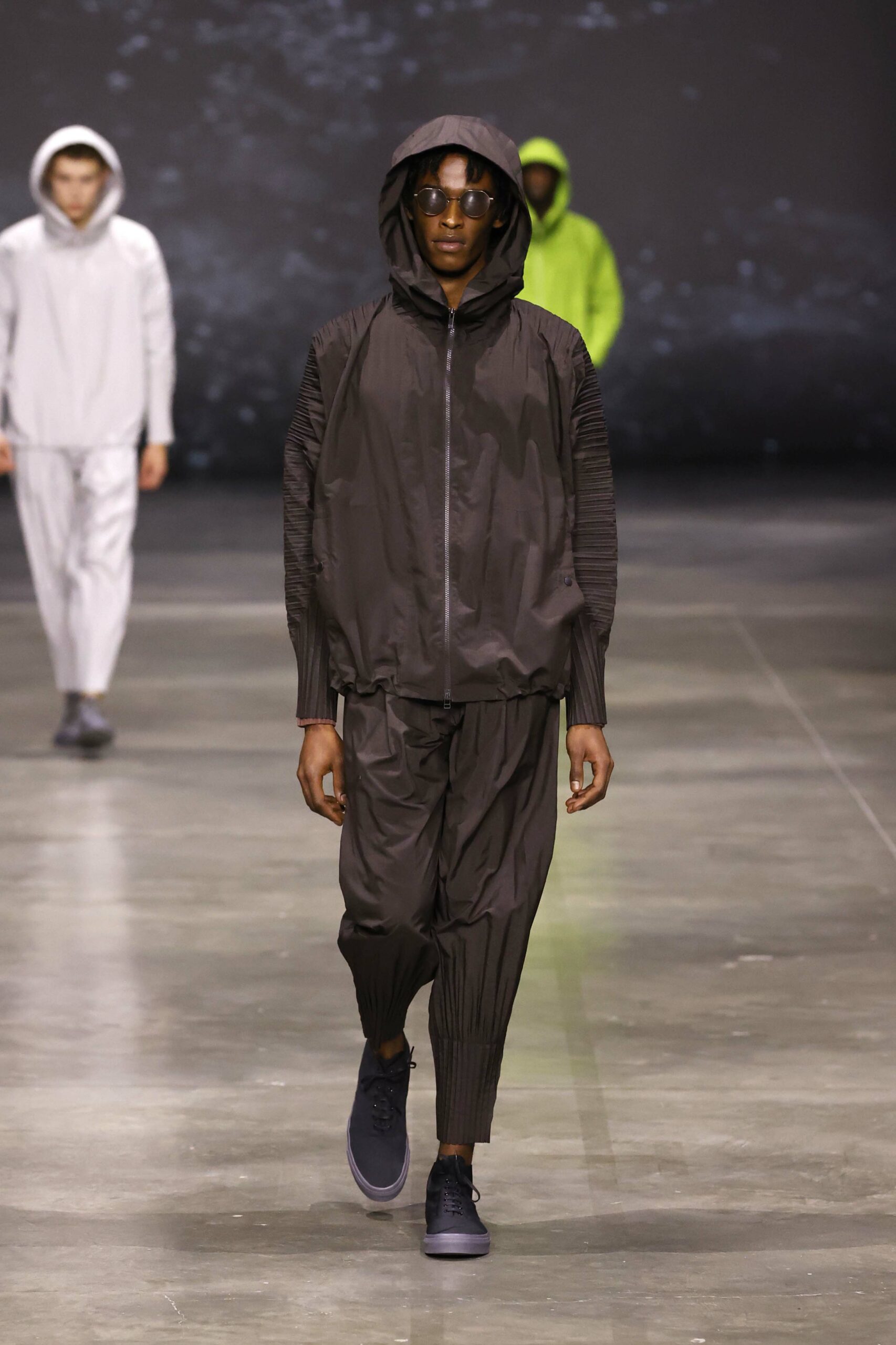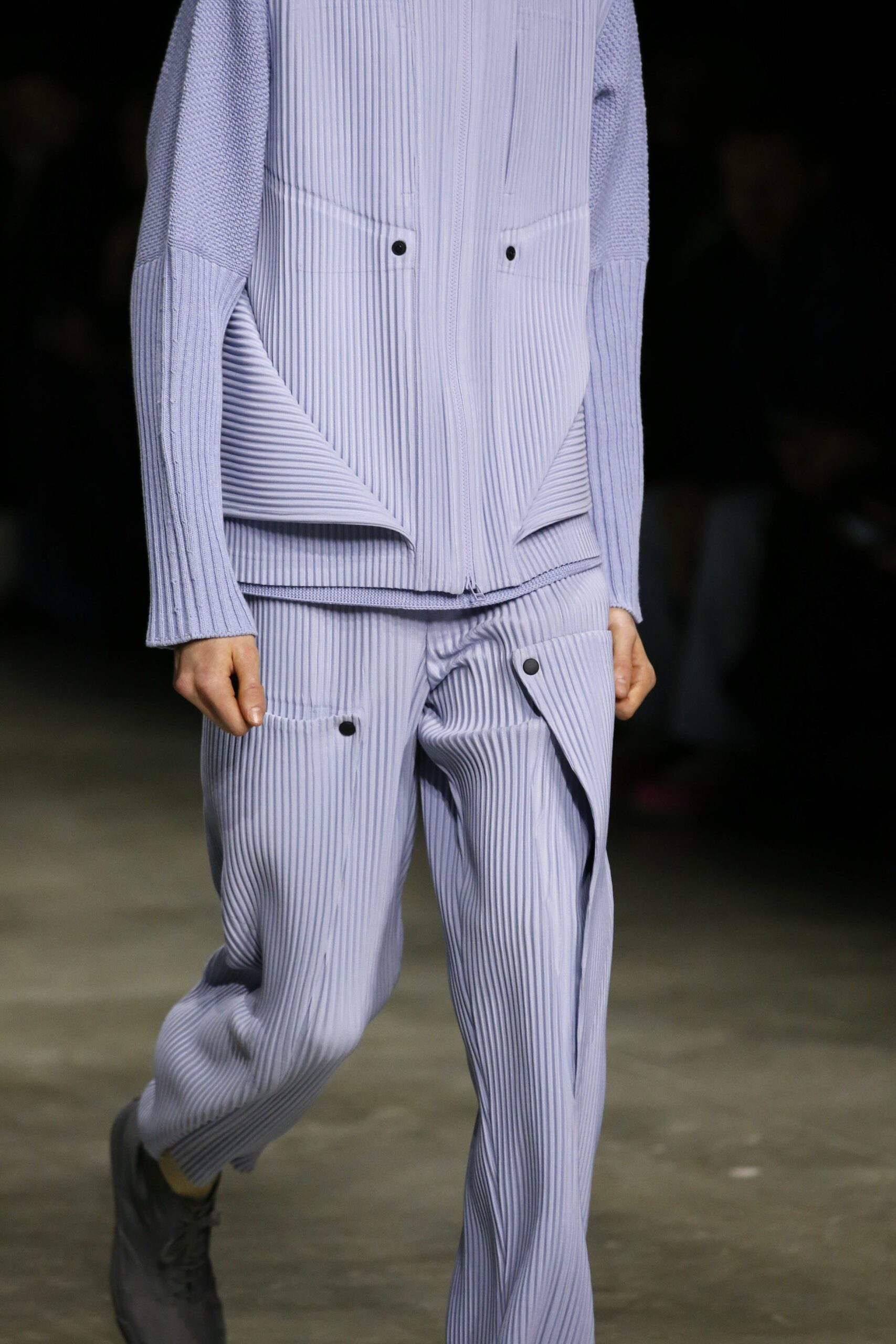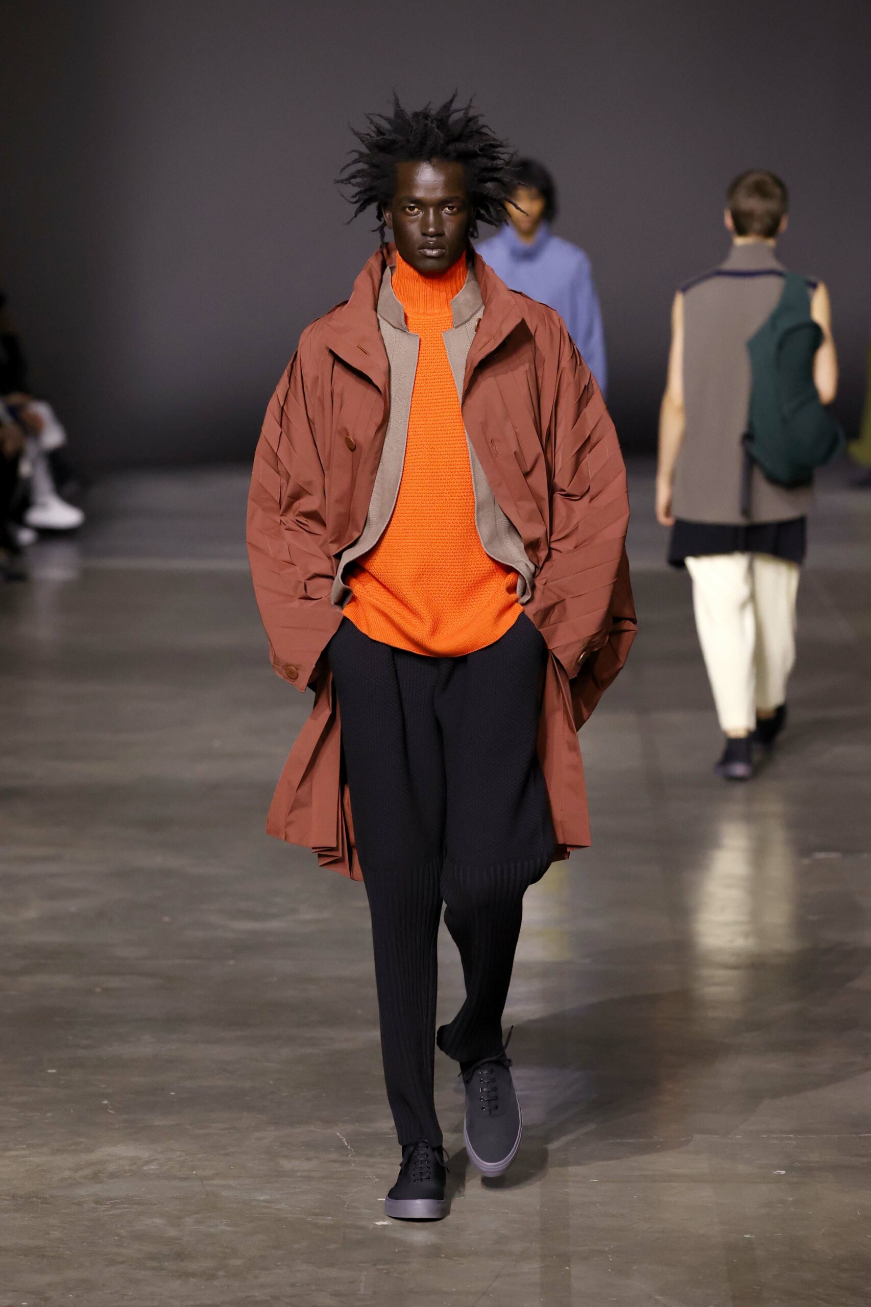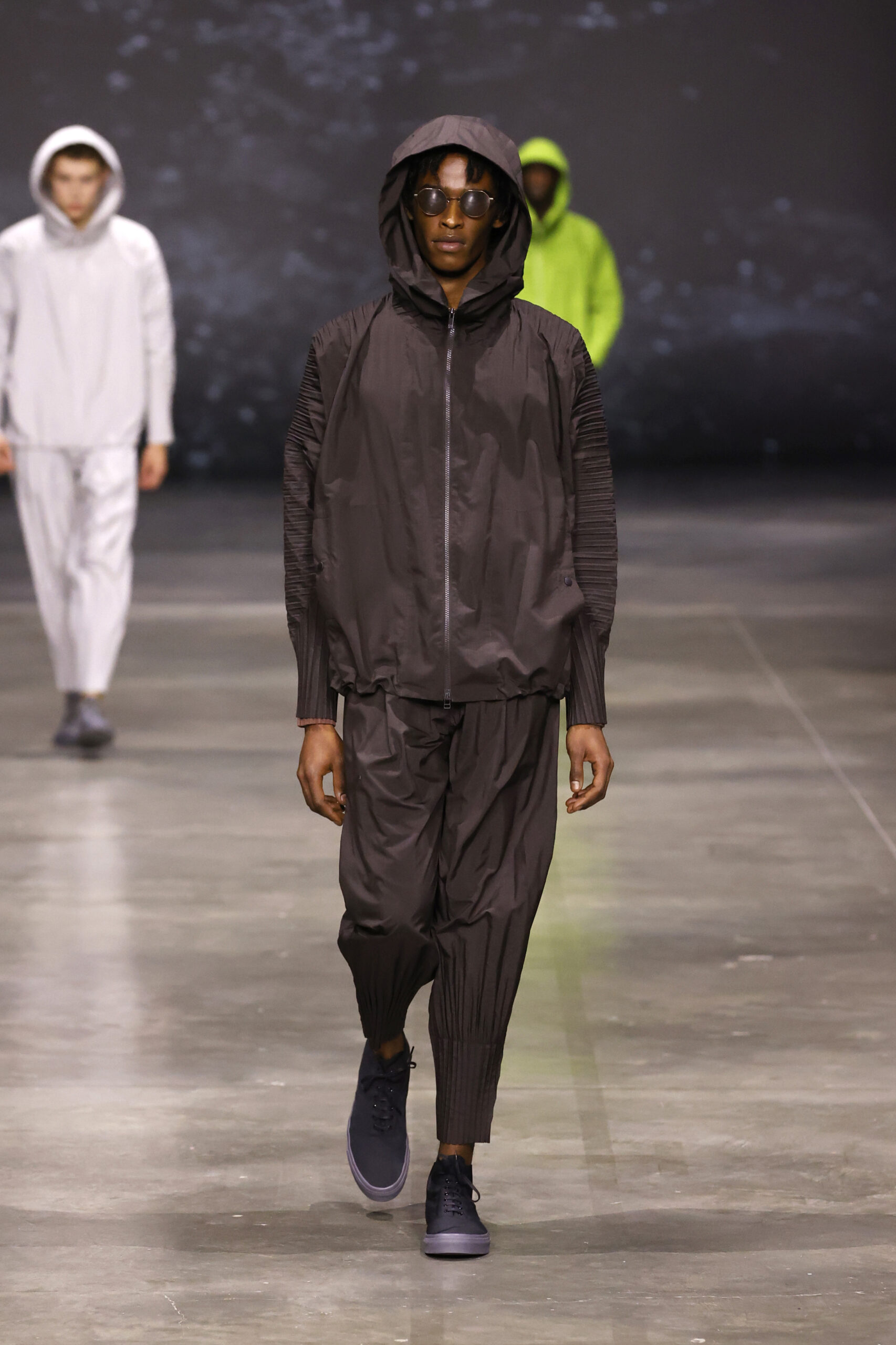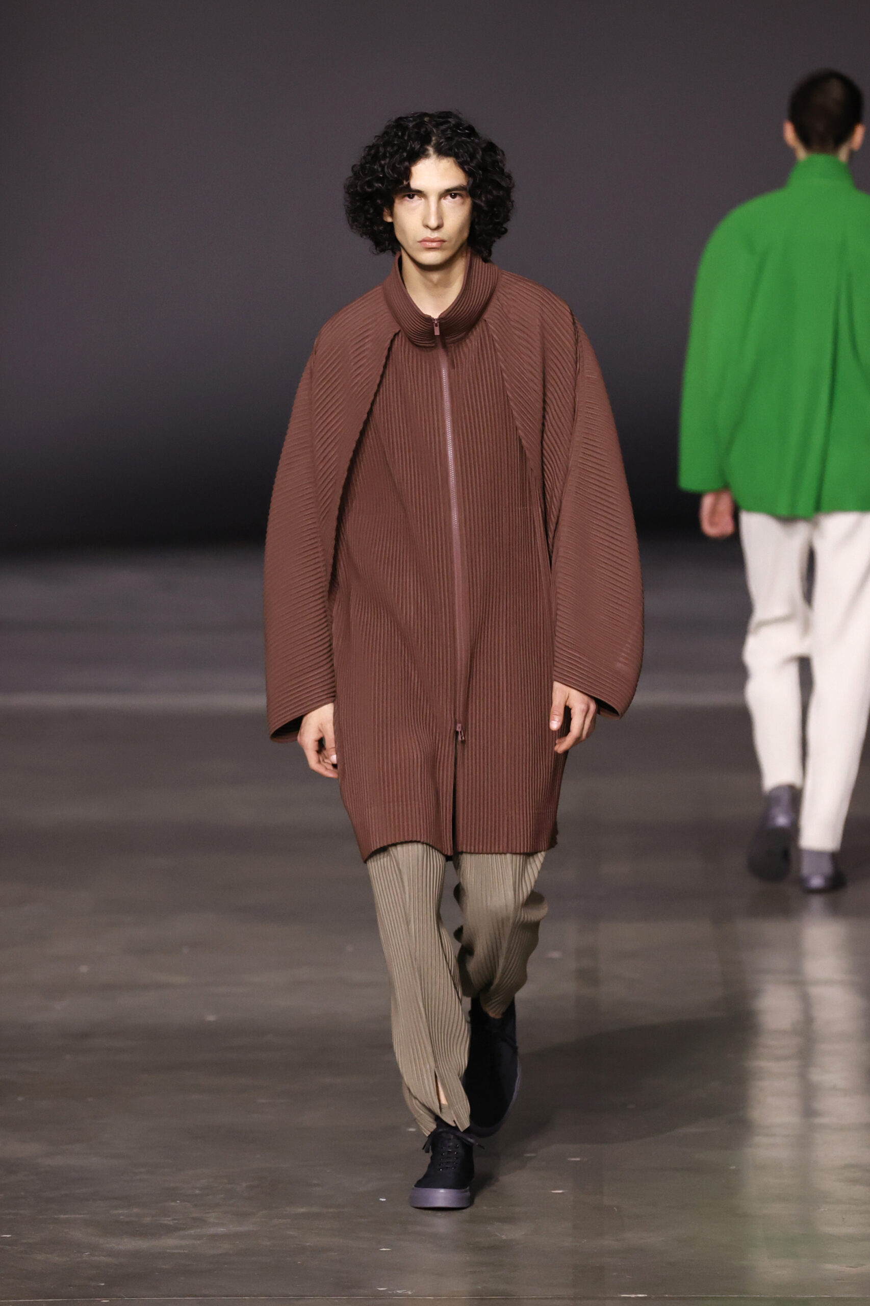 La nouvelle collection HOMME PLISSÉ ISSEY MIYAKE AUTUMN WINTER 2023/24, présentée lors du défilé Upon A Simplex au Palais de Tokyo à Paris le jeudi 19 janvier, se caractérise par une exploration de triangles et d’autres formes géométriques simples qui se transforment en créations aux formes complexes. Les formes obtenues sont intégrées aux vêtements, et les segments de ligne de leurs composants sont adaptés en plis dans les constructions de tissu, créant une collection de formations élaborées qui reflètent la simplicité de la géométrie de base.