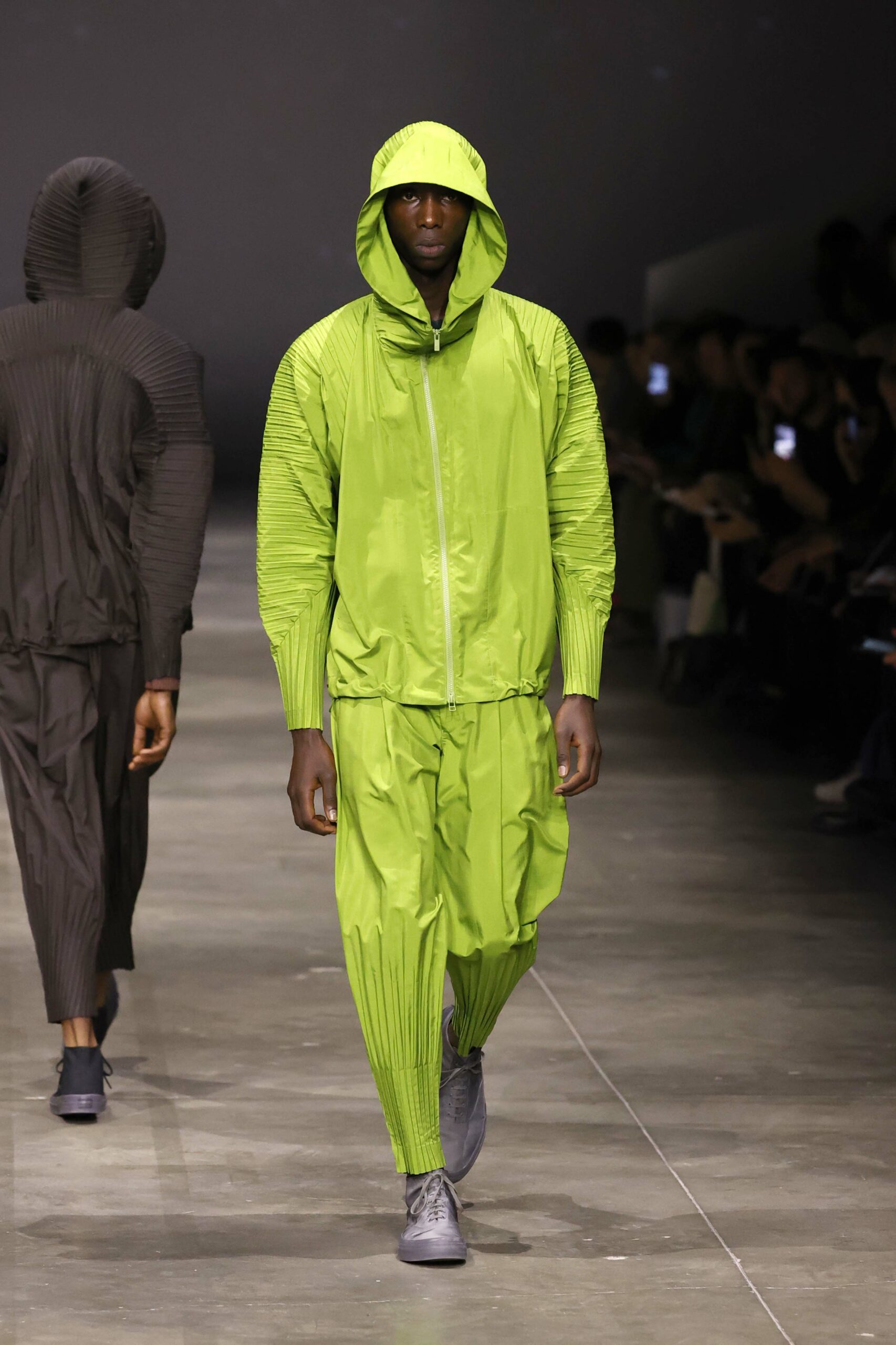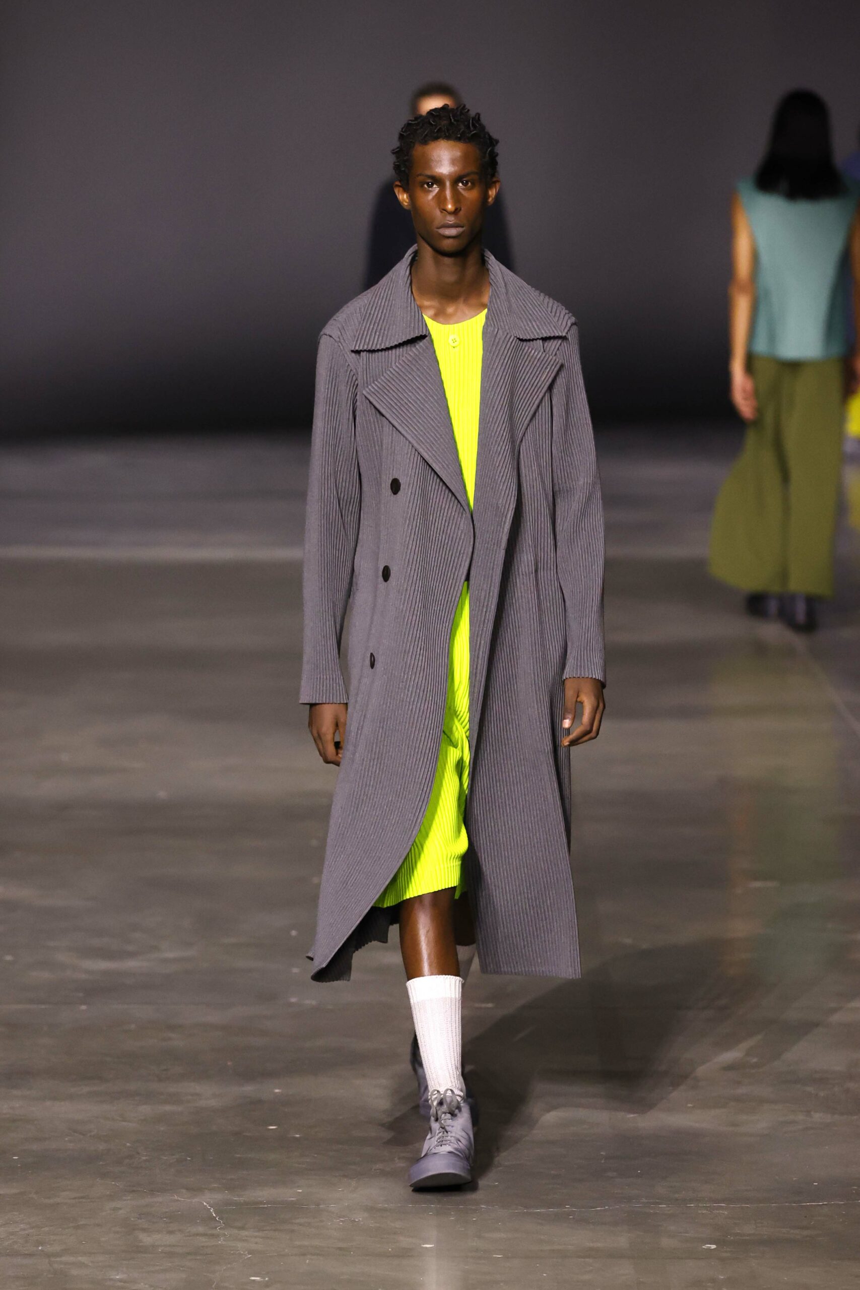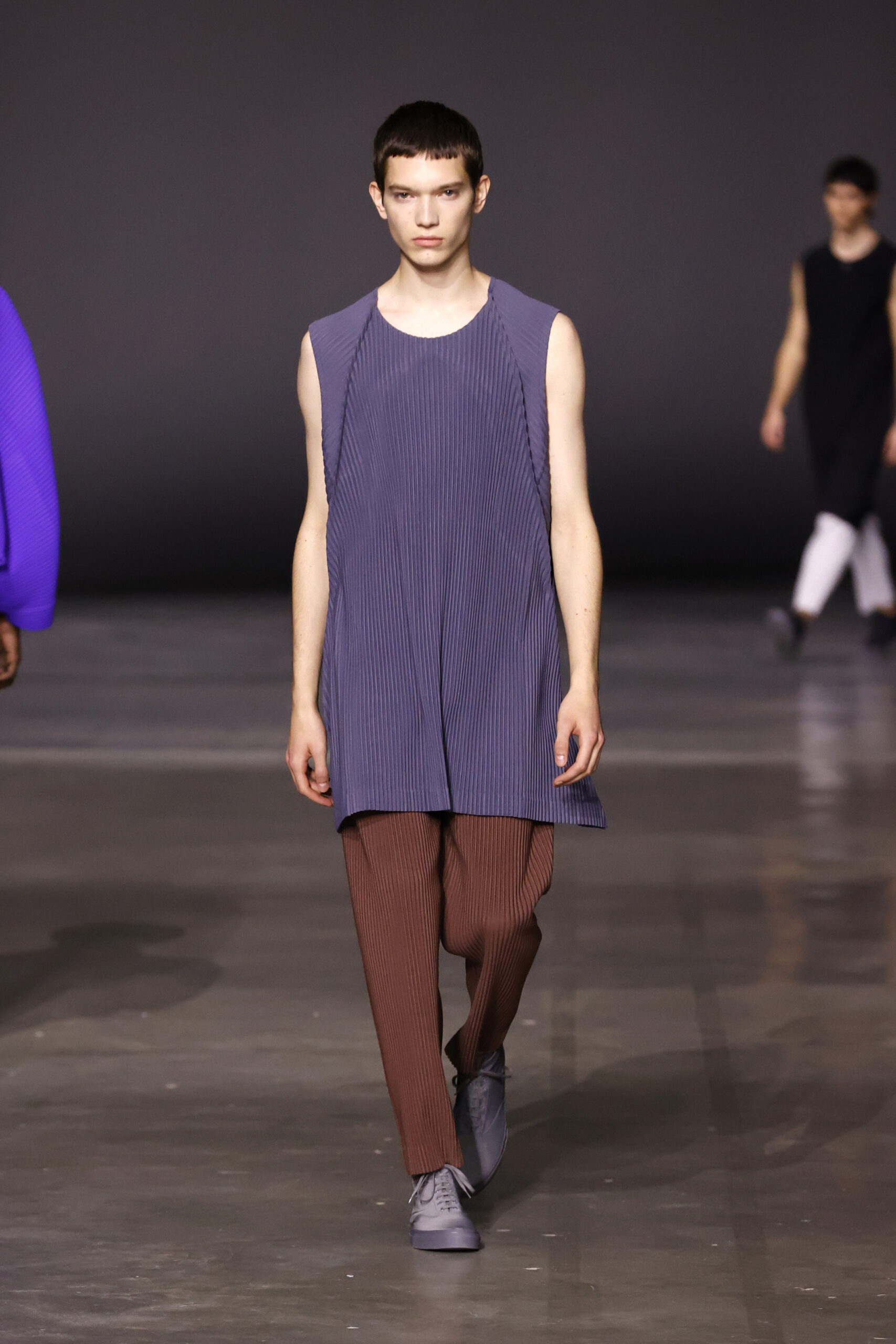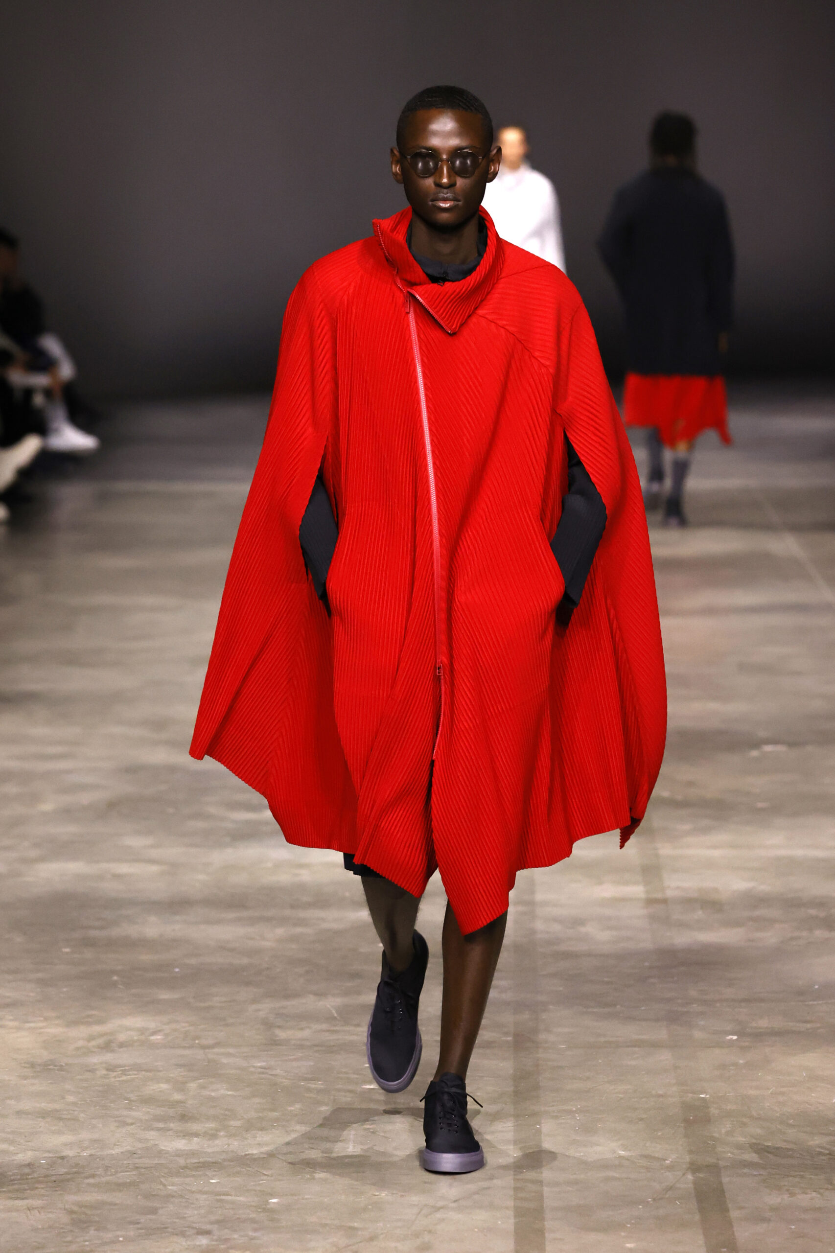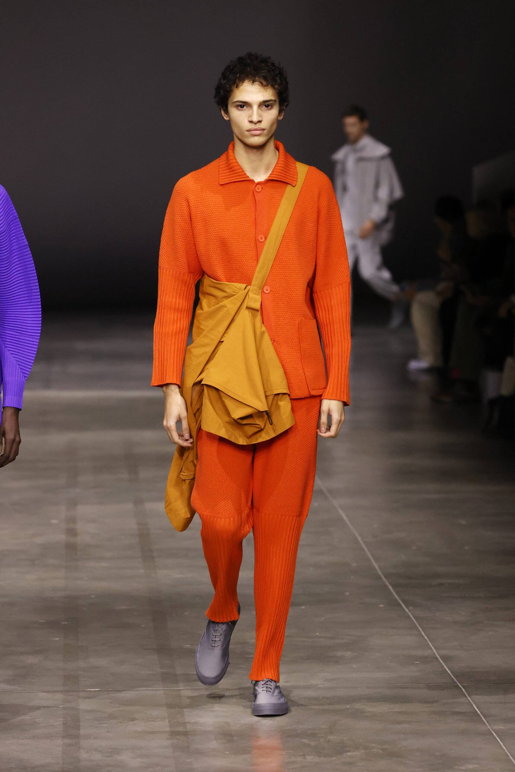 La nouvelle collection HOMME PLISSÉ ISSEY MIYAKE AUTUMN WINTER 2023/24, présentée lors du défilé Upon A Simplex au Palais de Tokyo à Paris le jeudi 19 janvier, se caractérise par une exploration de triangles et d’autres formes géométriques simples qui se transforment en créations aux formes complexes. Les formes obtenues sont intégrées aux vêtements, et les segments de ligne de leurs composants sont adaptés en plis dans les constructions de tissu, créant une collection de formations élaborées qui reflètent la simplicité de la géométrie de base.