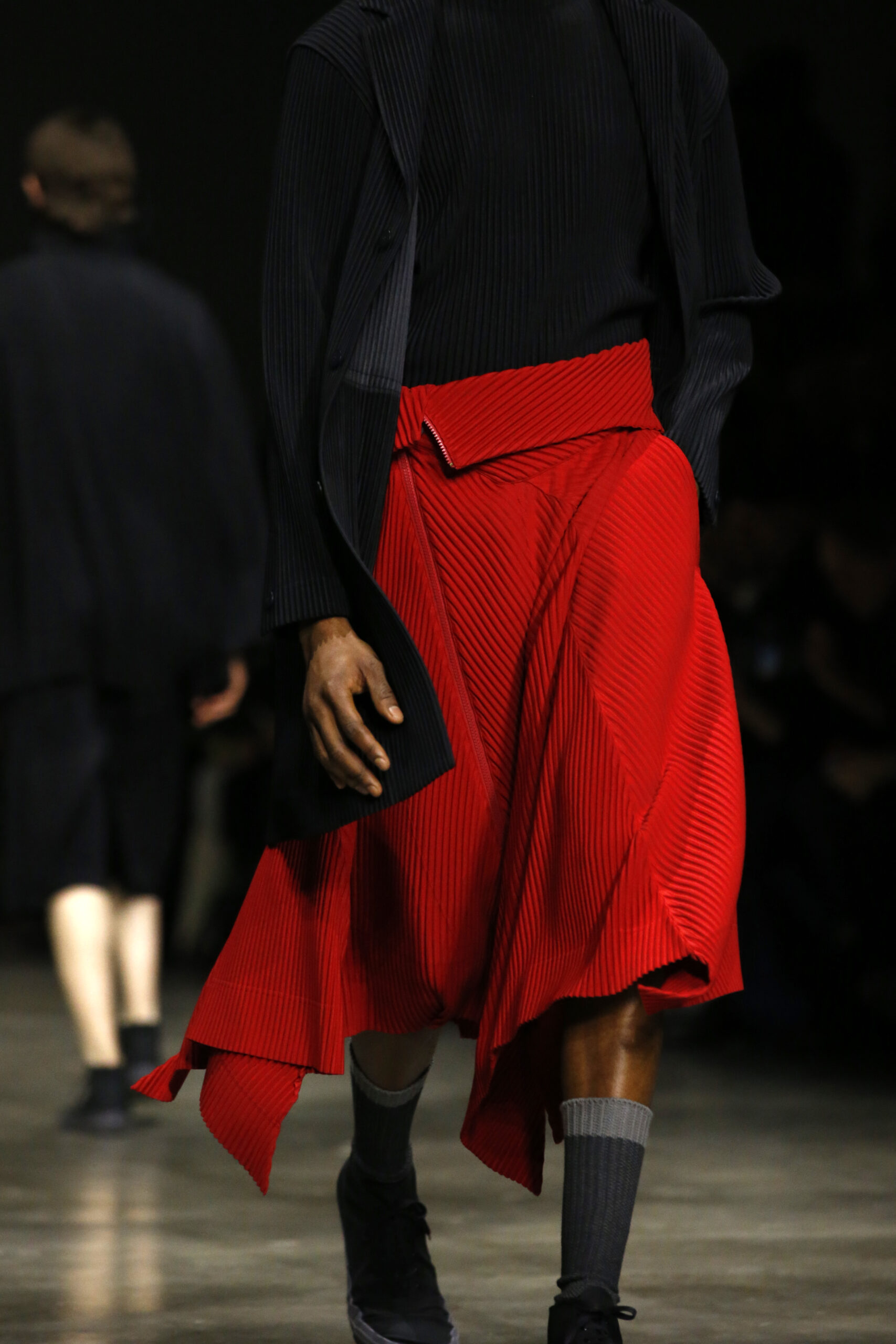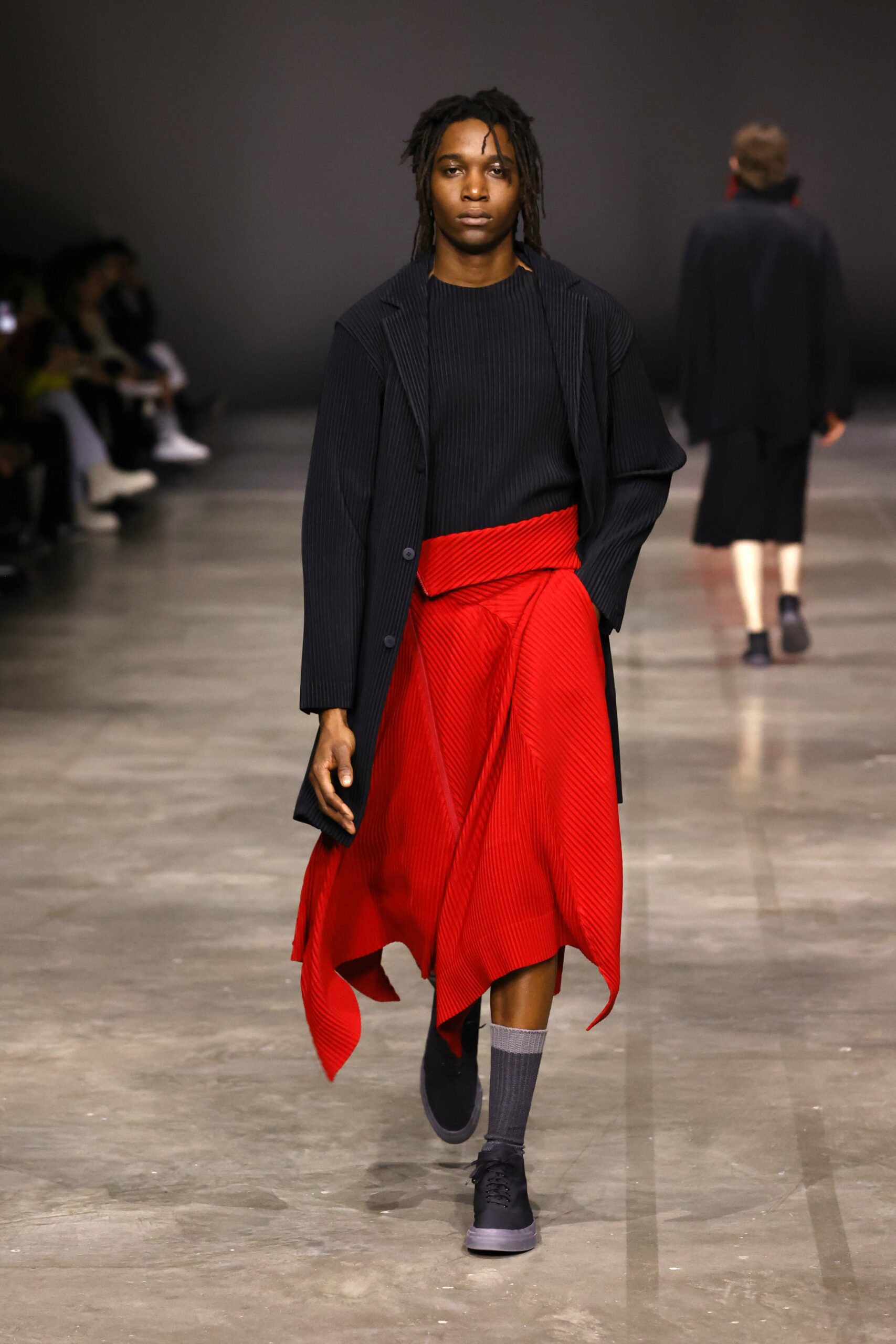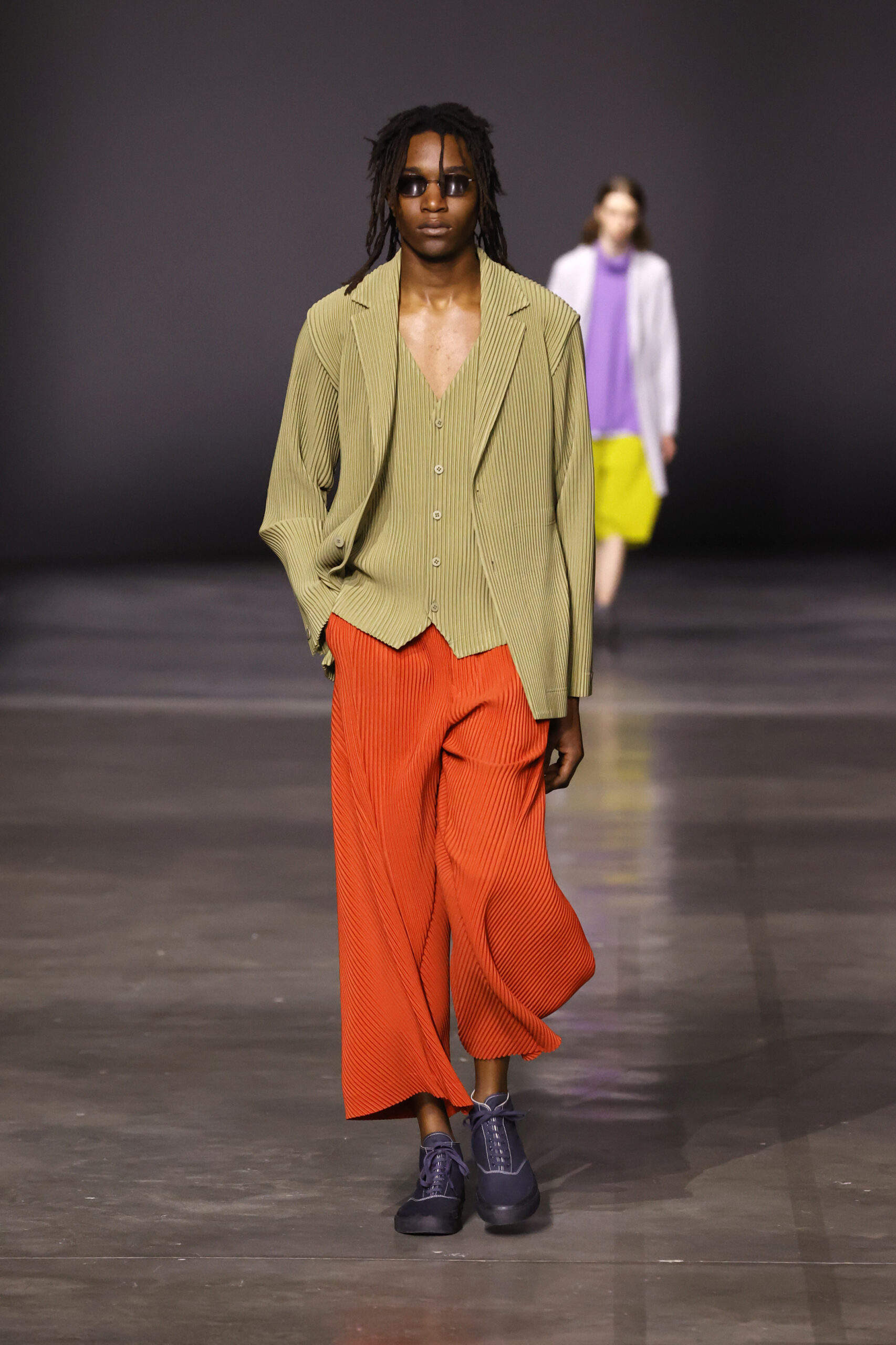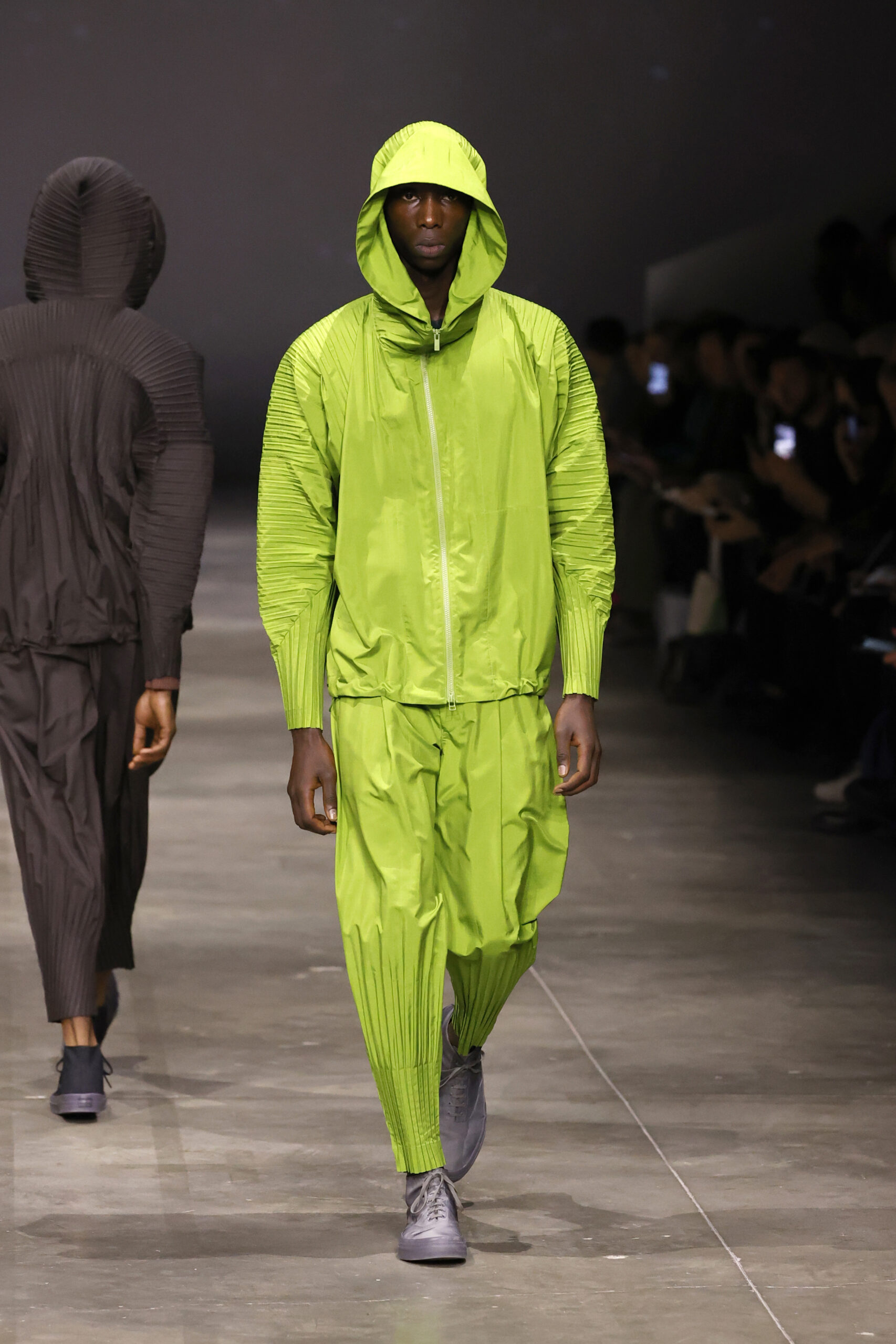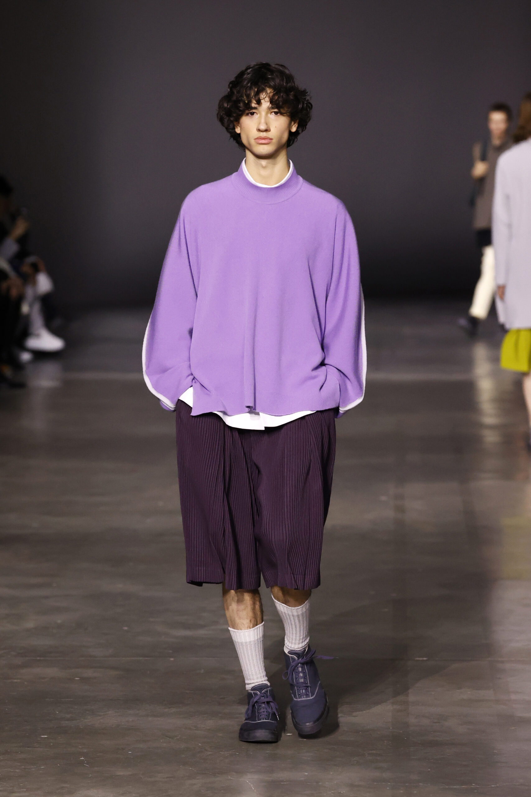 La nouvelle collection HOMME PLISSÉ ISSEY MIYAKE AUTUMN WINTER 2023/24, présentée lors du défilé Upon A Simplex au Palais de Tokyo à Paris le jeudi 19 janvier, se caractérise par une exploration de triangles et d’autres formes géométriques simples qui se transforment en créations aux formes complexes. Les formes obtenues sont intégrées aux vêtements, et les segments de ligne de leurs composants sont adaptés en plis dans les constructions de tissu, créant une collection de formations élaborées qui reflètent la simplicité de la géométrie de base.