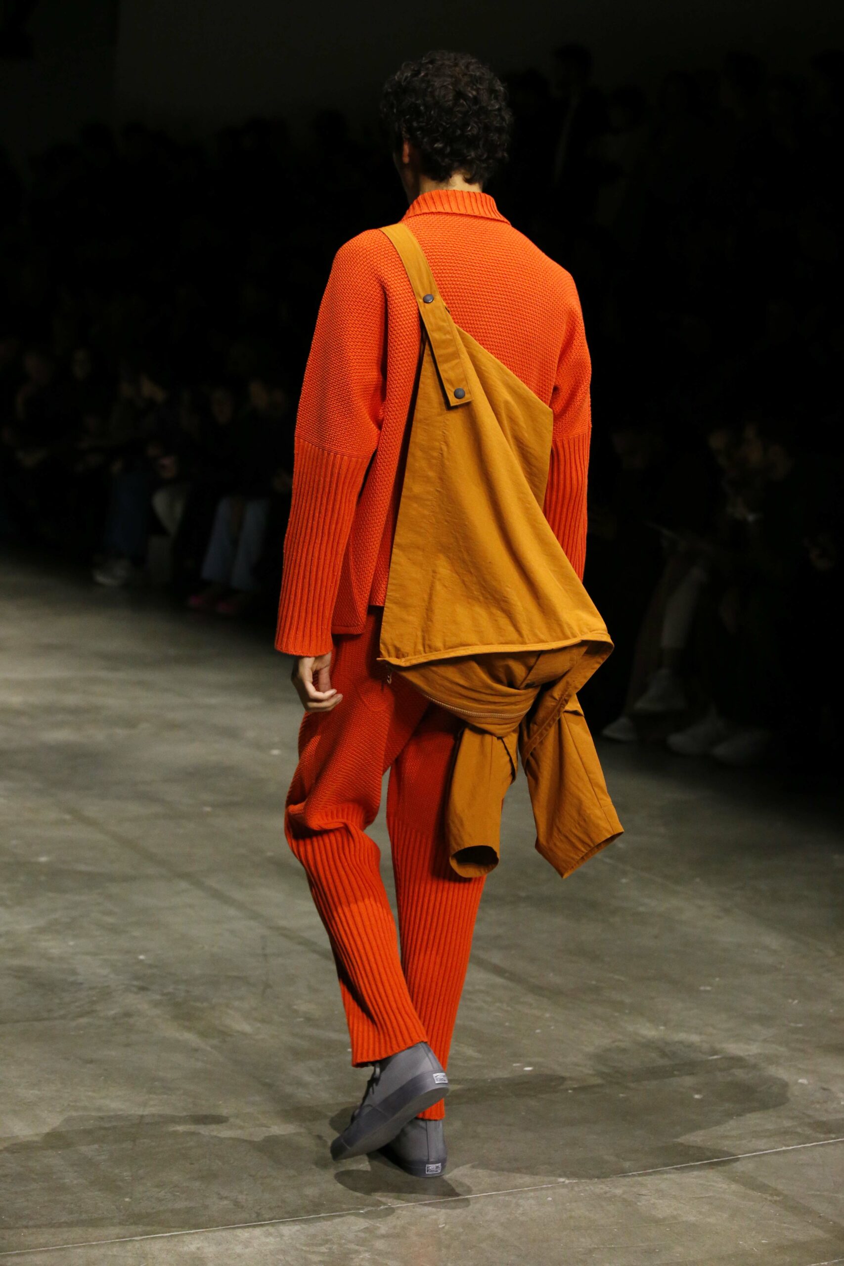 Le manteau TRUSS doit son nom à sa construction triangulaire, similaire à celles d’une structure en treillis. Fabriqué en nylon recyclé à fibres courtes pour donner au manteau une texture douce et cotonneuse, les cordons ajustables insérés dans les coutures transforment non seulement le manteau mais renforcent également la silhouette. La sangle à l’intérieur du manteau peut être tirée pour que le manteau puisse être porté sur l’épaule.