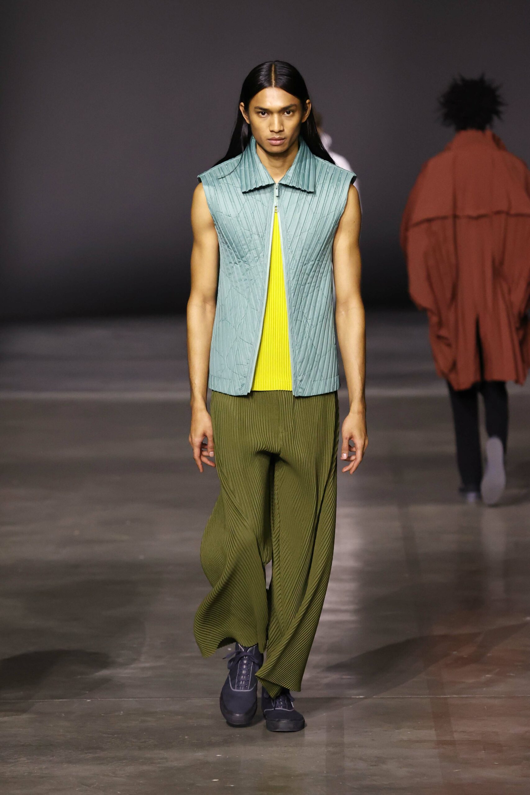 Les vêtements de la collection HOMME PLISSÉ ISSEY MIYAKE AUTOMNE HIVER 2023/24 Upon A Simplex sont également très fonctionnels. De nombreux vêtements sont dotés de poches et de détails pratiques, tels que des fermetures éclair et des boutons-pression, pour une utilisation facile et pratique au quotidien.Enfin, la collection met également l’accent sur l’utilisation de matériaux écologiques et durables. Le manteau TRUSS, par exemple, est fabriqué à partir de nylon recyclé à fibres courtes, tandis que les vêtements plissés sont réalisés à partir de polyester de haute densité. Cela reflète l’engagement de la marque en faveur d’une production éthique et respectueuse de l’environnement.