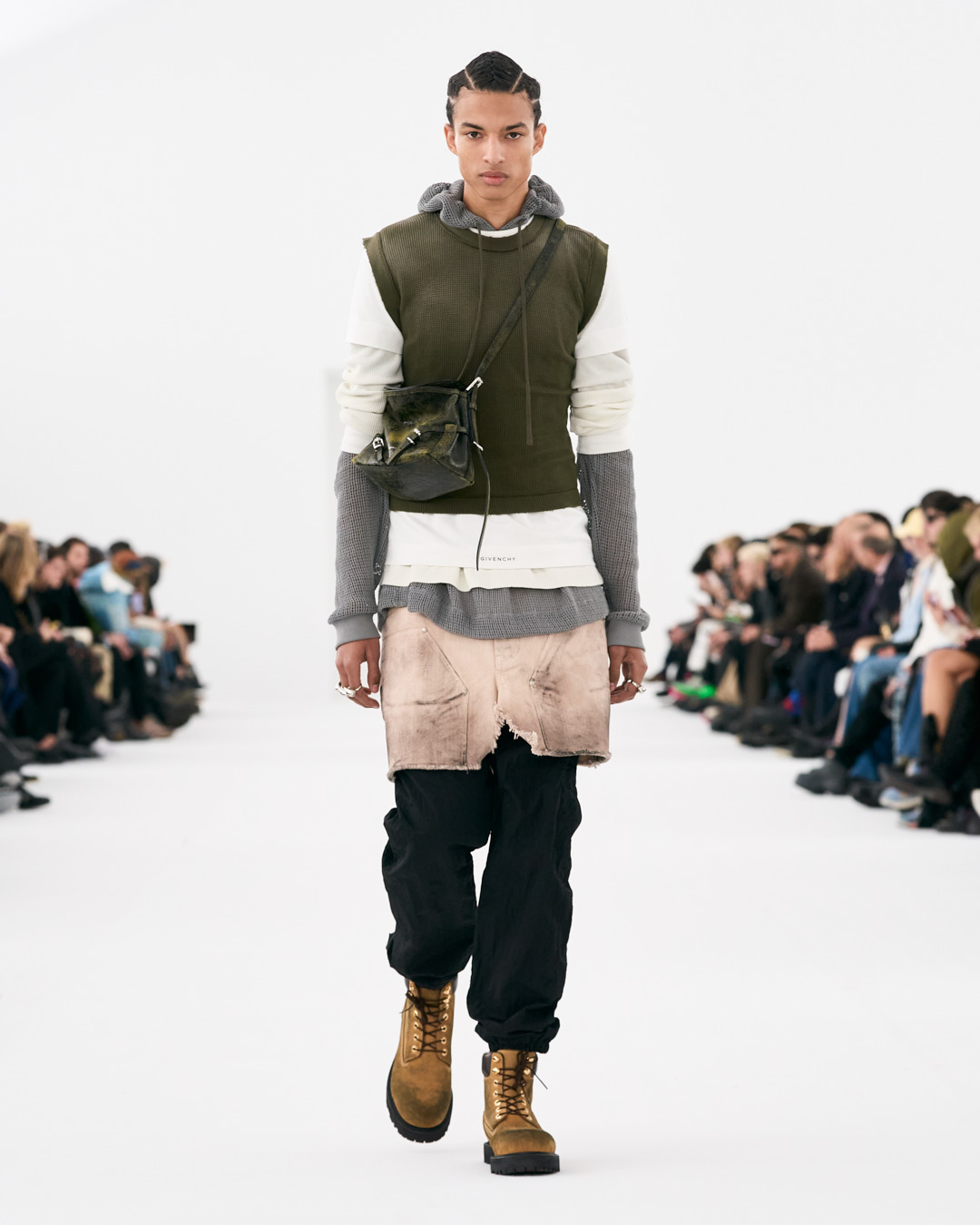 La maison Givenchy redonne une nouvelle valeur aux archétypes de la mode masculine à travers le regard des masculinités contemporaines. Dans la communauté axée sur les arts qui l’entoure, le directeur artistique Matthew M. Williams identifie une évolution instinctive des vertus vestimentaires reflétée dans sa propre relation avec les vêtements. C’est une appréciation des valeurs traditionnelles de la mode masculine revitalisées par l’impulsion de les adapter pour convenir à une mentalité moderne: une culture vestimentaire fondée sur des idées individuelles de formalité, de facilité et de confiance.