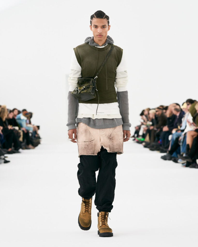 Givenchy réévalue et réévalue les archétypes de la mode masculine à travers les yeux des masculinités contemporaines, remettant en question les codes de la mode et proposant des looks déconstruits et réinventés. Cette collection est un mélange de techniques artisanales et de matériaux innovants, de pièces classiques revisitées et de détails exubérants, qui met en lumière la capacité de Givenchy à se réinventer tout en conservant son esthétique de luxe. Matthew M. Williams a réussi à créer une collection intemporelle qui reflète l’évolution de la mode et la nécessité de s’adapter aux changements de la société.