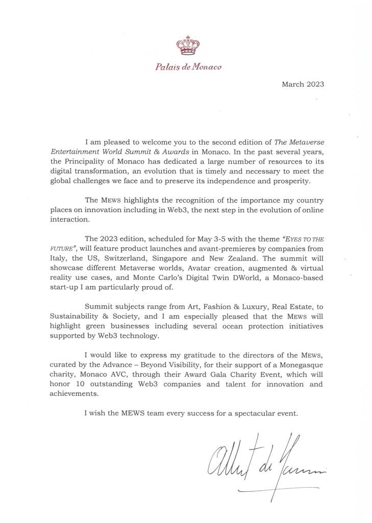 LUXSURE est fier de vous annoncer que nous avons été sélectionnés pour être partenaire média de THE MEWS, l’événement Metaverse le plus prestigieux au monde, placé sous le Haut Patronage de S.A.S le Prince Albert II, Chef d’Etat de la Principauté de Monaco.