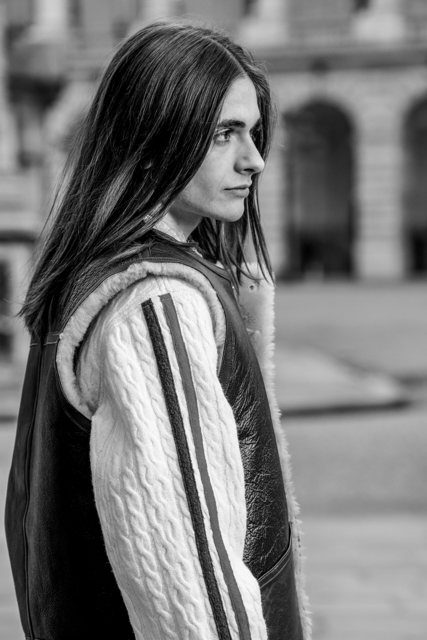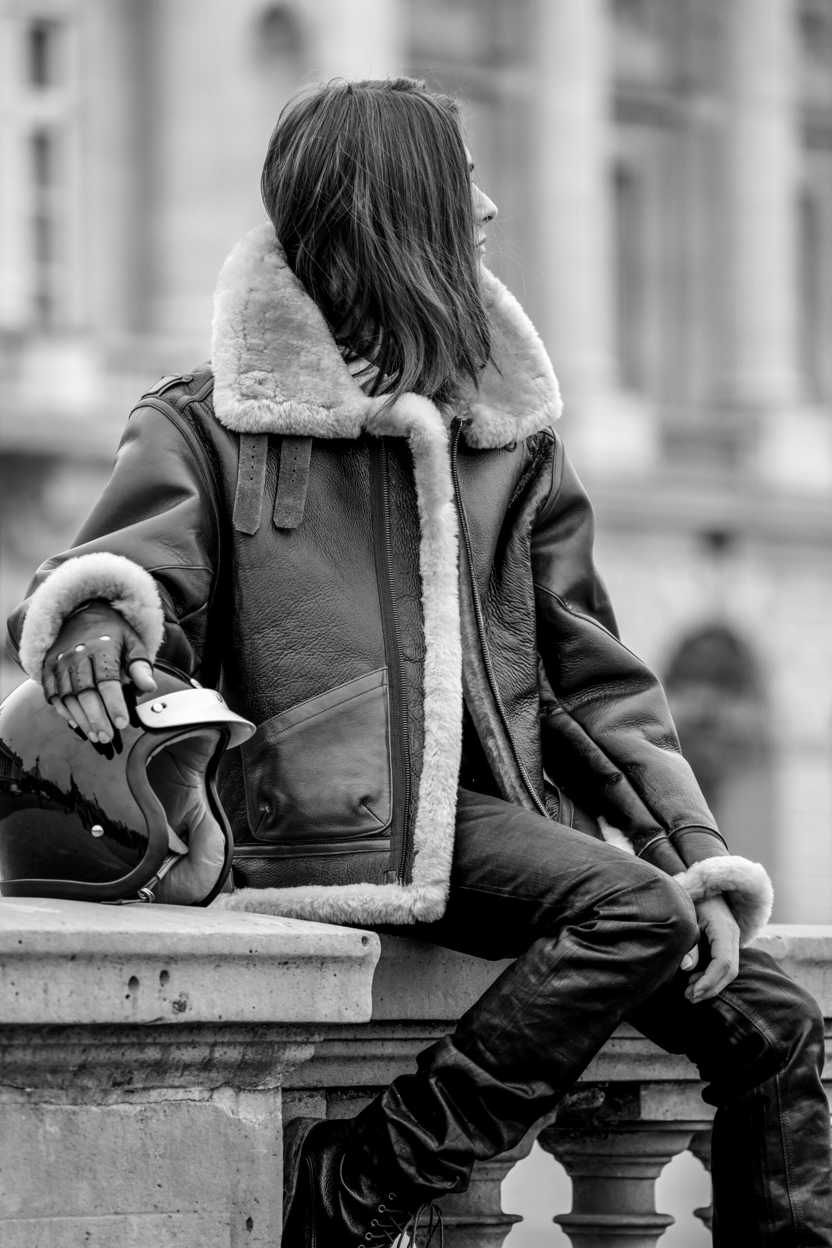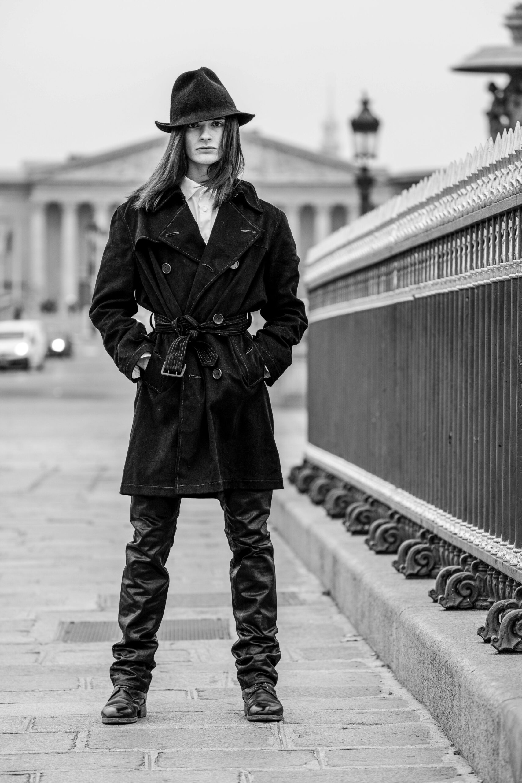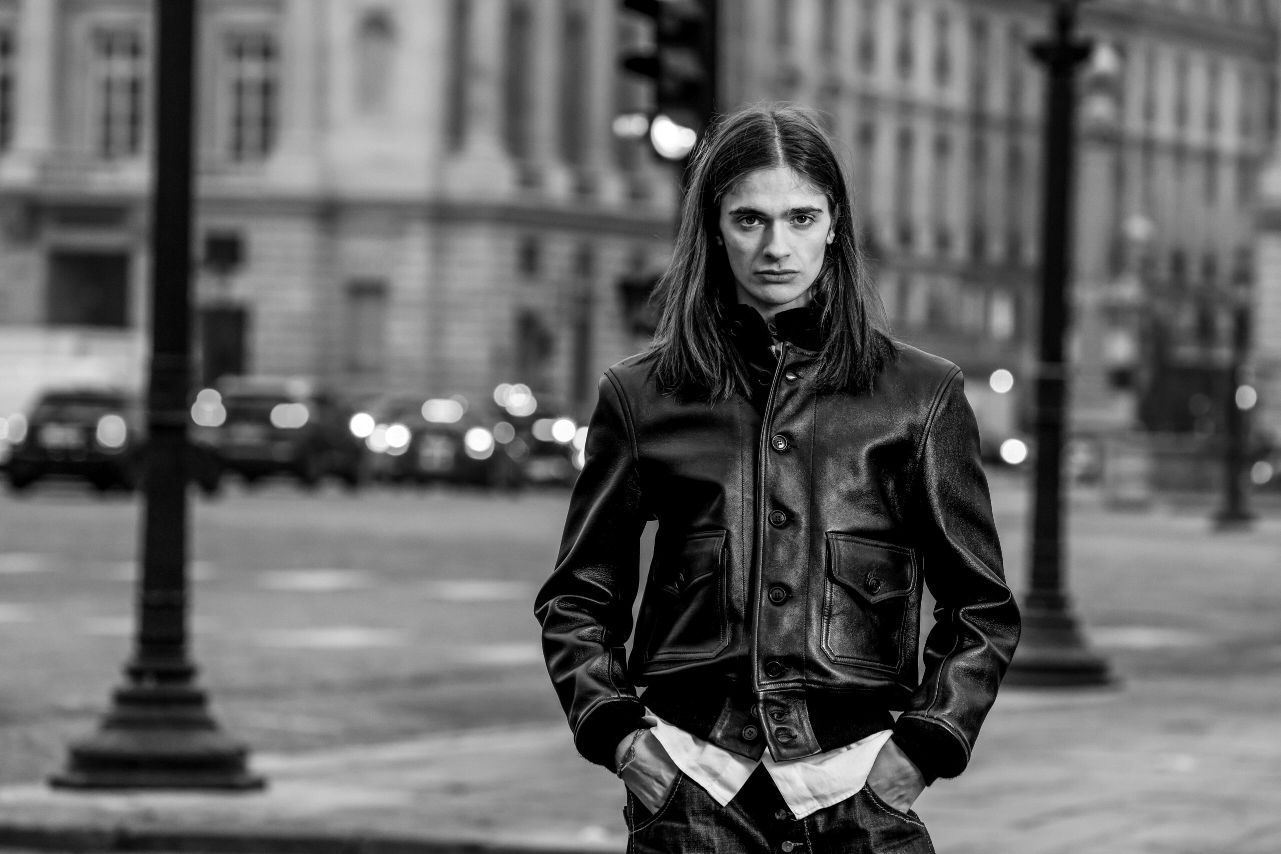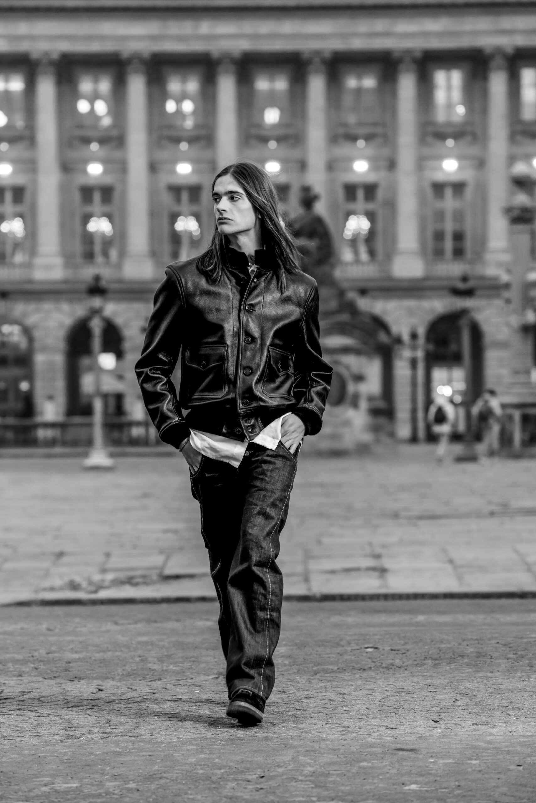 La place de la Concorde, à proximité du showroom parisien de la marque, sert de cadre idéal pour mettre en lumière cette nouvelle interprétation des pièces iconiques de CHAPAL. Gabriel, grâce à sa sensibilité, se fond dans cet univers et adopte ces blousons virils avec finesse et légèreté. La robustesse devient douceur et confort, tandis que l’aviateur se transforme en une délicate figure romantique.