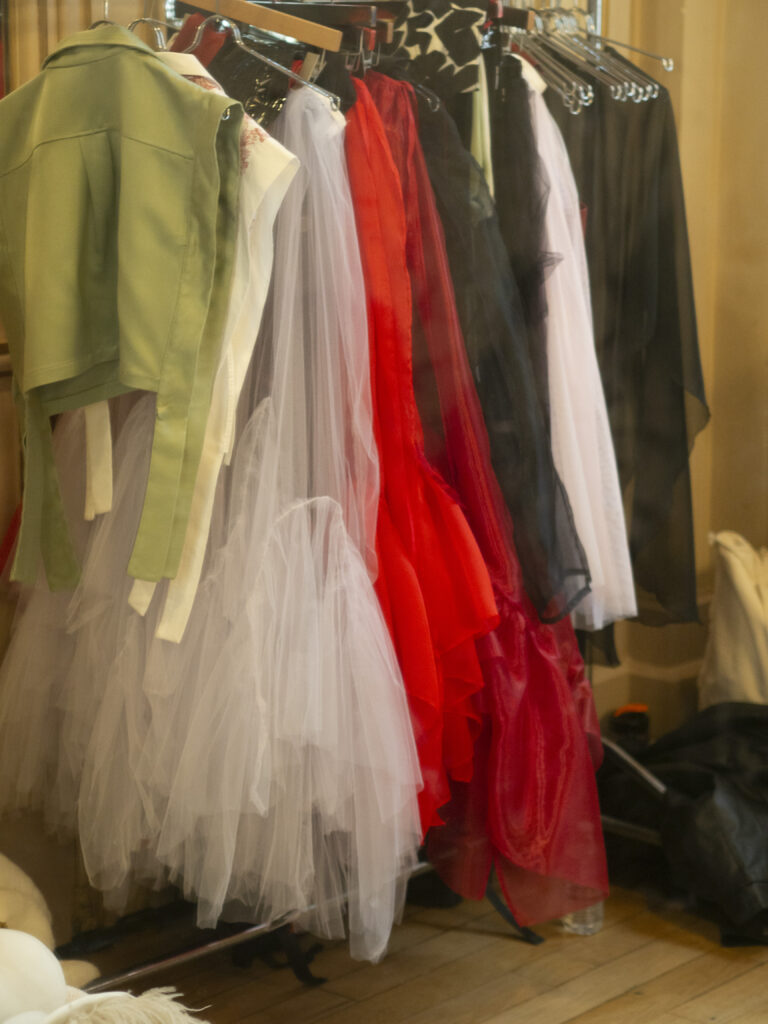 Enfin, Aline Monnier, qui a lancé sa maison éco-responsable en septembre 2022, a présenté une collection inspirée du mouvement punk des années 1970, avec une nette dominance des couleurs noire et rouge et l’utilisation du cuir, mais également avec des touches de tulle pour apporter de la légèreté et de la lumière à ses créations.