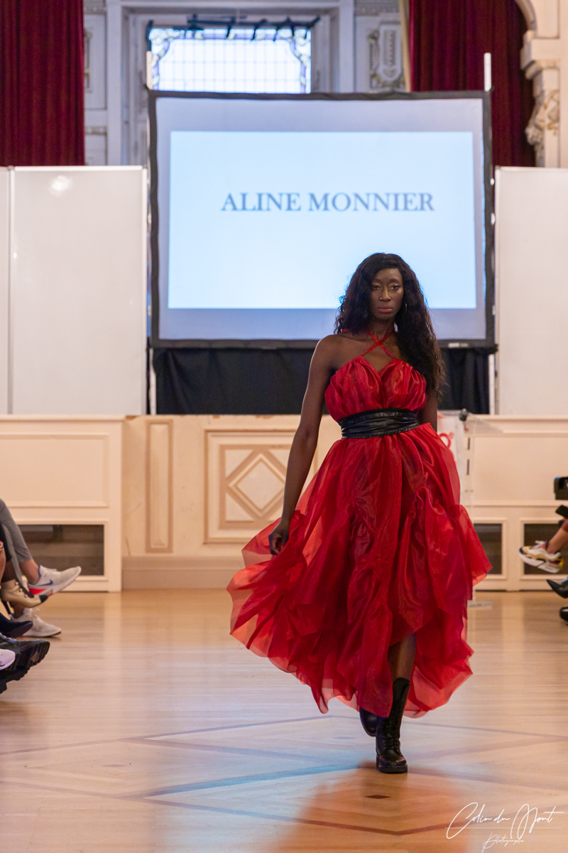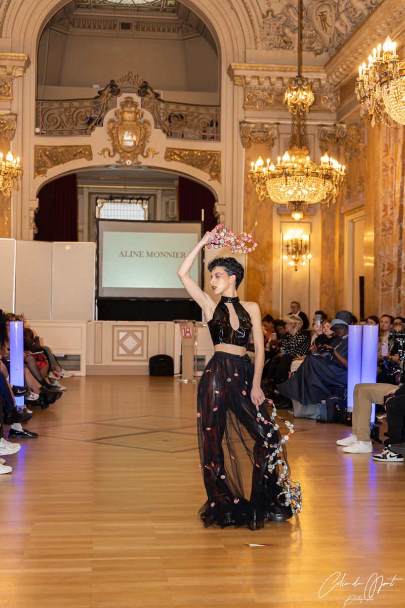Enfin, Aline Monnier, qui a lancé sa maison éco-responsable en septembre 2022, a présenté une collection inspirée du mouvement punk des années 1970, avec une nette dominance des couleurs noire et rouge et l’utilisation du cuir, mais également avec des touches de tulle pour apporter de la légèreté et de la lumière à ses créations.