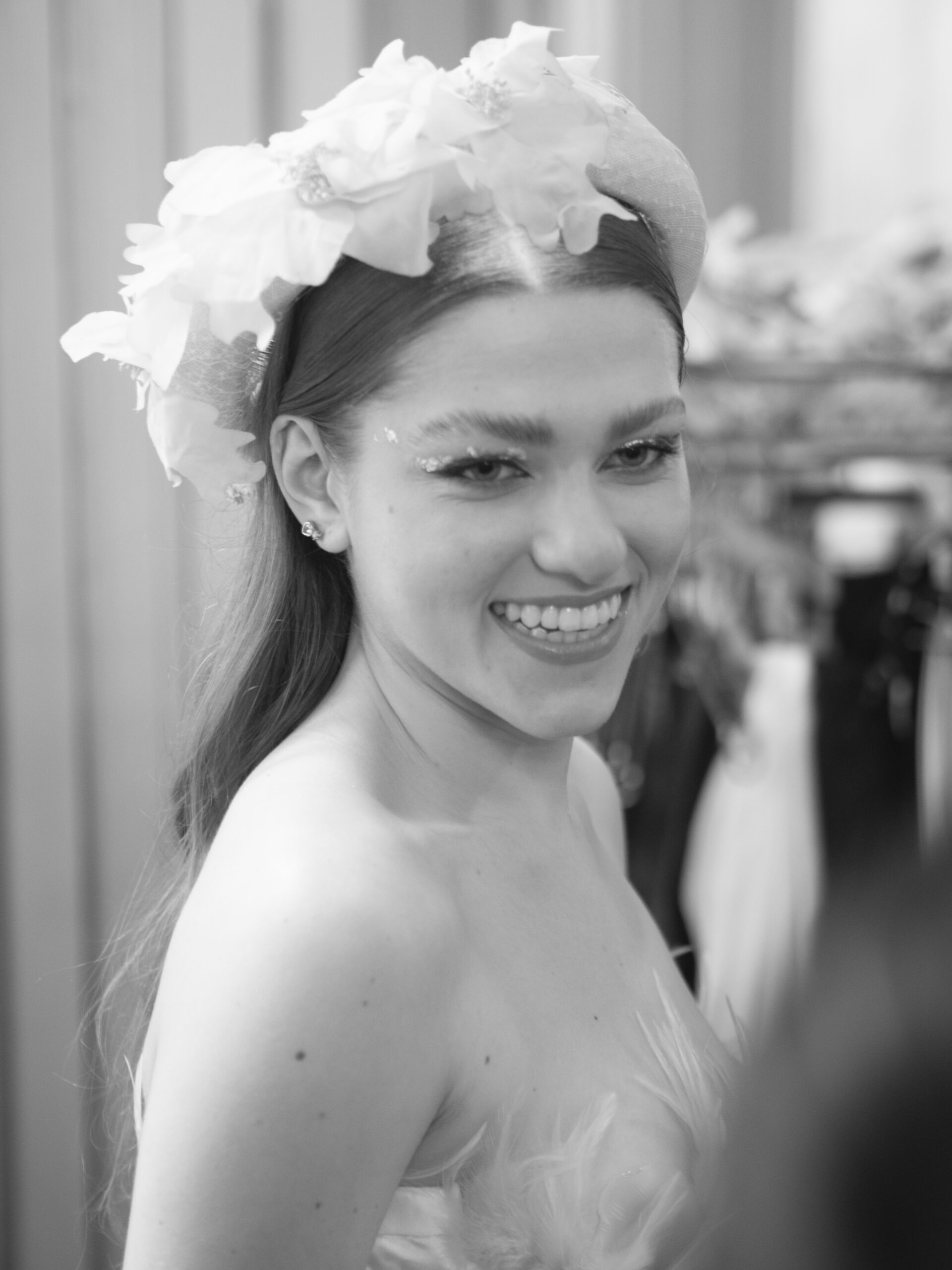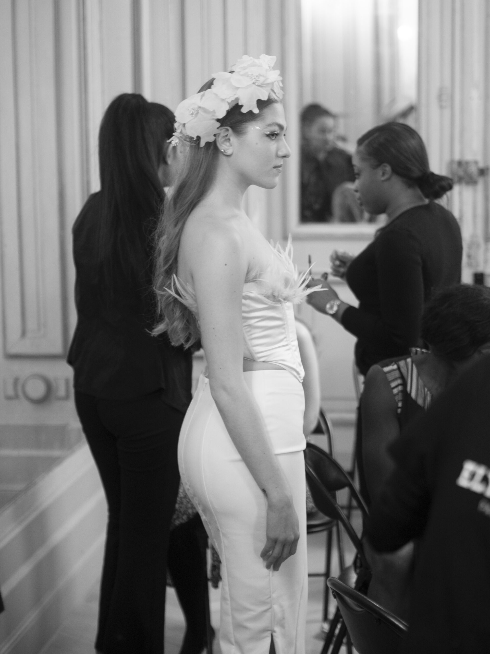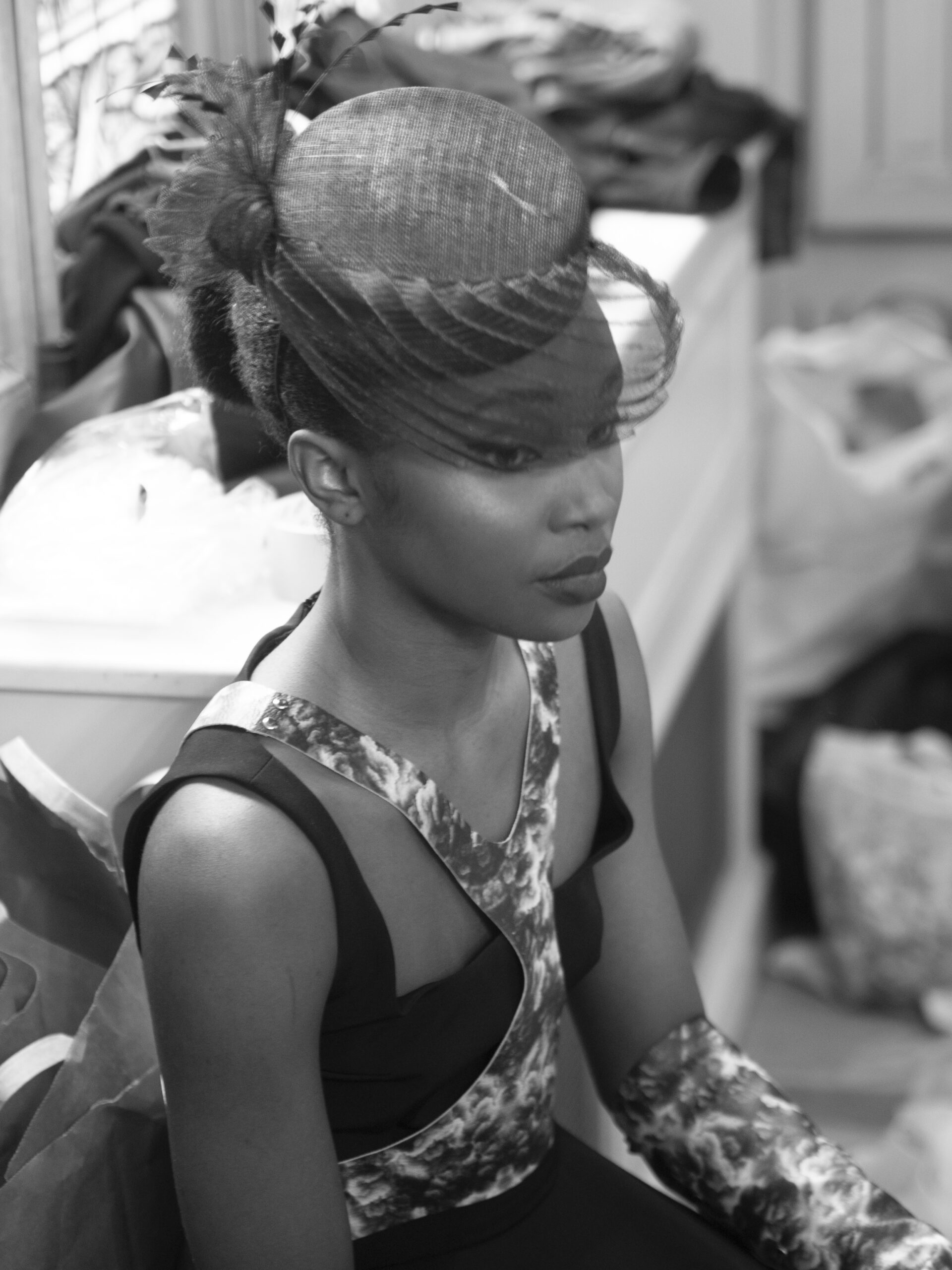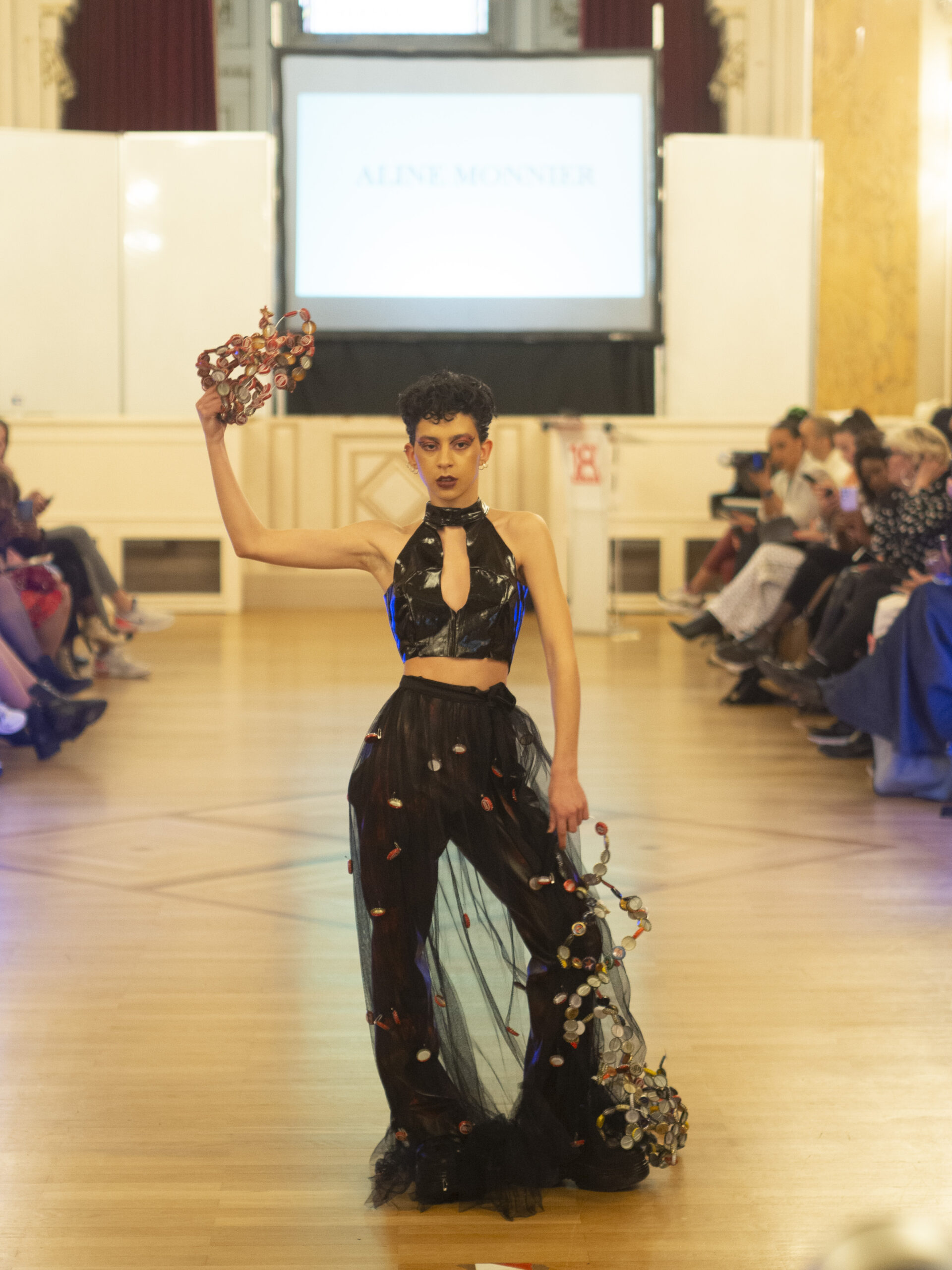 Myriam Rahali, créatrice haute couture sur-mesure, a présenté sa collection « Renaissance », inspirée de la mode des années 50 et 60. Elle est également une sportive de haut niveau en Jujitsu et aime jouer avec les matières pour travailler les formes et les contrastes.