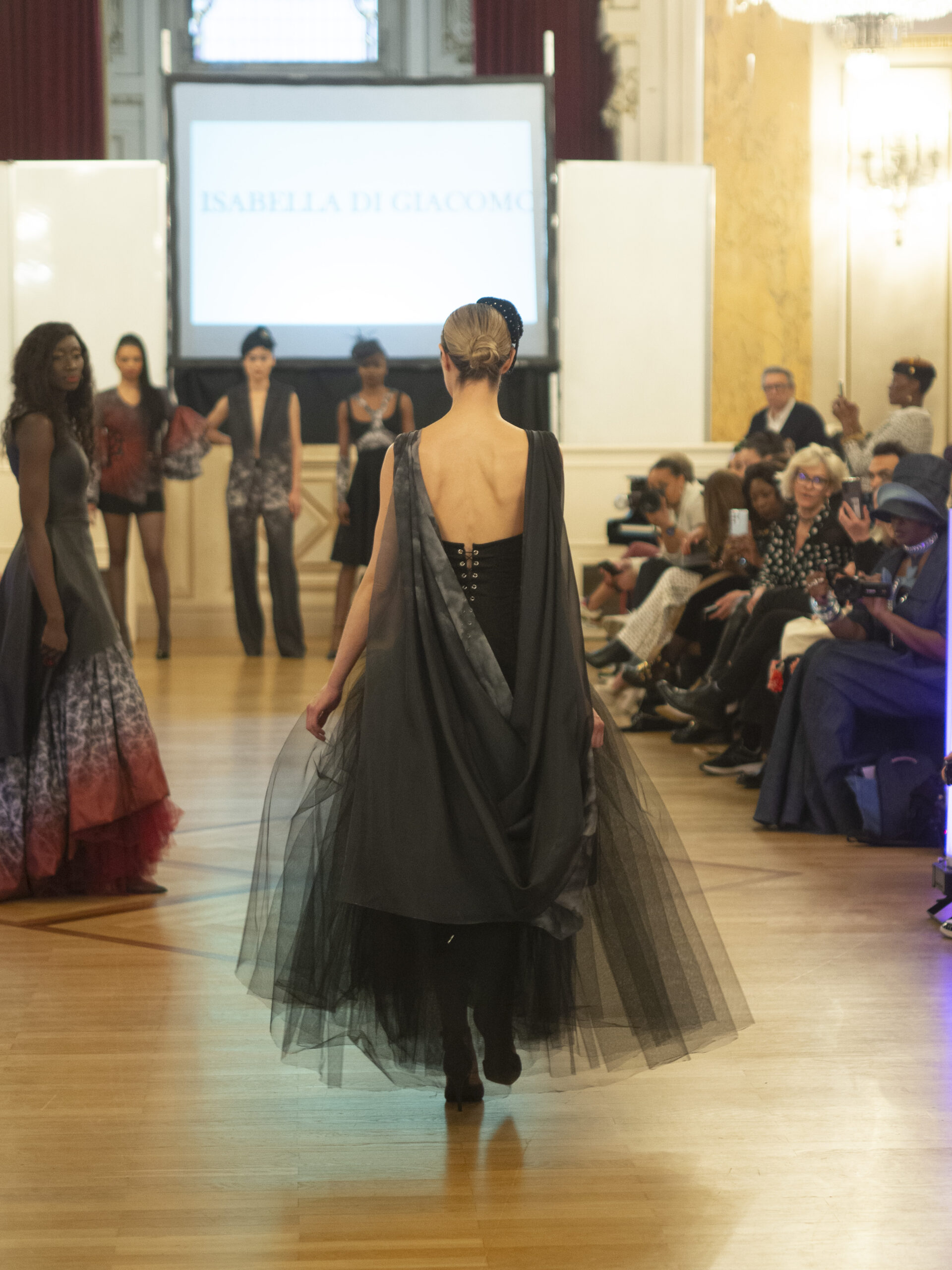 La créatrice de mode Isabella Di Giacomo a également présenté sa collection « Rift and Eruption », une ode aux émotions féminines. Elle a étudié la mode en Australie avant de s’installer à Paris et de se lancer dans la création de ses propres collections. Elle a participé à la Fashion Week de New York et a présenté une performance d’art au Miami Art Basel.