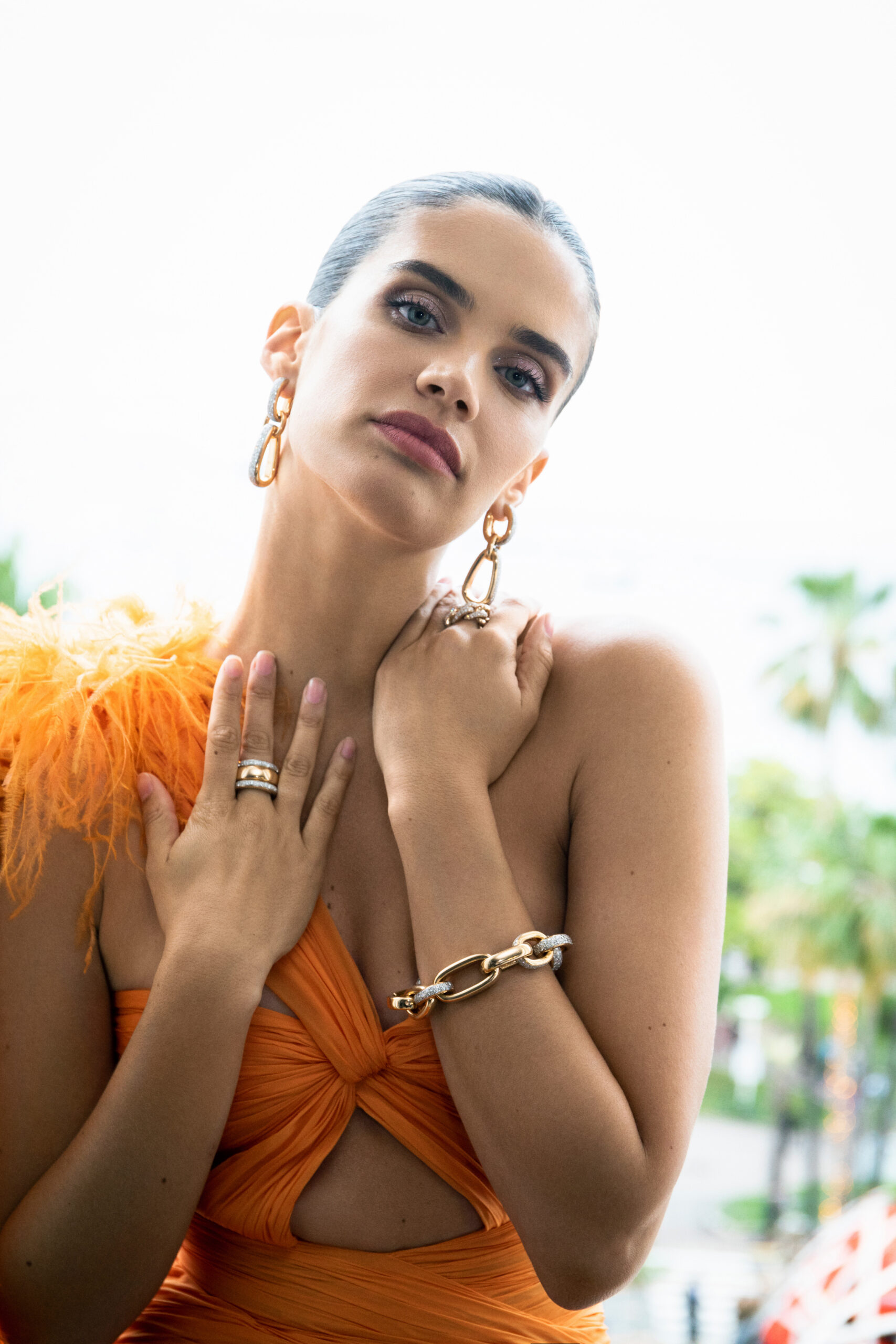 Sara Sampaio and Grace Elizabeth wear Pomellato Jewelry during the 76th Cannes Film Festival.