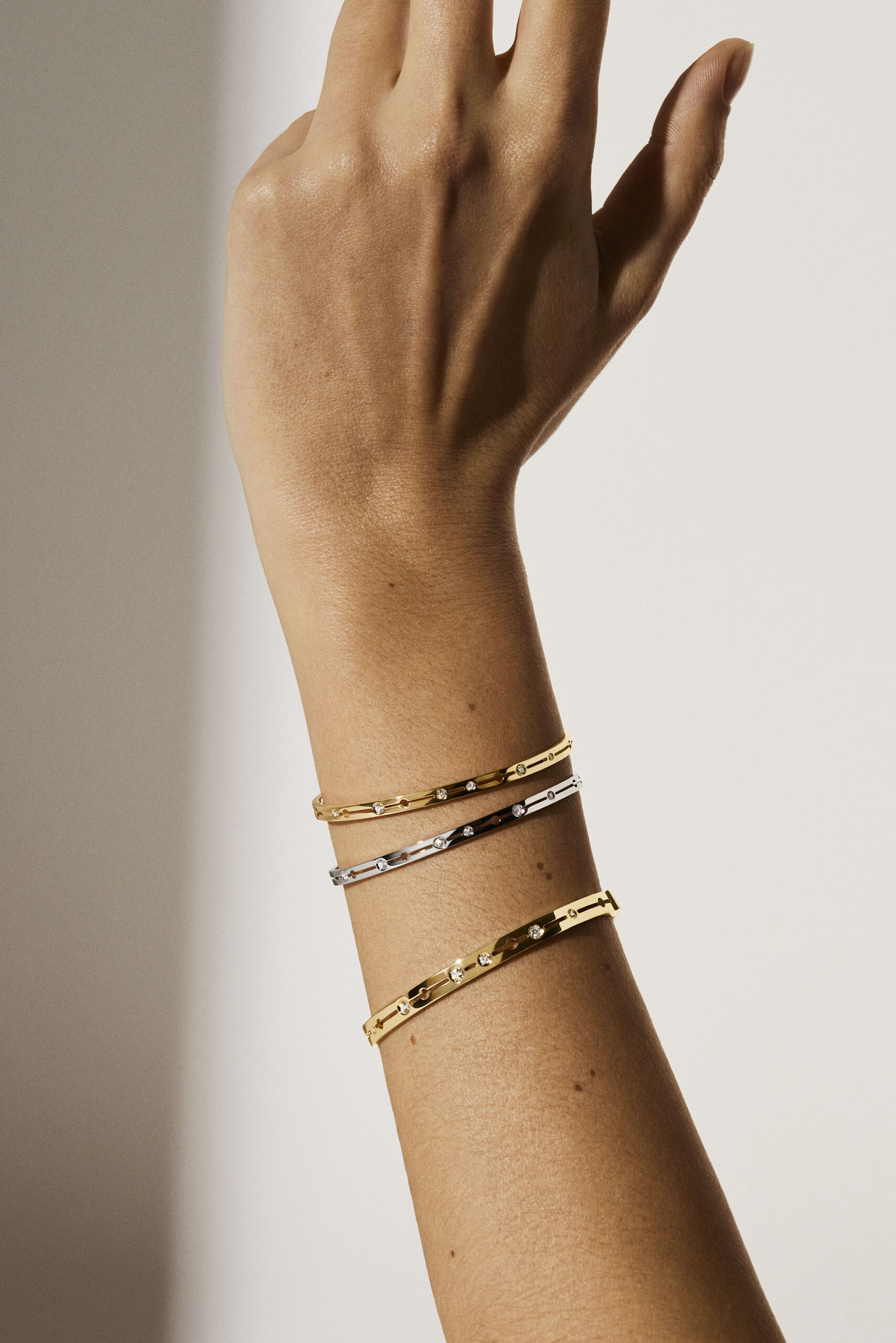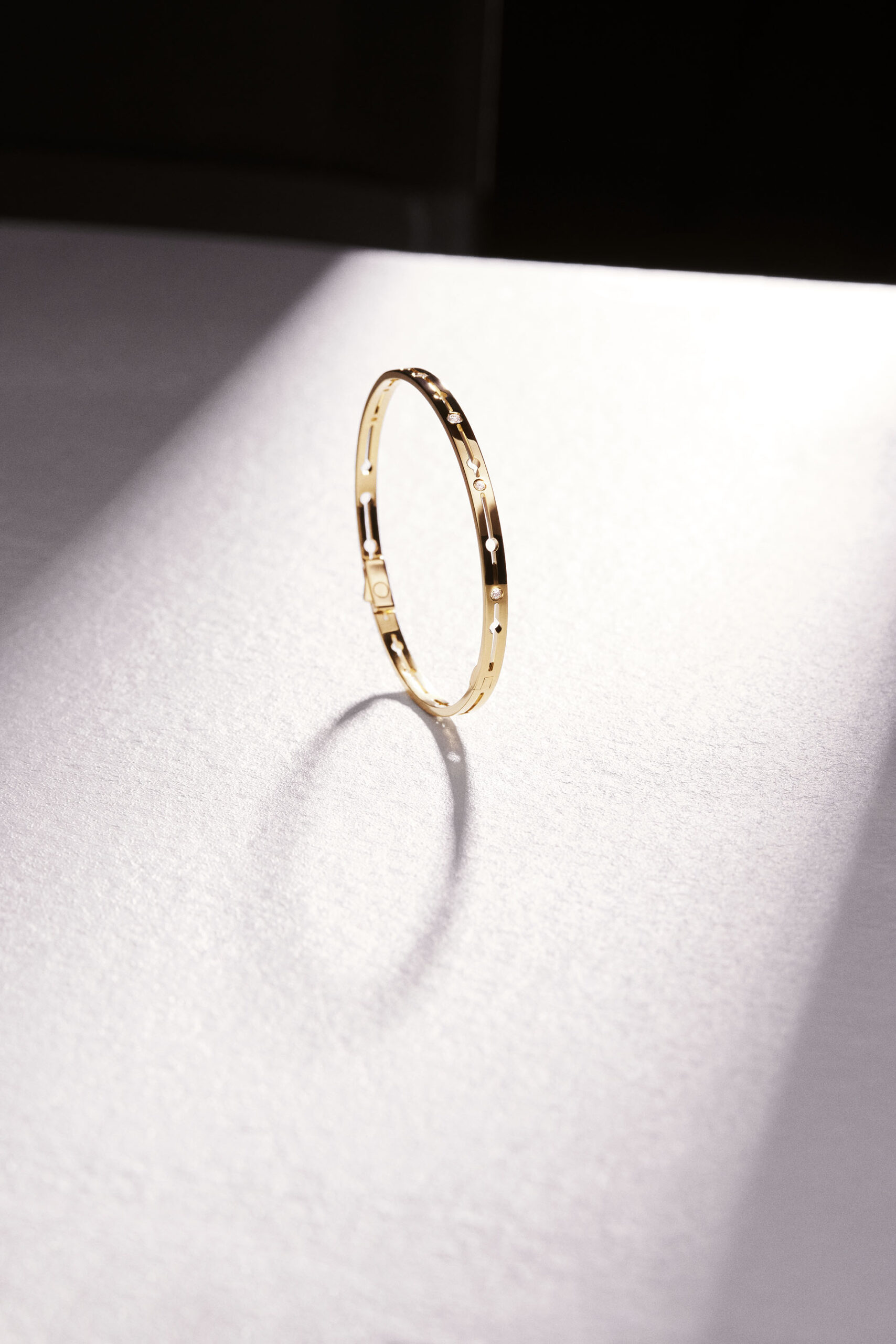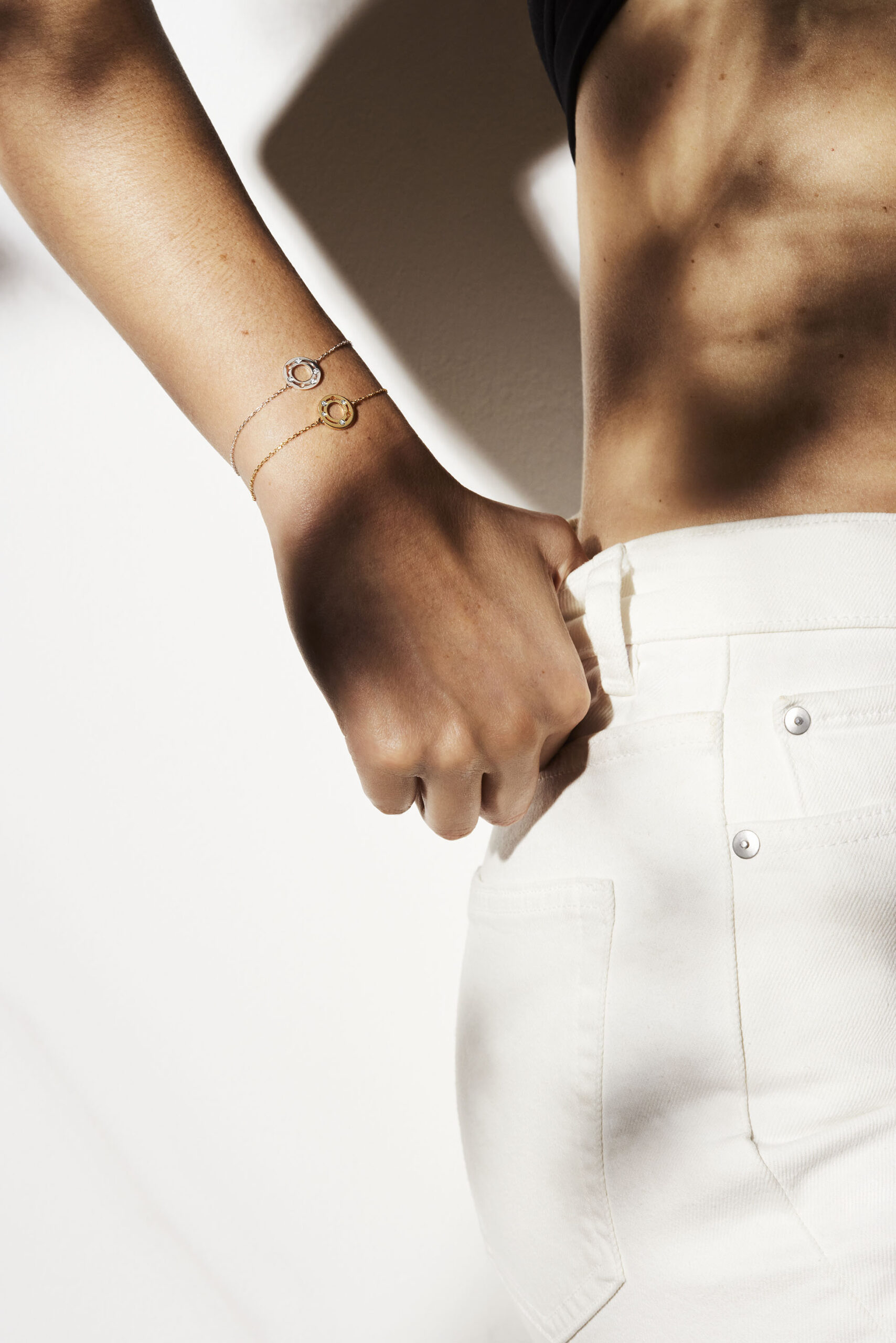 Au poignet, des bracelets petit modèle sont proposés, parfaits pour être stackés avec des joncs Serrure ou un bracelet sur chaîne Menottes dinh van. Les bracelets Pulse petit modèle en or jaune et diamants et en or blanc et diamants sont disponibles au prix de 4 600€.