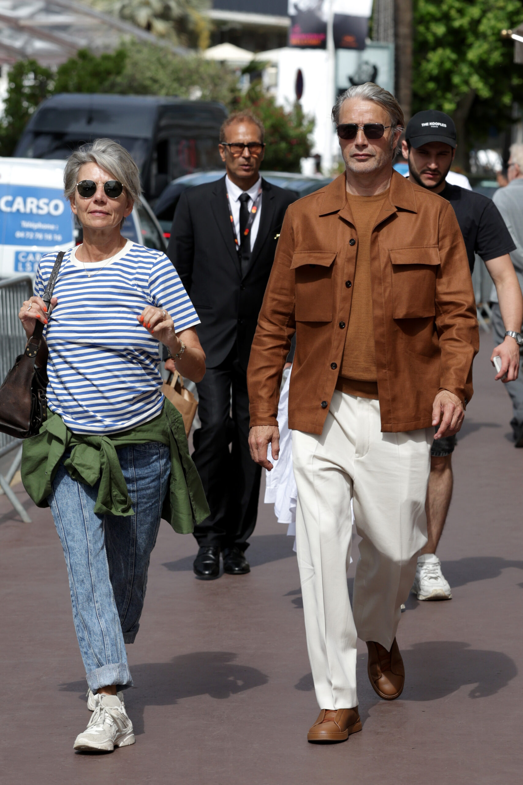 CANNES, FRANCE – MAY 17: Mads Mikkelsen and his wife Hanne Jacobsen are seen during the 76th Cannes film festival on May 17, 2023 in Cannes, France. (Photo by Pascal Le Segretain/Getty Images)