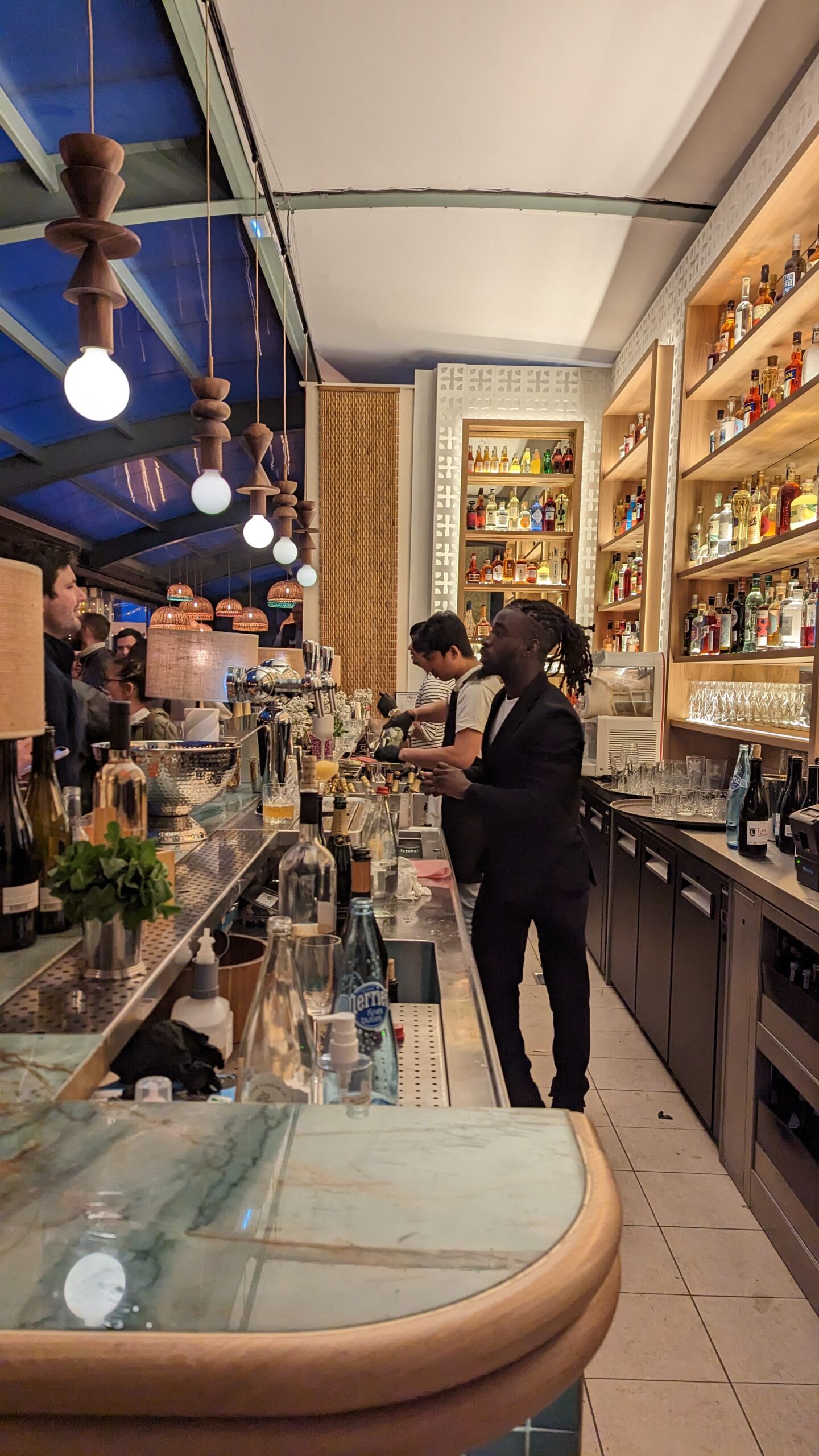 La décoration a été revue par le studio Adjamée, mêlant les codes du bistrot et de l’esprit des pays du Sud, pour recréer l’atmosphère d’une villa sur la côte. Polpo propose également une plage de sable fin avec des transats colorés et des bateaux électriques pour des balades sur la Seine, grâce à une association avec Marin d’Eau Douce.