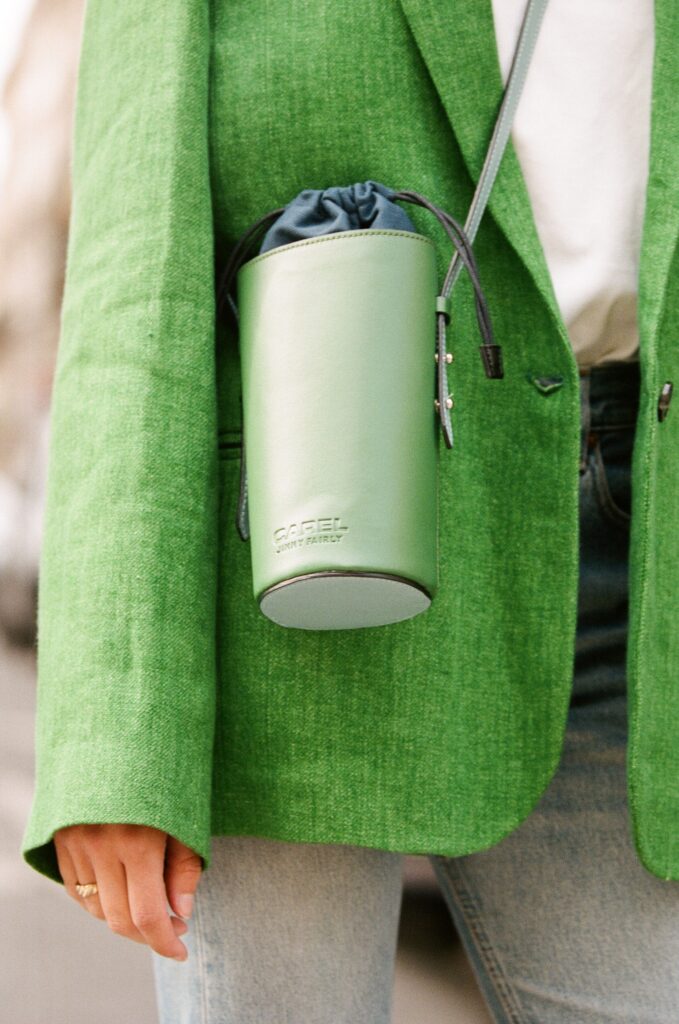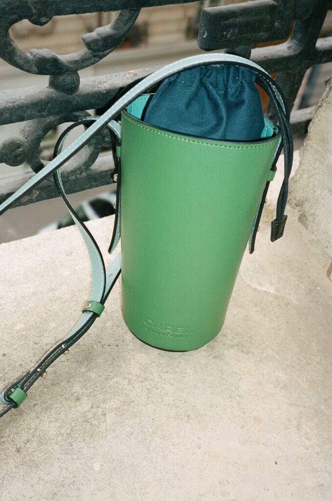Le bucket bag LE FAIRLY est quant à lui fabriqué en Italie à base d’AppleSkin et est disponible en trois coloris. De taille mini, il est parfait pour transporter les essentiels de tous les jours, que ce soit en terrasse ou à la plage.