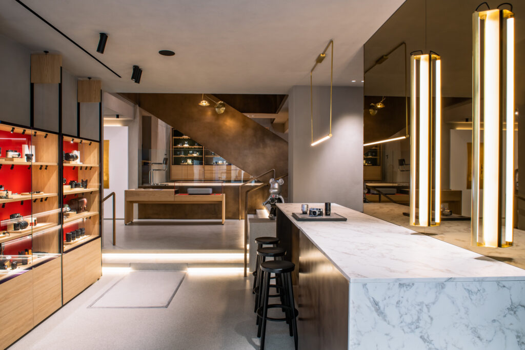 Le nouveau Leica Store a été conçu par le cabinet d’architecture et de design d’intérieur allemand Holzrausch, spécialisé dans la création de projets innovants et durables. Le Studio de Design mobilier OHA (Office Heinzemann Ayadi), un studio de design de mobilier basé à Paris, a également participé à la création de ce nouvel espace de vente en créant des meubles et des objets uniques en utilisant des matériaux durables et en accordant une attention particulière aux détails et à l’ergonomie.