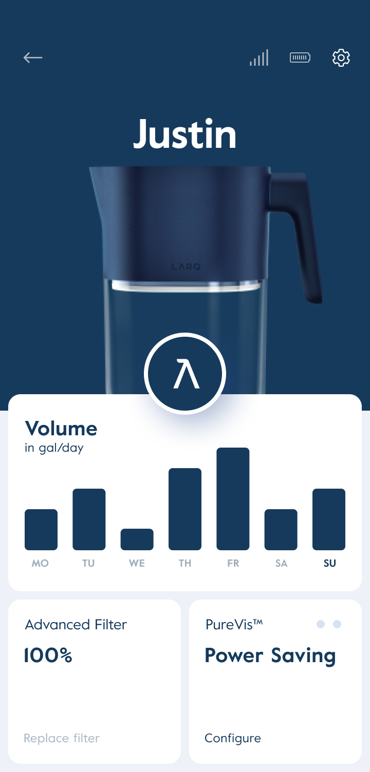 Le LARQ Pitcher est non seulement innovant mais également durable, remplaçant plus de 450 bouteilles d’eau en plastique standard à usage unique. La technologie PureVisTM UV-C Led purifie l’eau en détruisant les biocontaminants au niveau moléculaire, améliorant ainsi la santé et le goût de votre eau rapidement et facilement. Les filtres LARQ durent jusqu’à 50% plus longtemps que la moyenne, filtrant 227 litres d’eau.