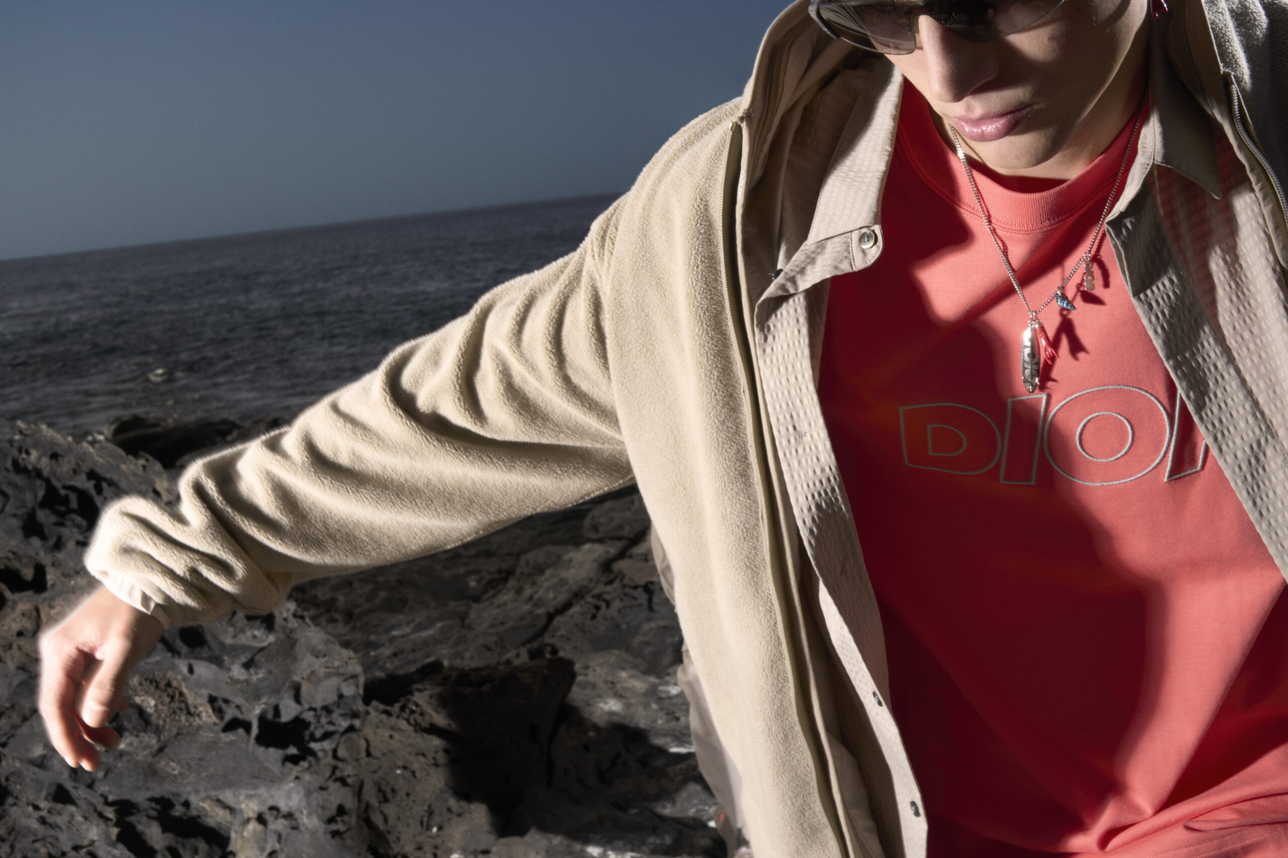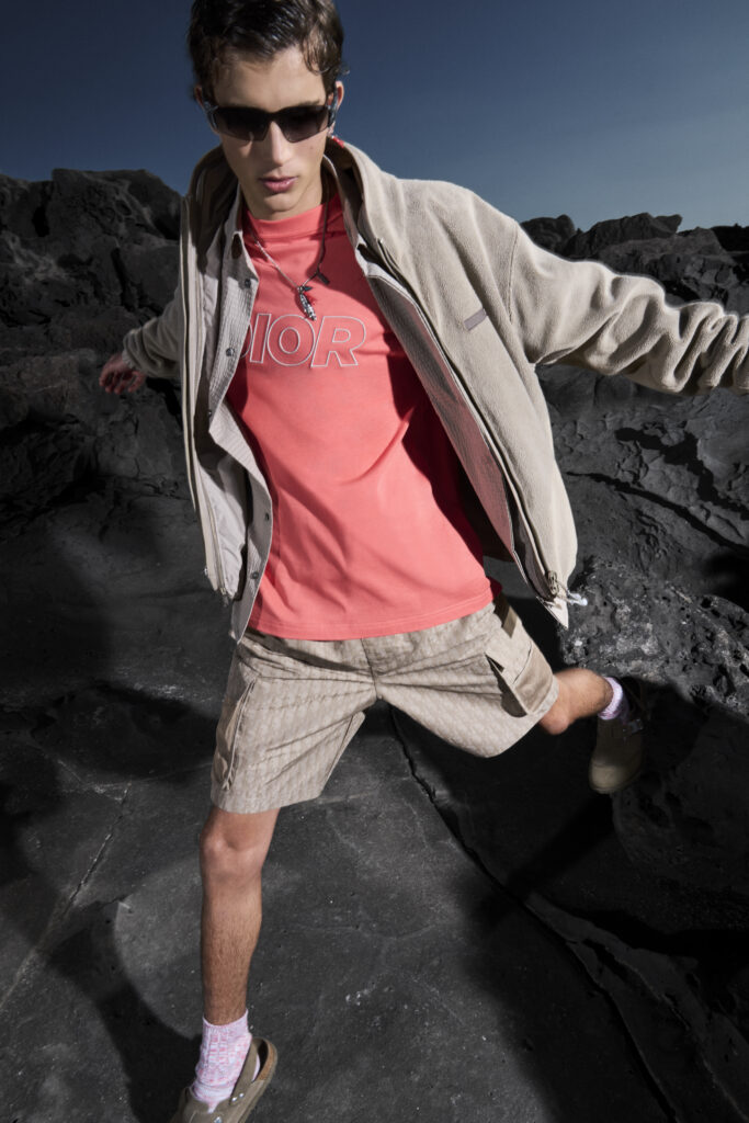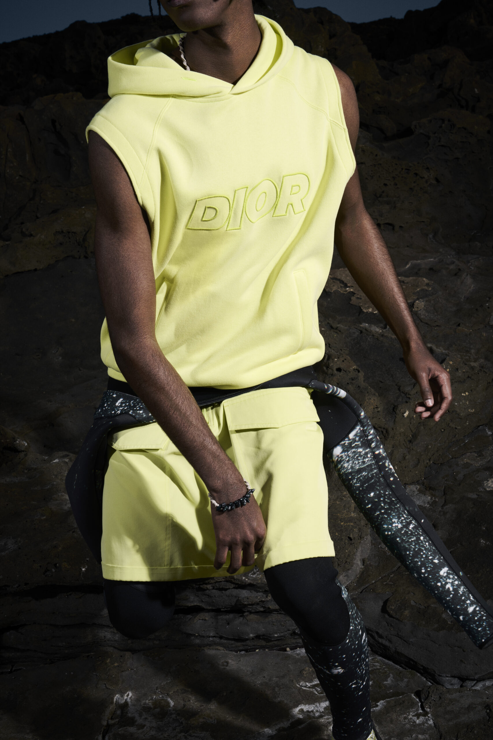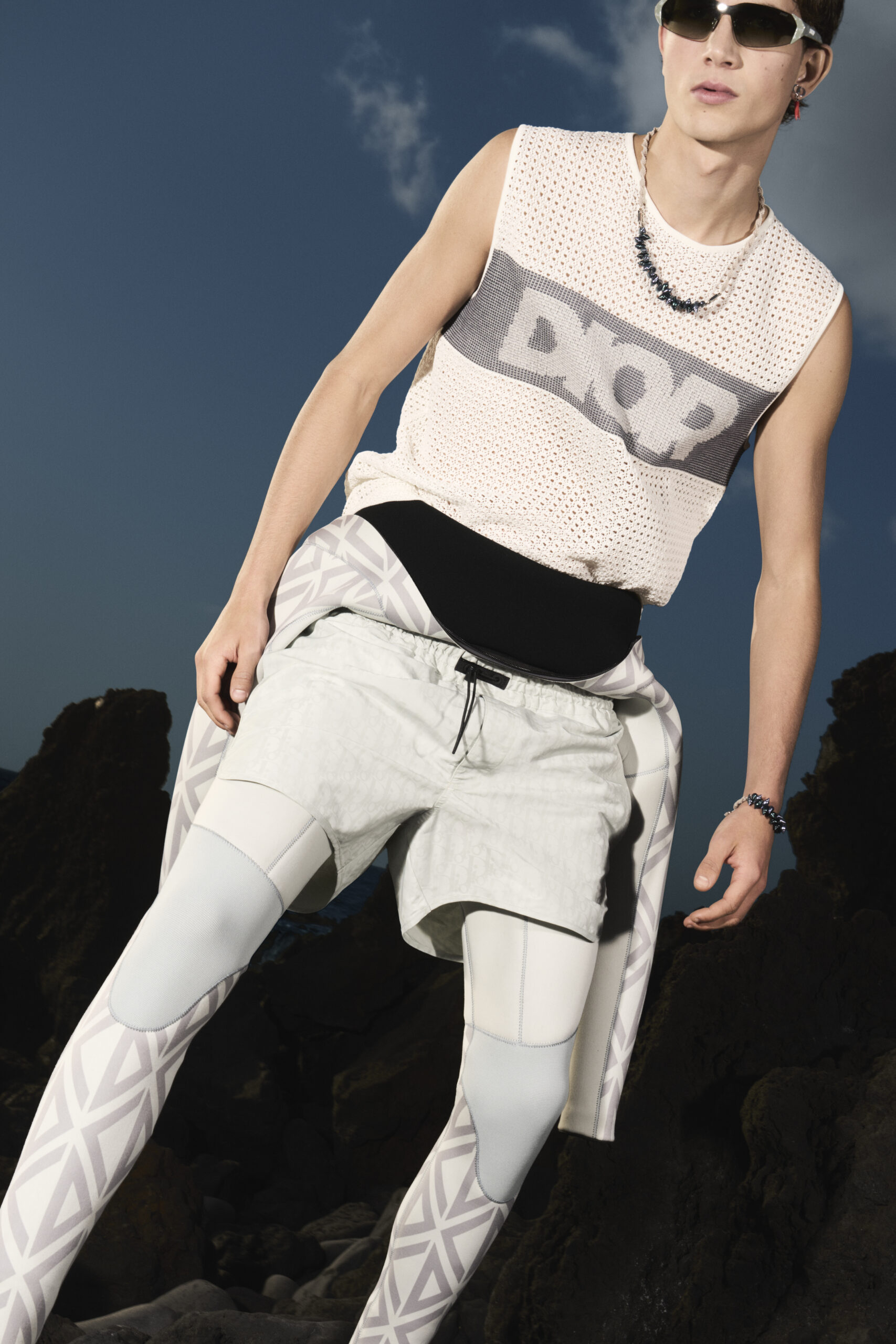 Le directeur artistique des lignes masculines de Dior, Kim Jones, a puisé son inspiration dans la passion du couturier-fondateur pour les fleurs, les jardins et la mer. Partageant cet amour pour la beauté du monde aquatique, il a souhaité concevoir une collection utilisant des matériaux respectueux de l’environnement. Ainsi, 96% des tissus utilisés dans cette collection sont recyclés, témoignant de l’engagement de Dior envers la durabilité.