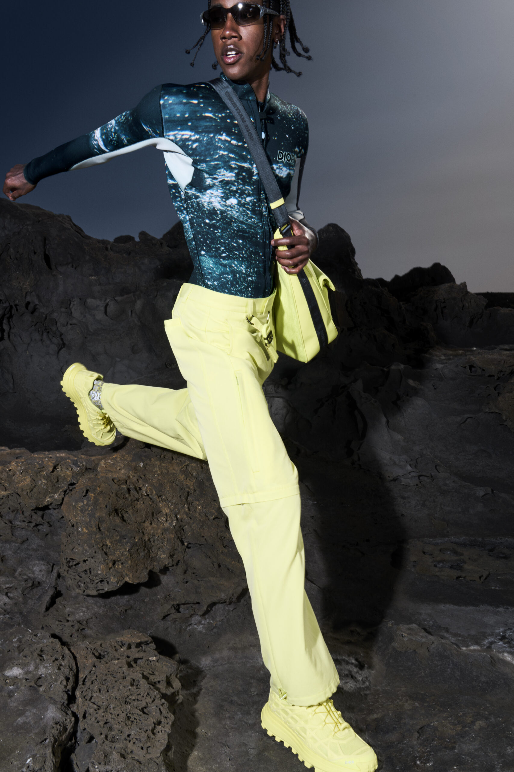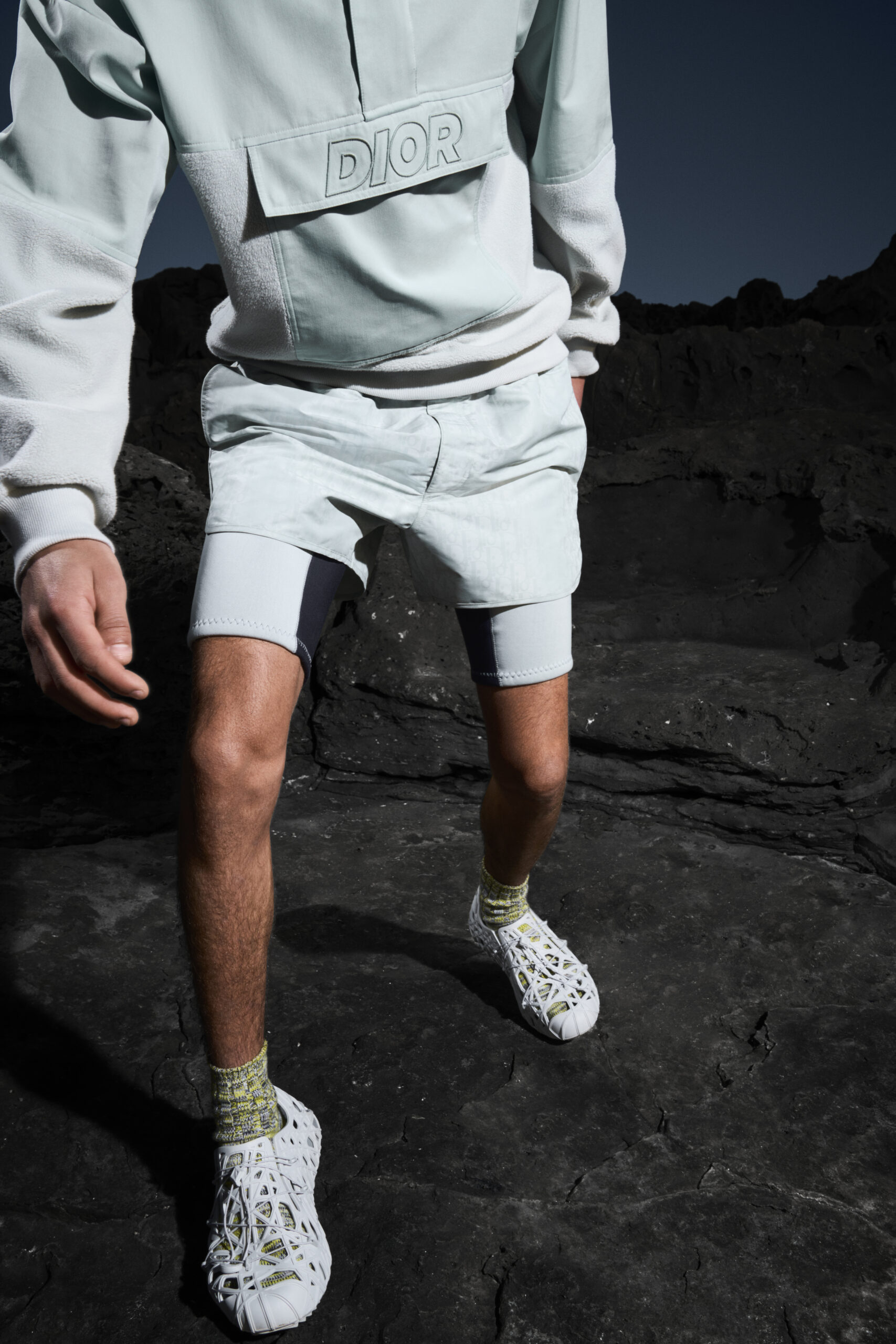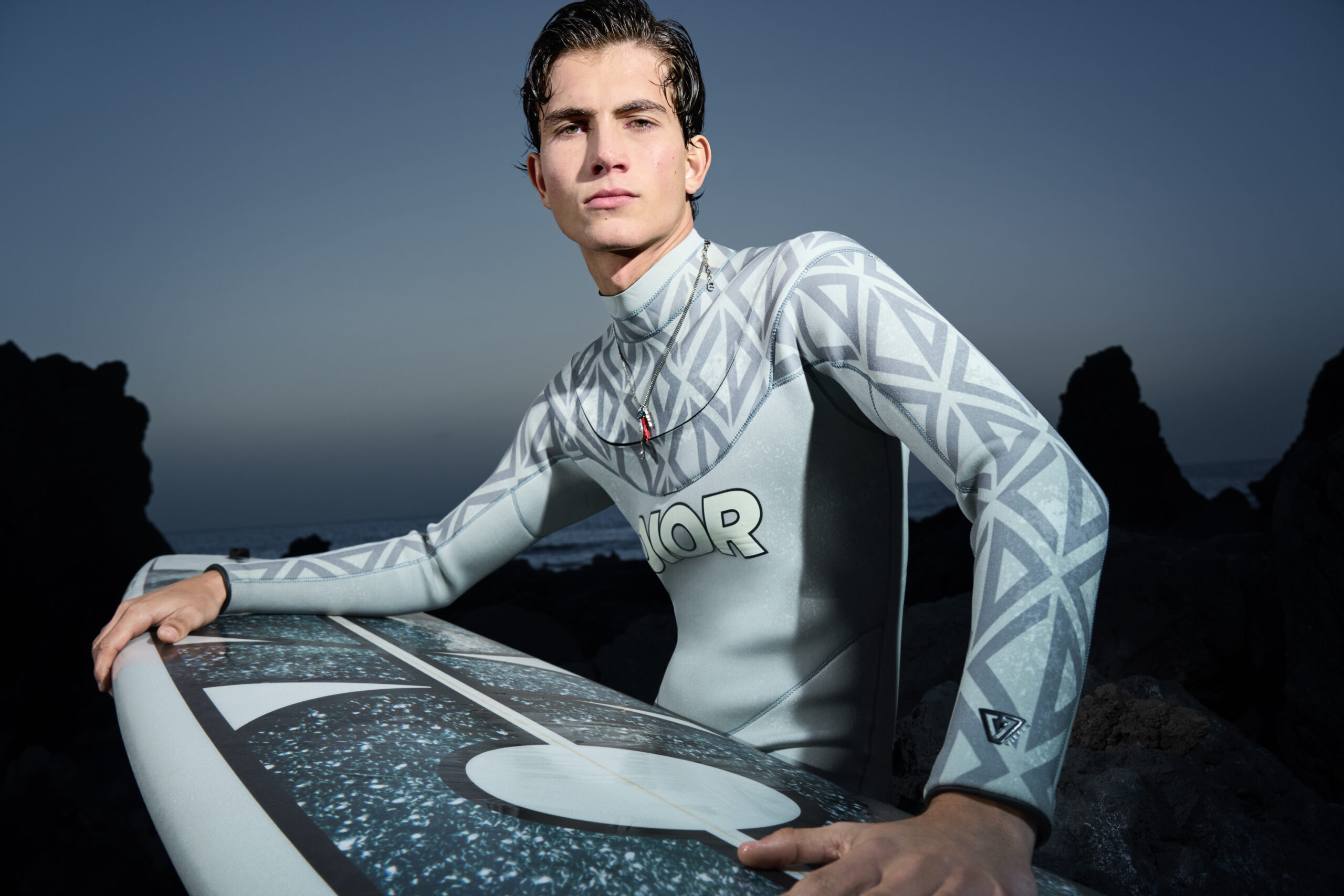 Le directeur artistique des lignes masculines de Dior, Kim Jones, a puisé son inspiration dans la passion du couturier-fondateur pour les fleurs, les jardins et la mer. Partageant cet amour pour la beauté du monde aquatique, il a souhaité concevoir une collection utilisant des matériaux respectueux de l’environnement. Ainsi, 96% des tissus utilisés dans cette collection sont recyclés, témoignant de l’engagement de Dior envers la durabilité.