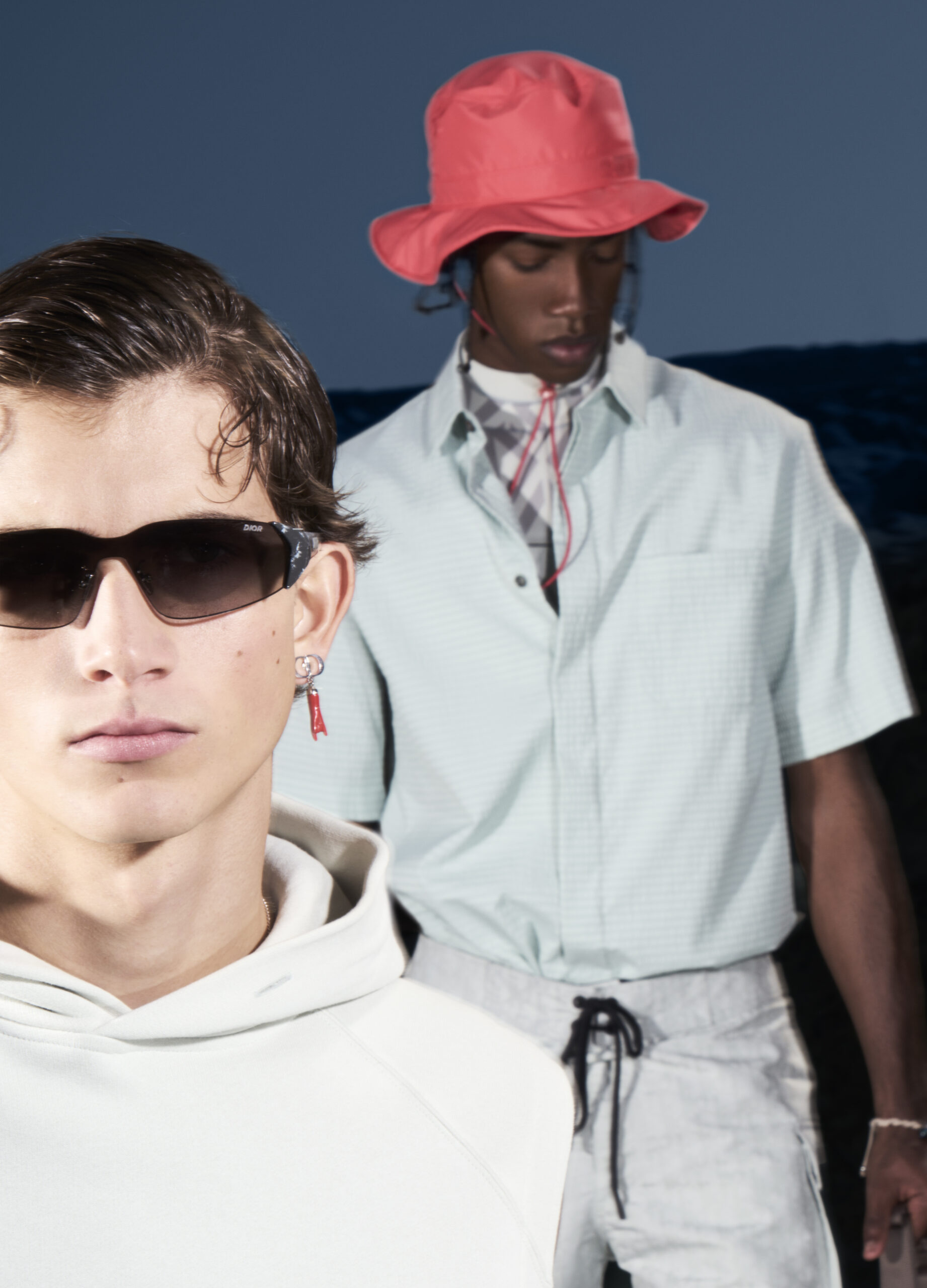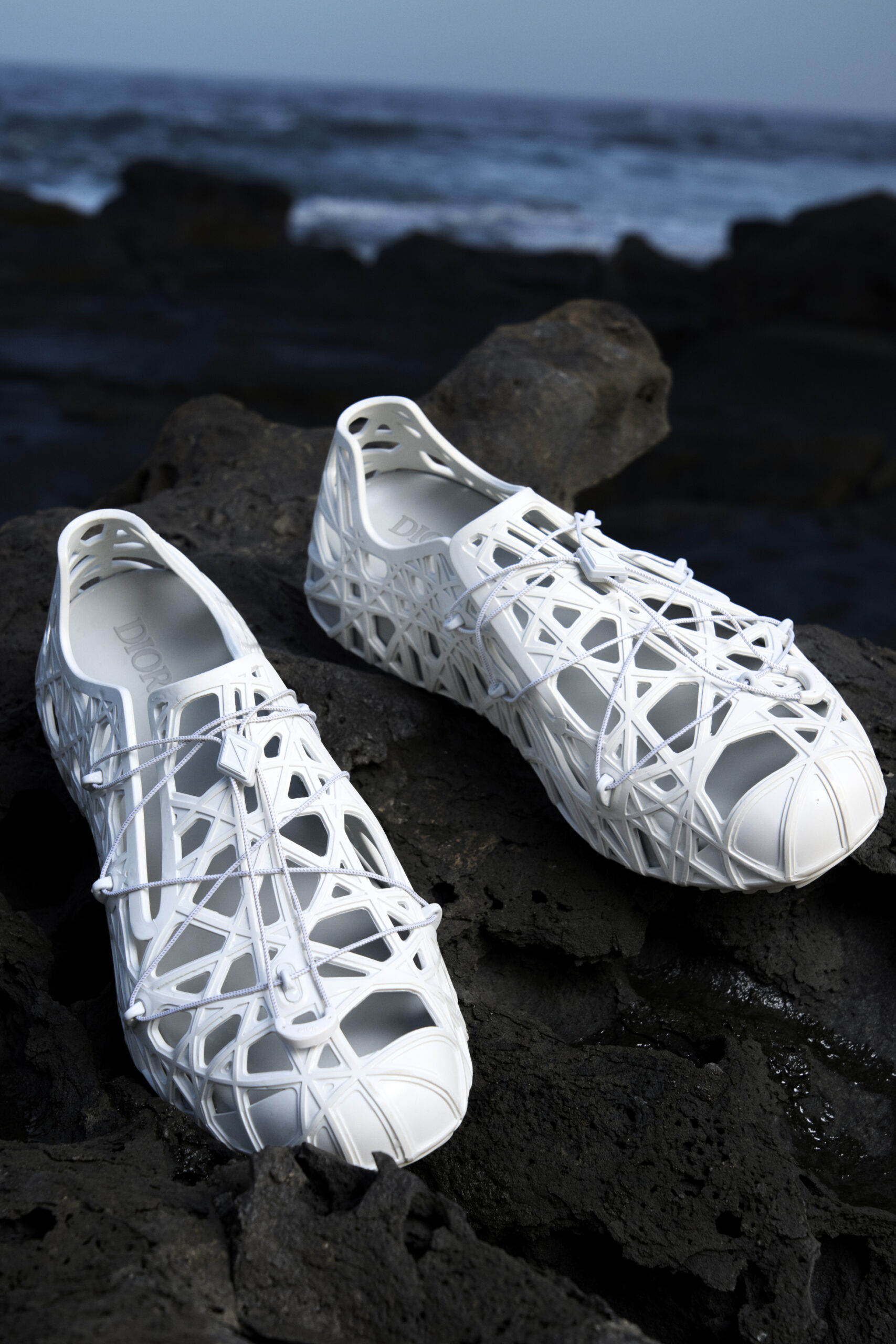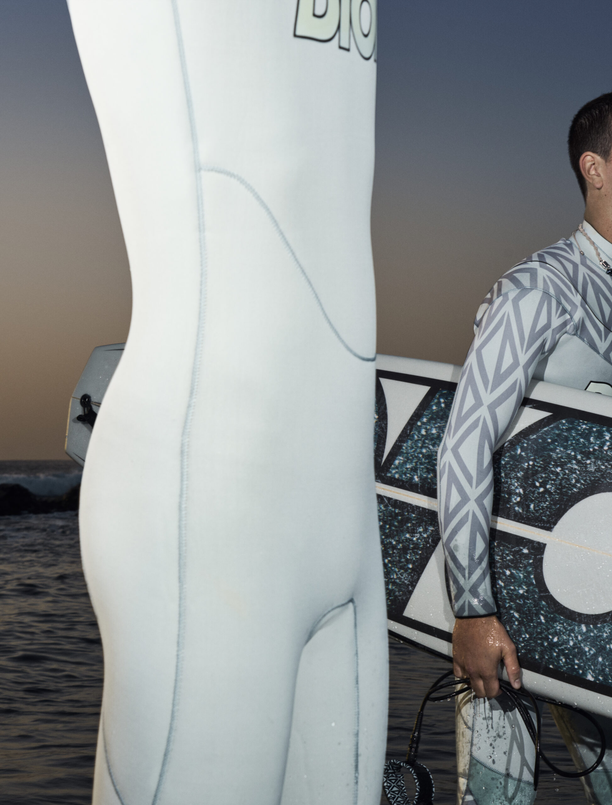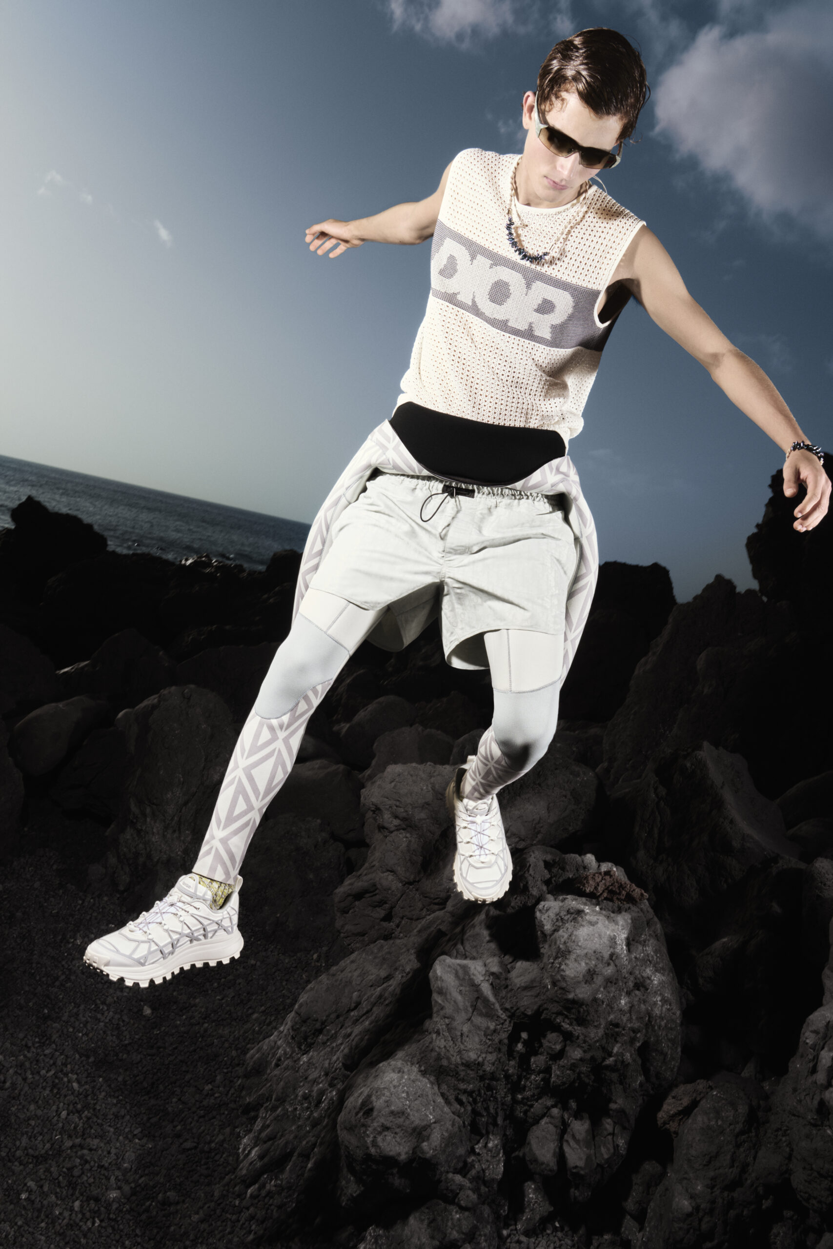 Le directeur artistique des lignes masculines de Dior, Kim Jones, a puisé son inspiration dans la passion du couturier-fondateur pour les fleurs, les jardins et la mer. Partageant cet amour pour la beauté du monde aquatique, il a souhaité concevoir une collection utilisant des matériaux respectueux de l’environnement. Ainsi, 96% des tissus utilisés dans cette collection sont recyclés, témoignant de l’engagement de Dior envers la durabilité.