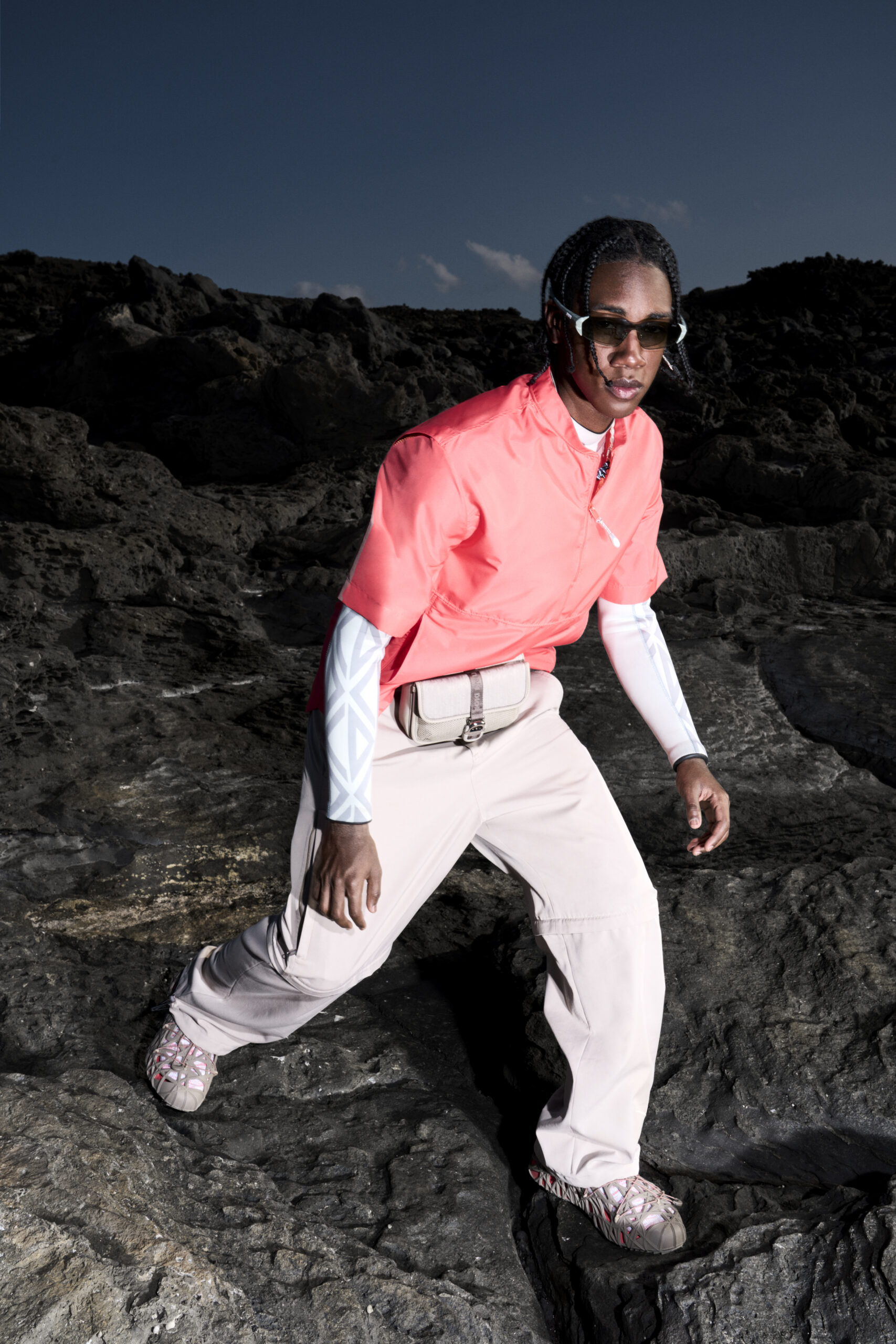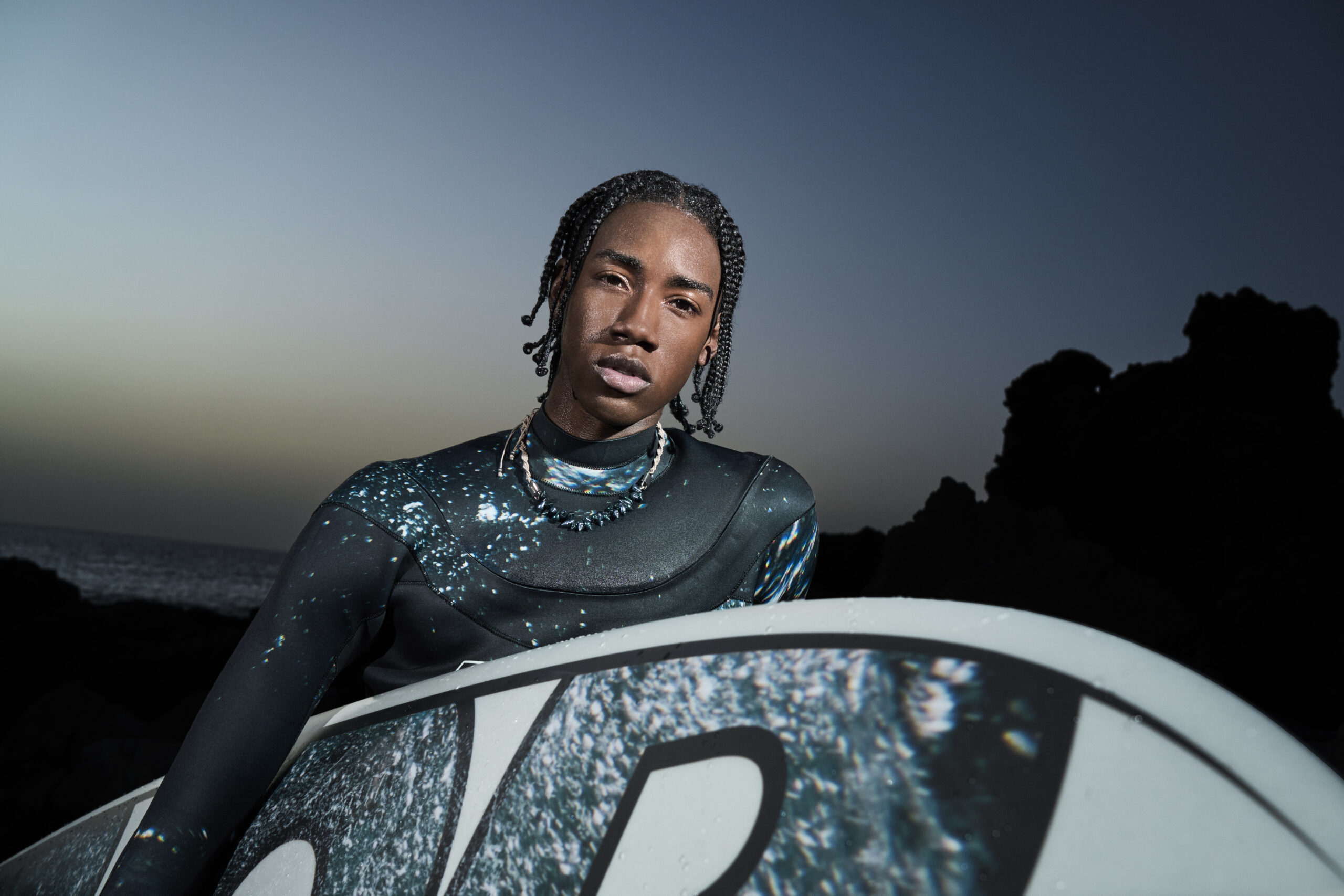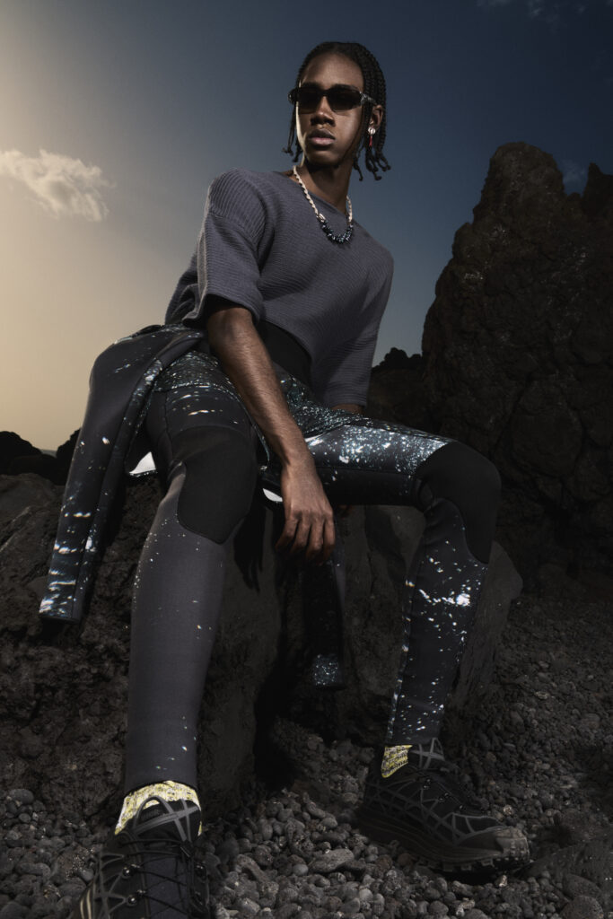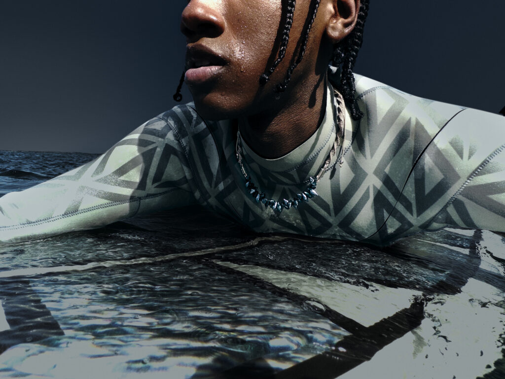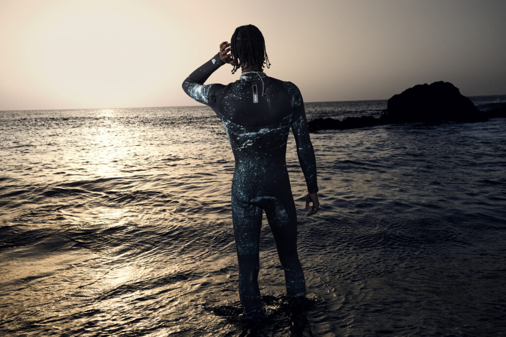 La splendeur de l’univers marin est célébrée à travers des imprimés représentant des clichés capturés sous l’eau, qui ornent les tenues de la collection. Parmi les pièces phares, on retrouve des combinaisons de surf réalisées en collaboration avec Vissla, une marque spécialisée dans les équipements de surf respectueux de l’environnement. De plus, une étole arbore également cet imprimé aquatique, permettant à chacun d’adopter le style de la plage avec une touche de sophistication.
