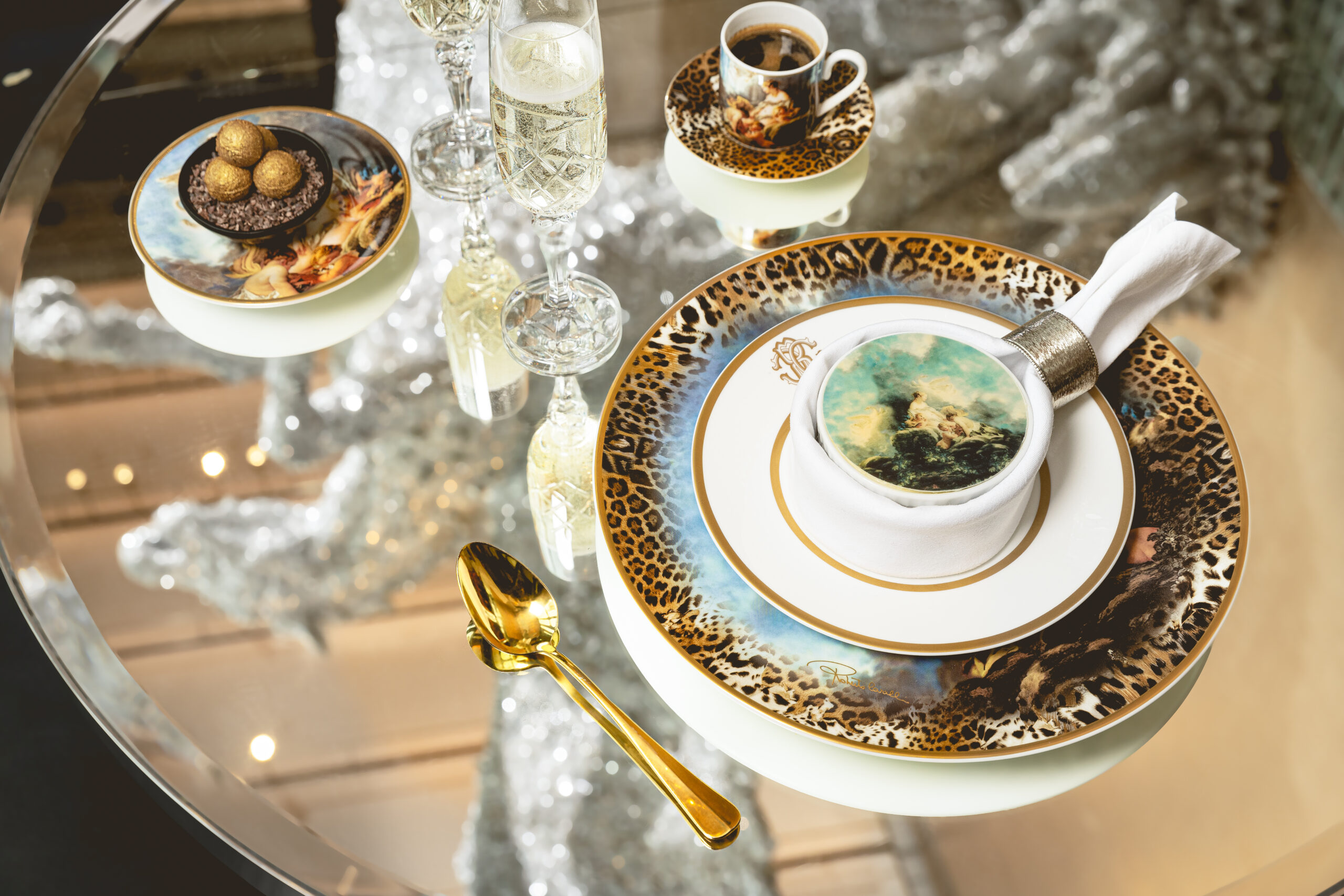 The Roberto Cavalli’s Wild Leda Summer will kick off in London where the brand teams up with the city’s luxury shopping mecca Selfridges install a dedicated pop-up store that, starting from June 1 for four weeks, will animate the department store’s second floor. Selfridges’ two main windows facing Oxford Street will showcase the Wild Leda capsule with a fascinating, surreal installation, that will also inspire the decoration of one of the department store’s restaurants, the Brasserie of Light, where the mythological inspiration of Wild Leda meets that of Damien Hirst’s Pegasus. For four weeks, the chic food destination will show customized Roberto Cavalli Home tableware, cushions and candles, and will offer a special menu designed in collaboration with the Italian brand.