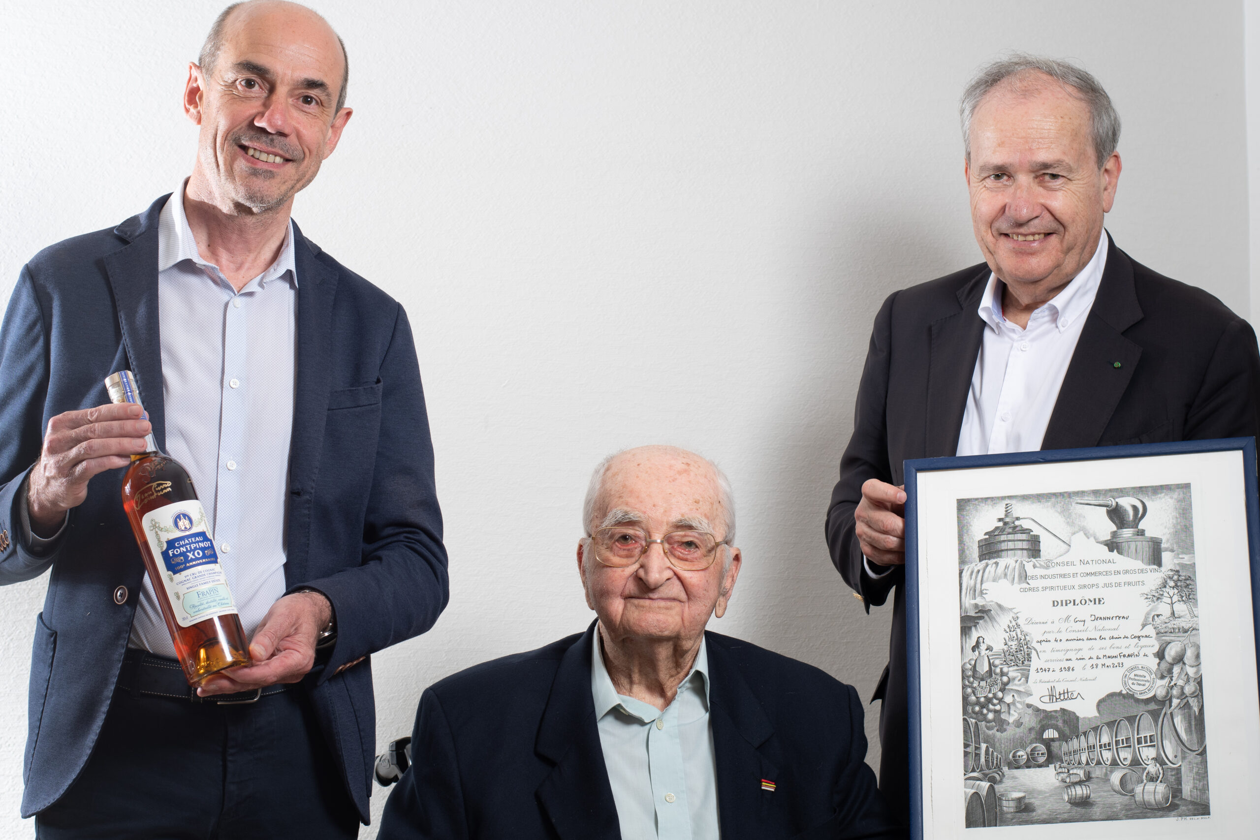 La famille Cointreau était fière d’être présente auprès de Guy Jeanneteau pour célébrer son centenaire. Ayant rejoint la Maison Frapin à l’âge de 24 ans en avril 1947 et y ayant travaillé jusqu’en juin 1986, il a contribué à l’élaboration des cognacs d’exception de la Maison. En 1978, il est devenu le premier membre extérieur à intégrer le conseil d’administration de l’entreprise. Son expertise et sa passion ont grandement contribué au succès de Frapin. Cette célébration était une occasion spéciale de rendre hommage à son engagement et à sa contribution inestimable.