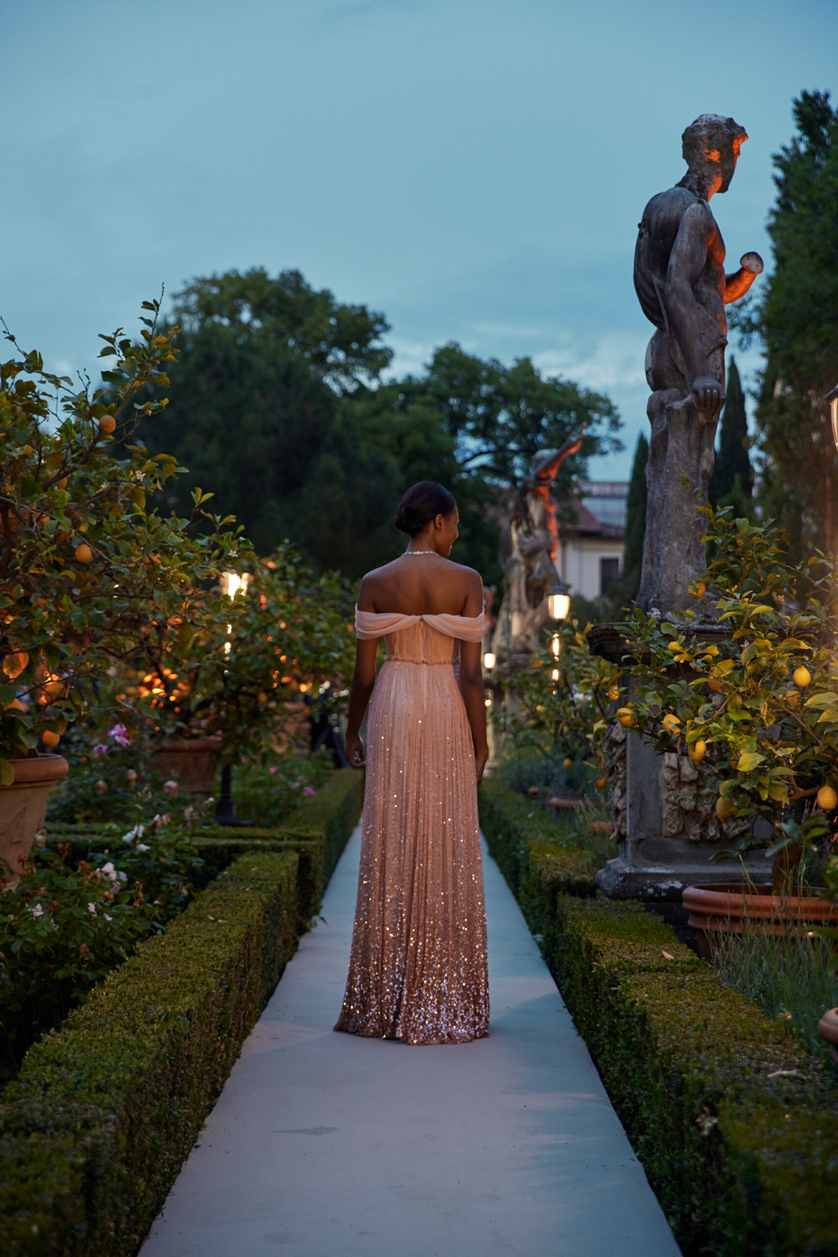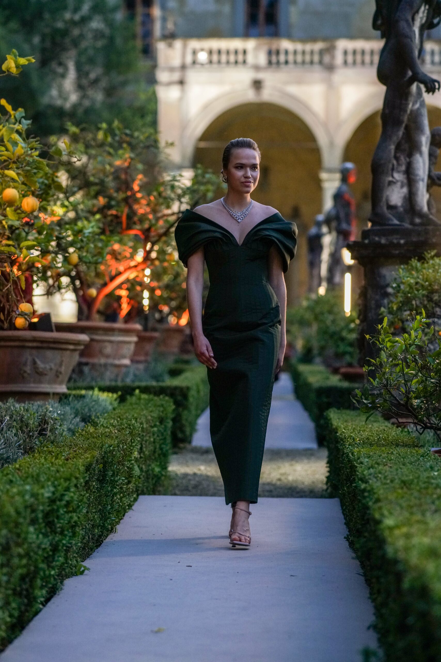 The collection is a celebration of beauty and feminine power through masterful draping, architectural cut, and lines that flow around the body, enhancing glamor and movement. The result is a veritable journey, across crafts and luxury, that moves from Cartier’s ornate and glistening to pure couture splendor, celebrating beauty as a plural act.