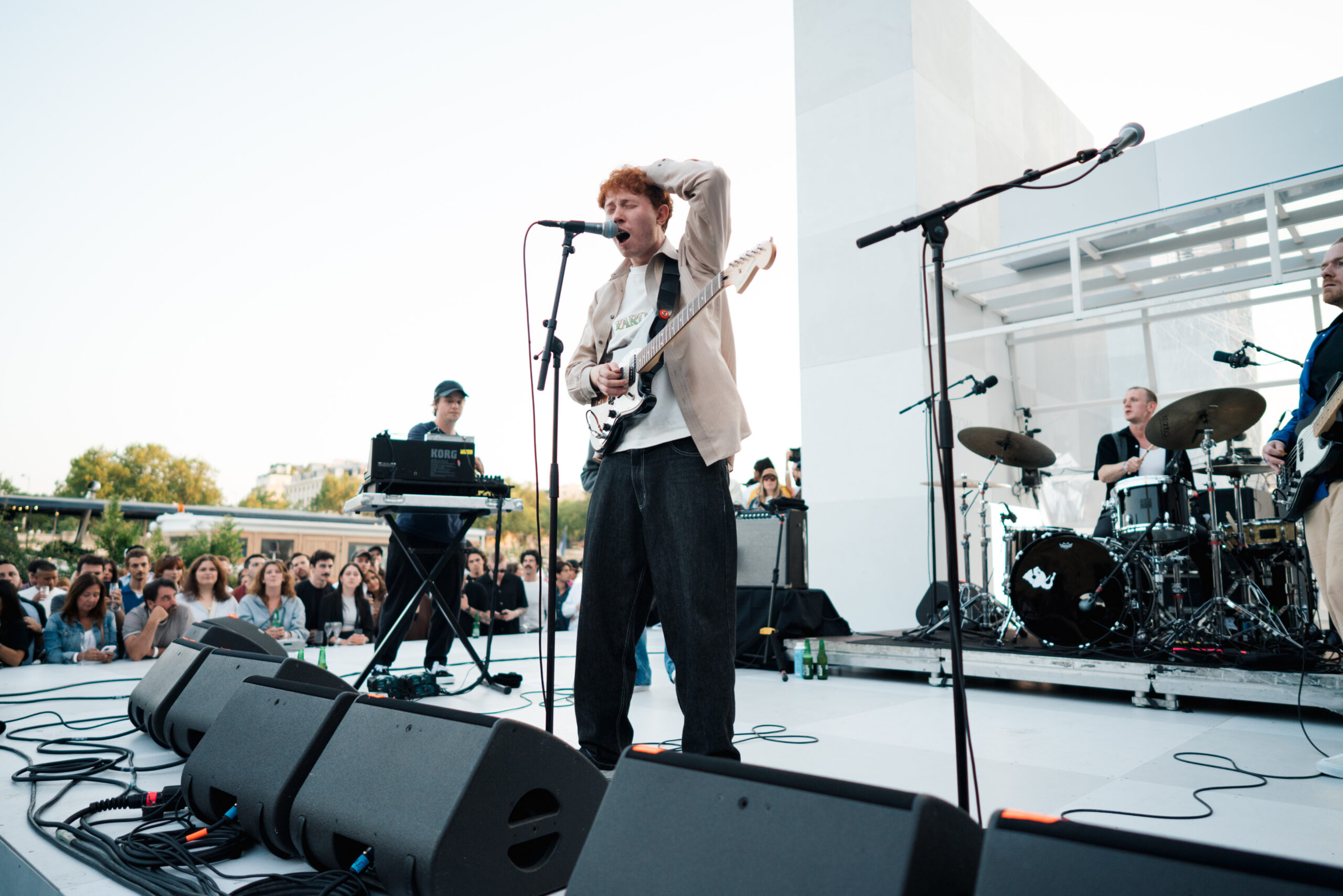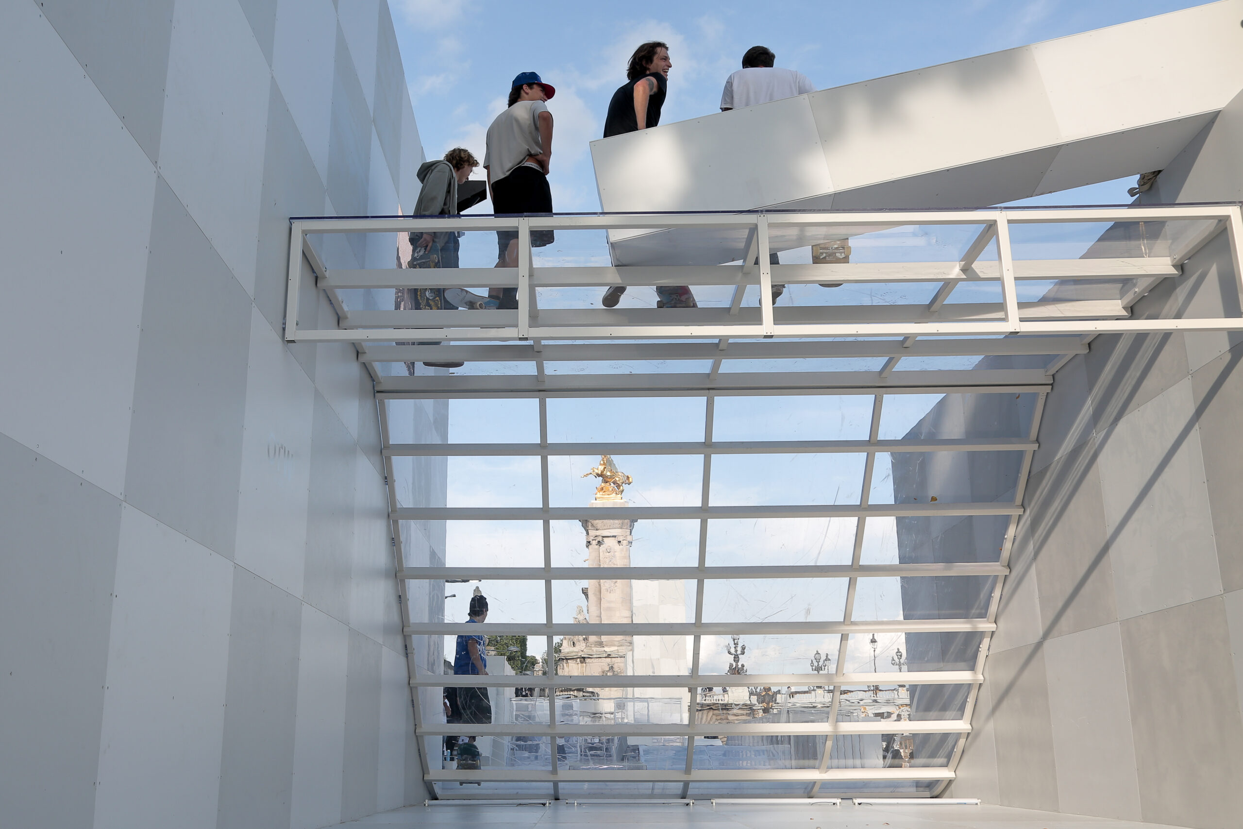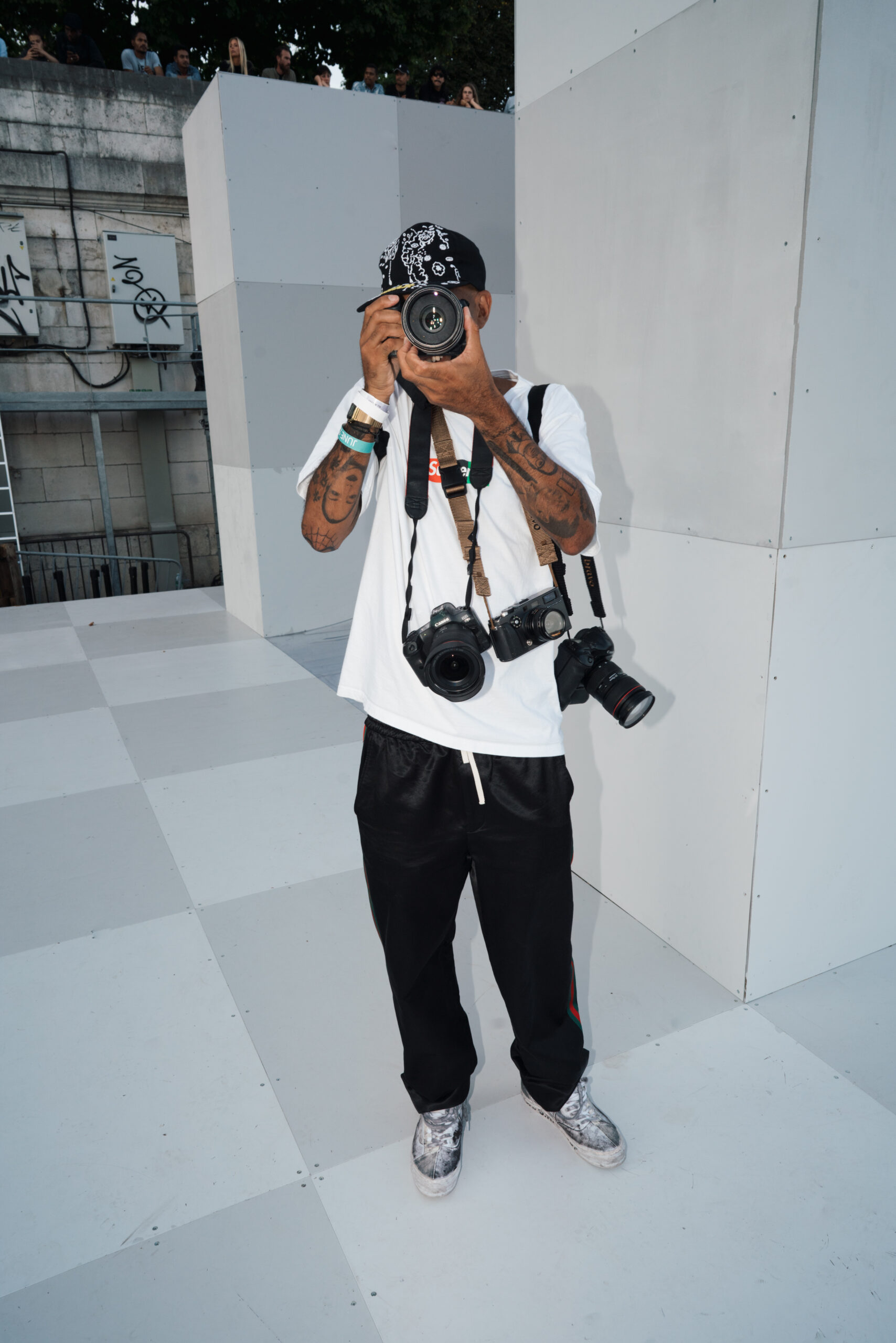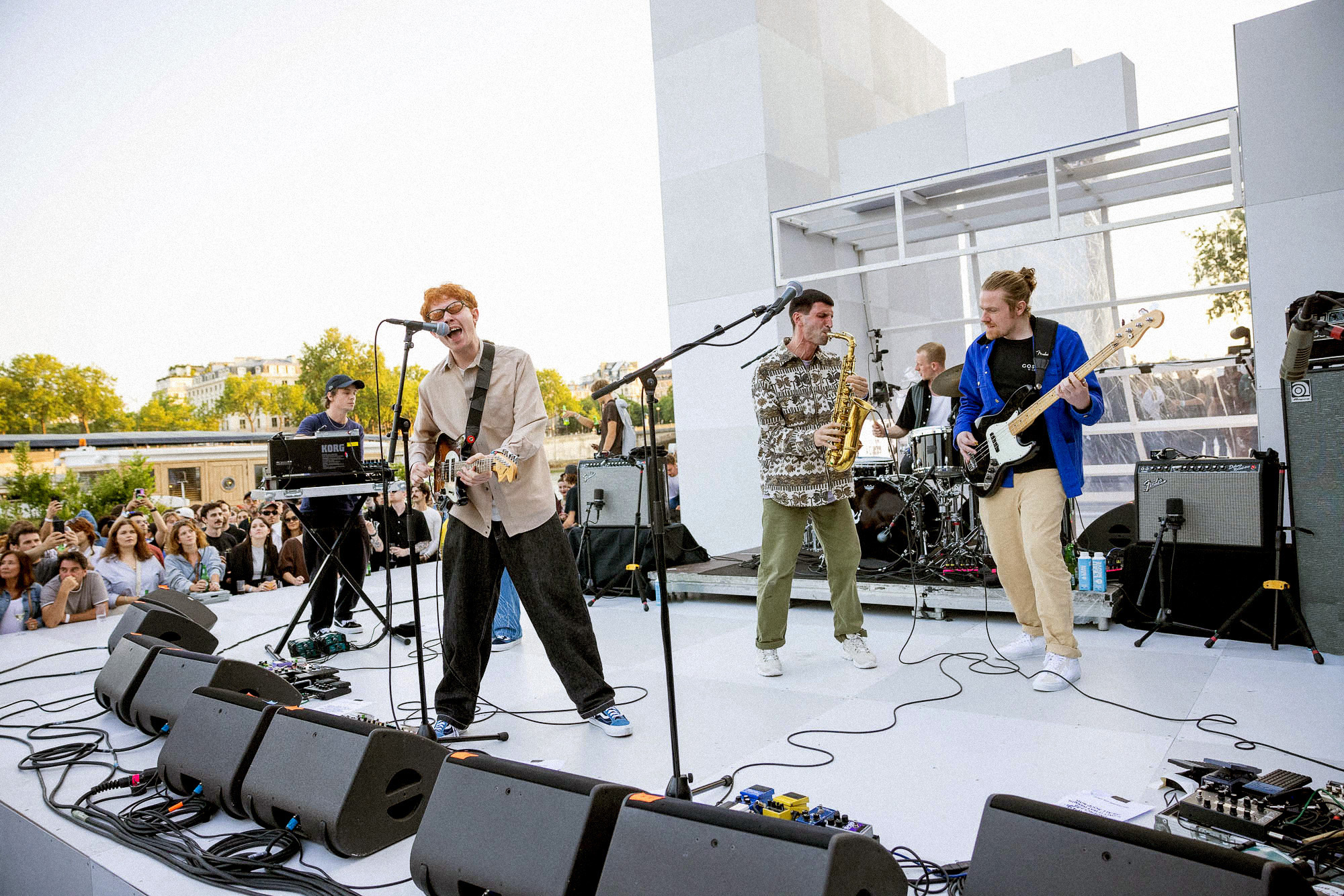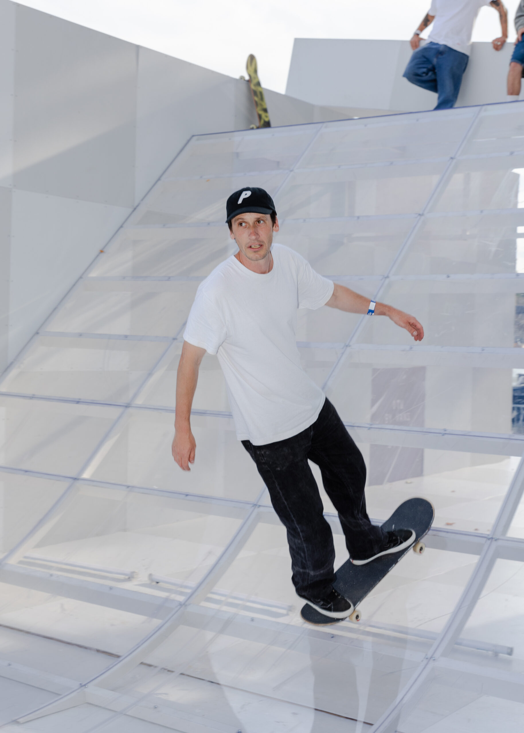 As the sun began to set, the style and skateboarding communities descended upon the banks of the Seine at Pont Alexandre III to witness a monumental skate installation—created in partnership with Unitedfront, PLAYLAB, INC., and California Skateparks—and performance by King Krule.