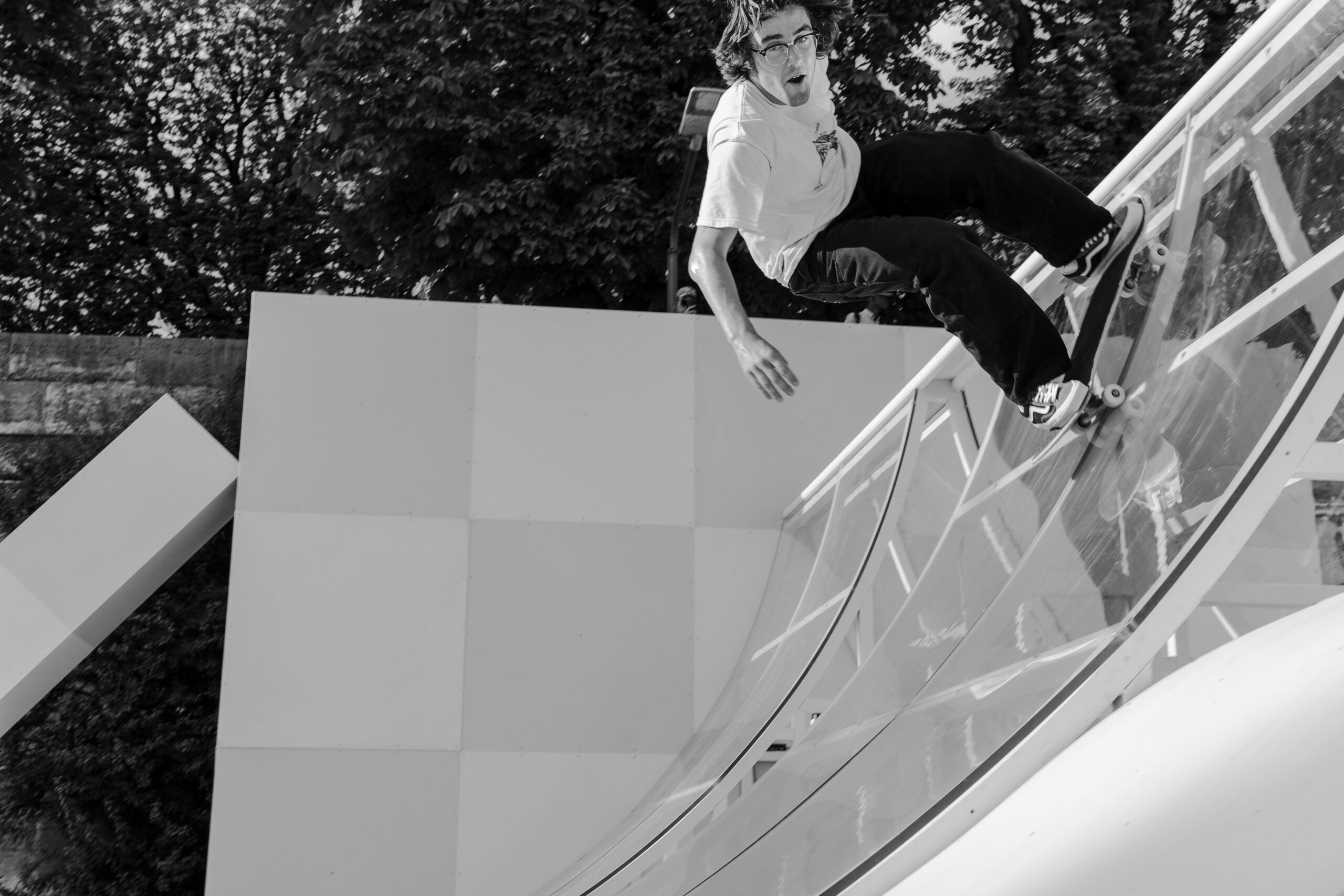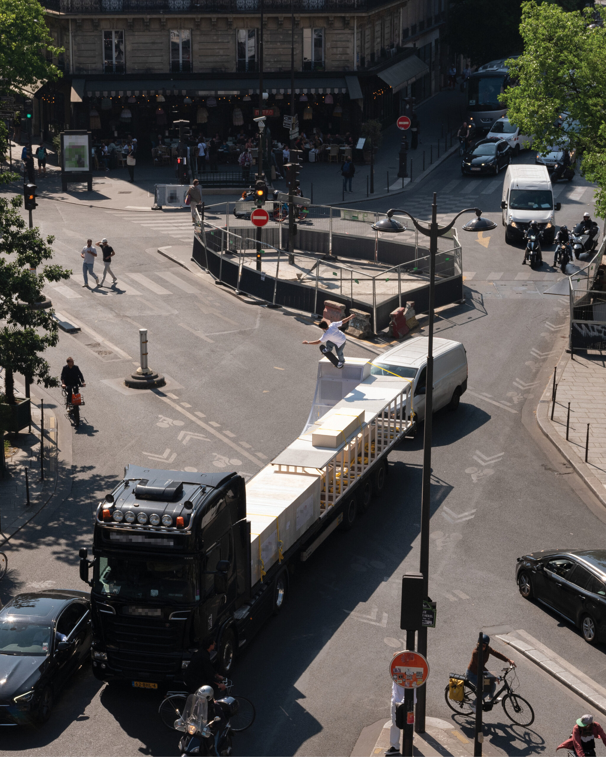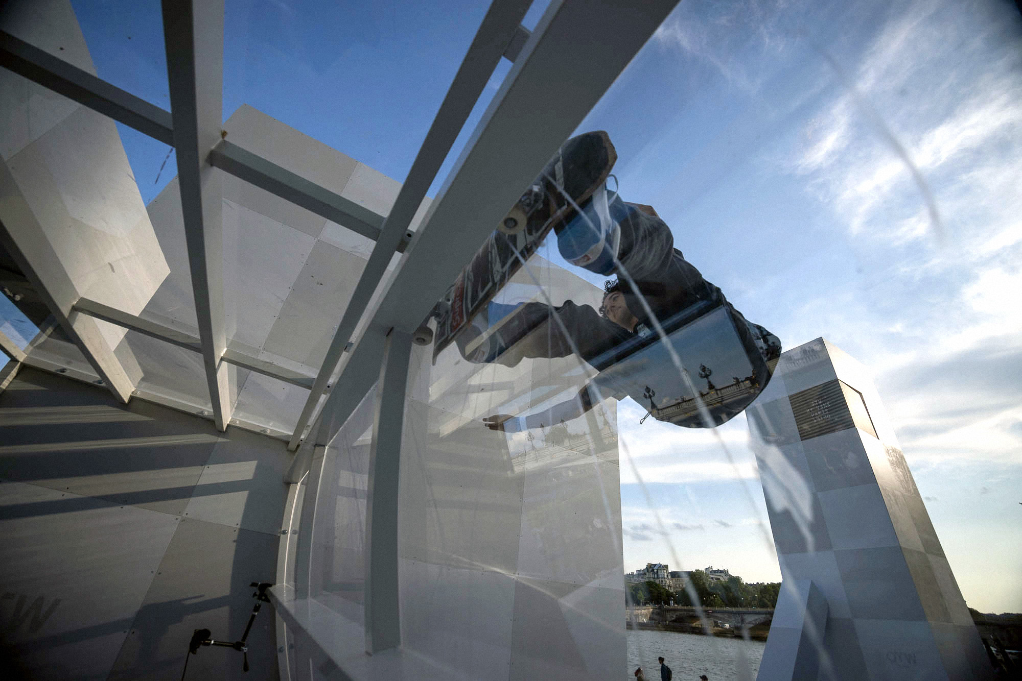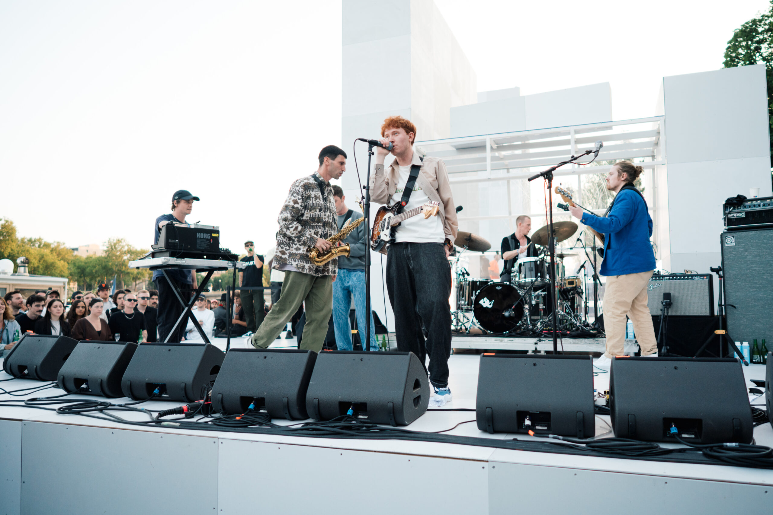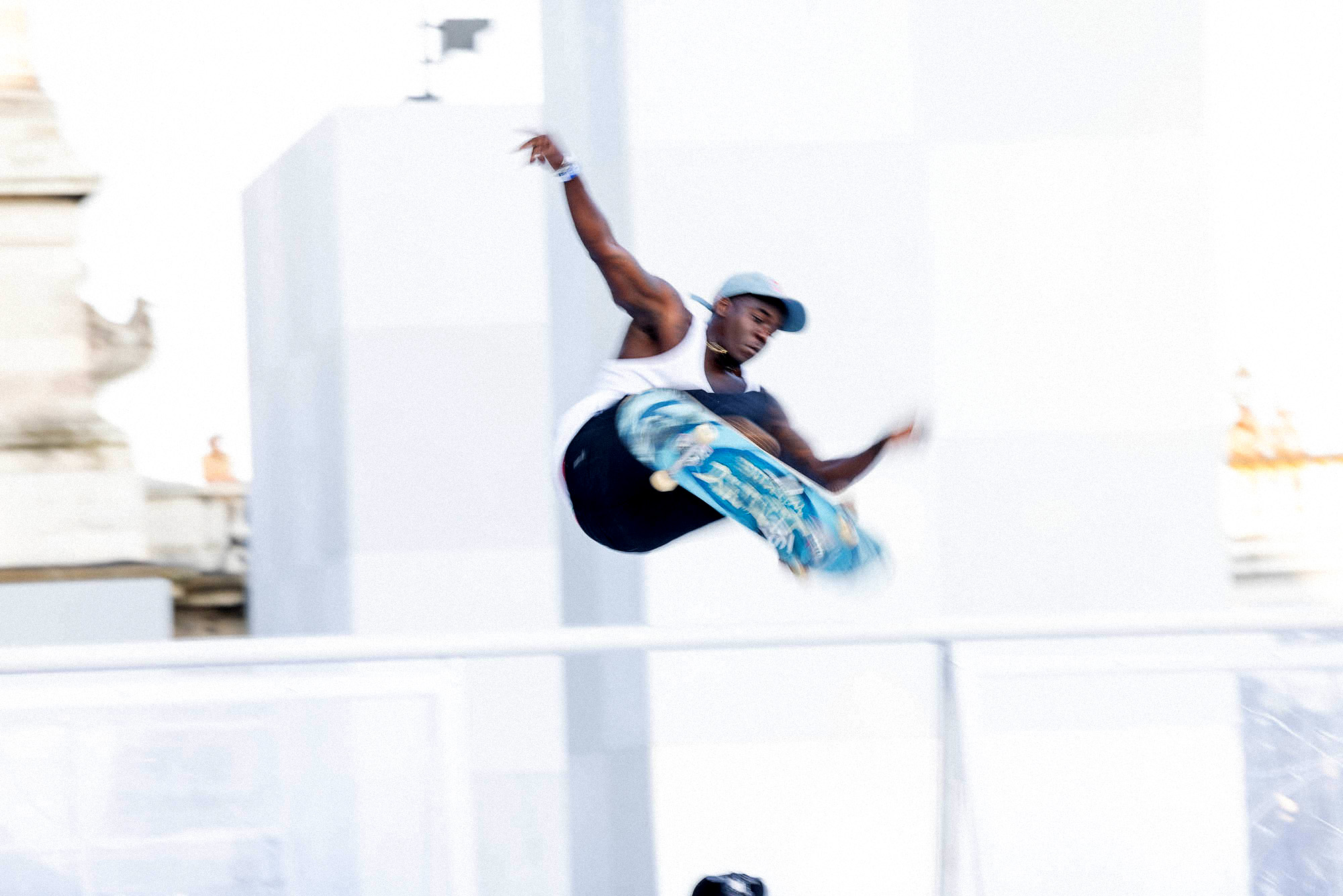As the sun began to set, the style and skateboarding communities descended upon the banks of the Seine at Pont Alexandre III to witness a monumental skate installation—created in partnership with Unitedfront, PLAYLAB, INC., and California Skateparks—and performance by King Krule.