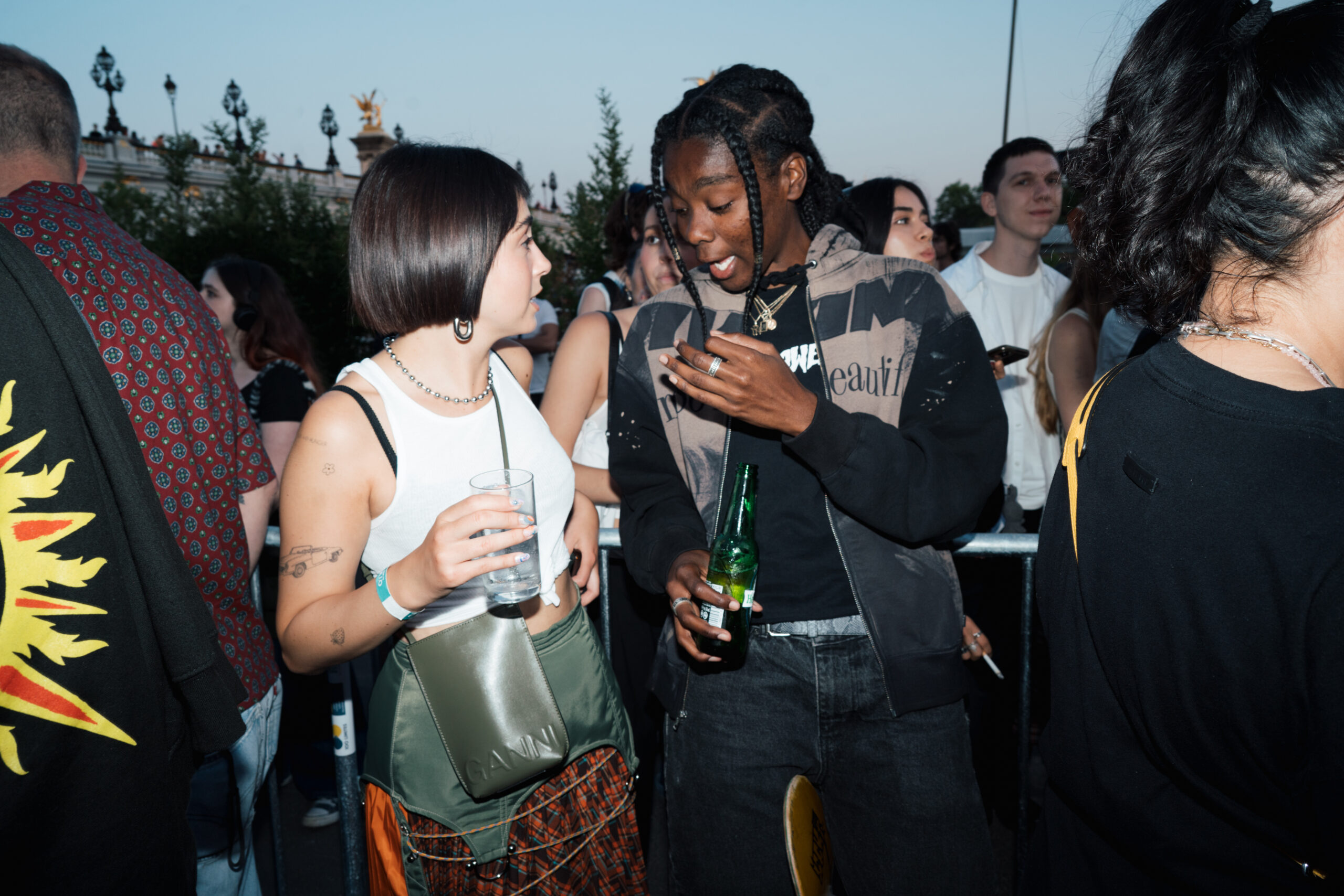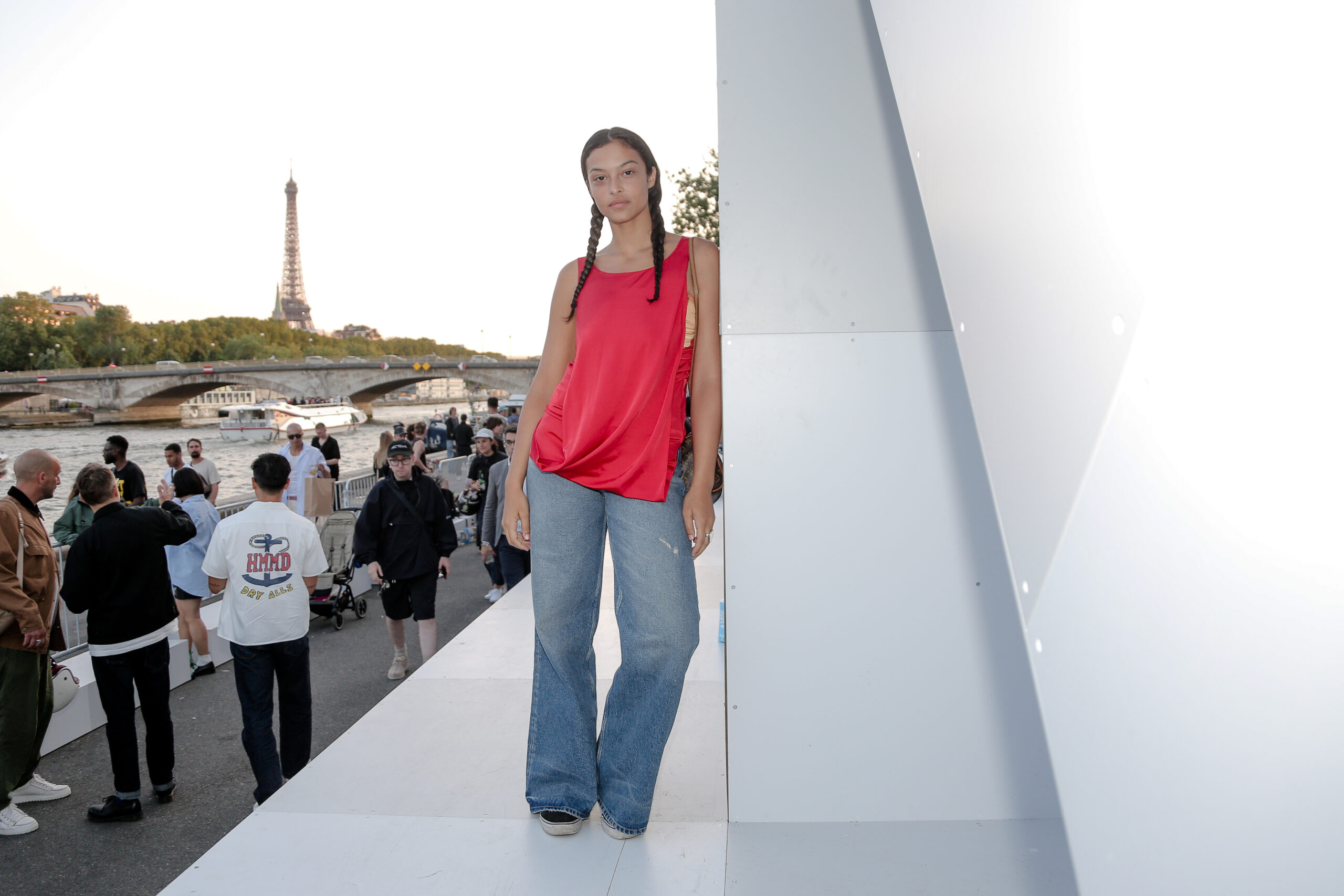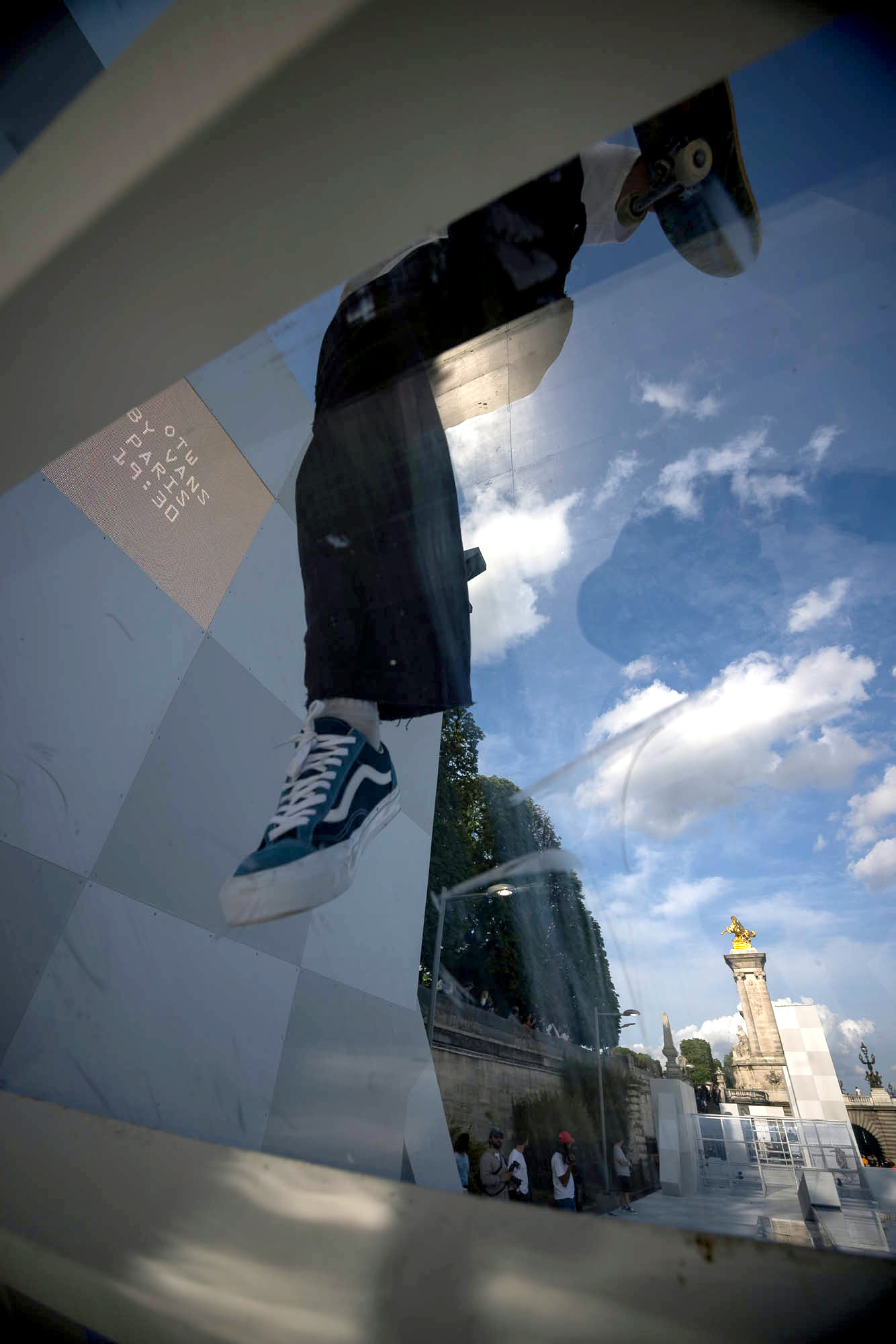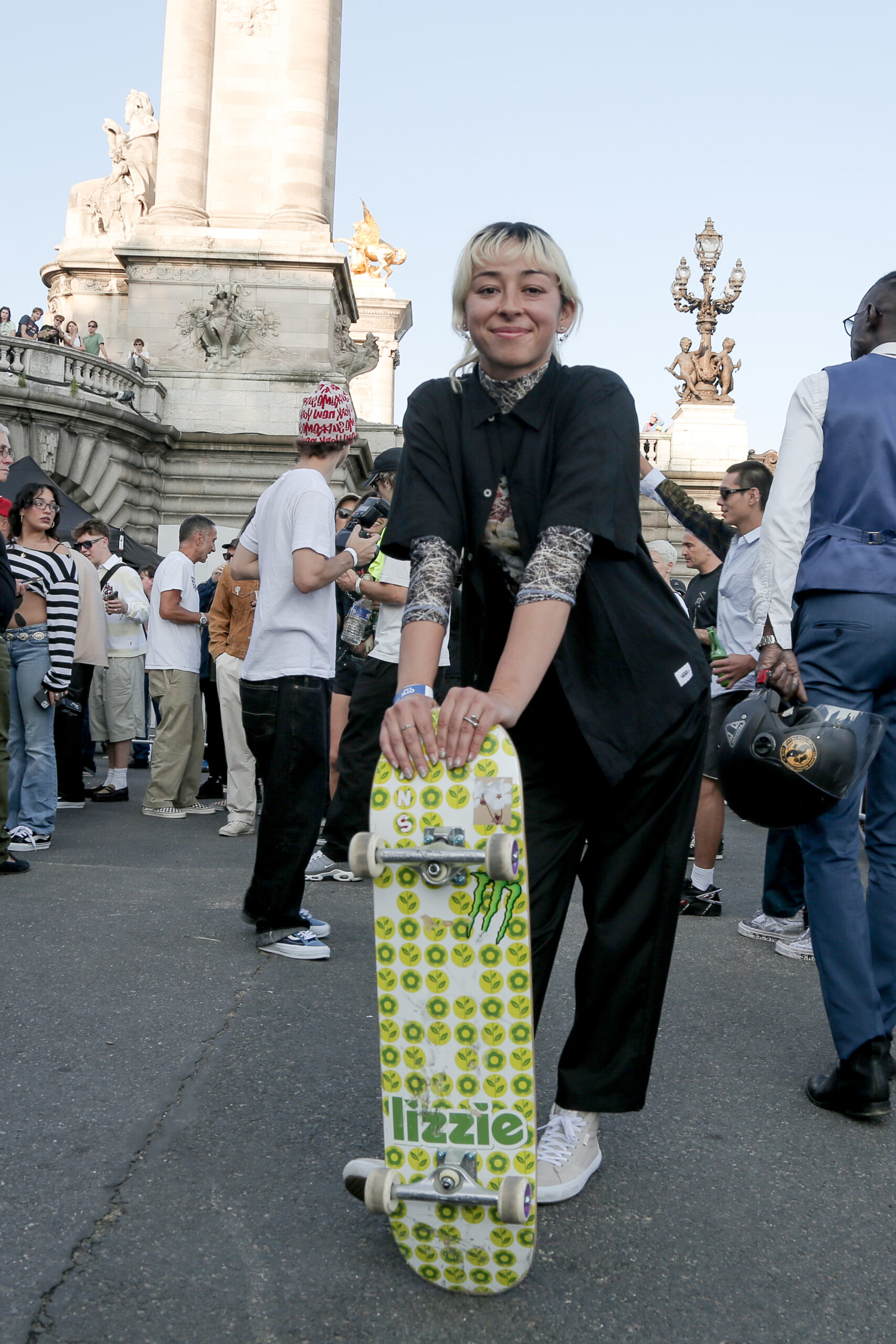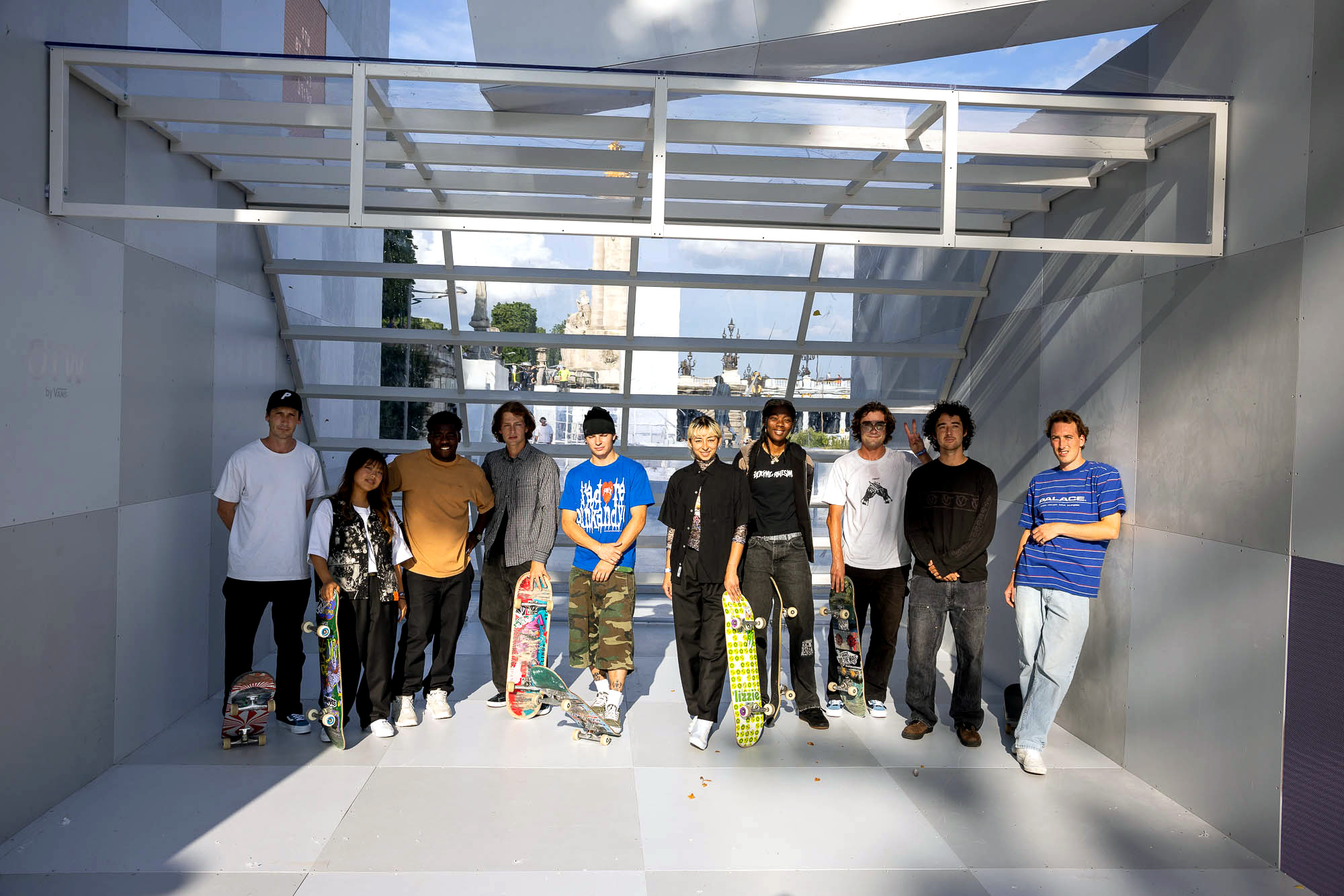 Attendees watched the Vans Skateboarding Team, including Beatrice Domond, Étienne Gagné, Rowan Zorilla, Lizzie Armanto, Mami Tezuka, Zion Wright, Diego Todd, and Axel Cruysberghs skate the OTW by Vans skate installation, set to the backdrop of the Eiffel Tower and music by Onyx Collective. Later in the evening, King Krule took to the stage and closed out the night, while Parisian passersby gathered on the bridge.