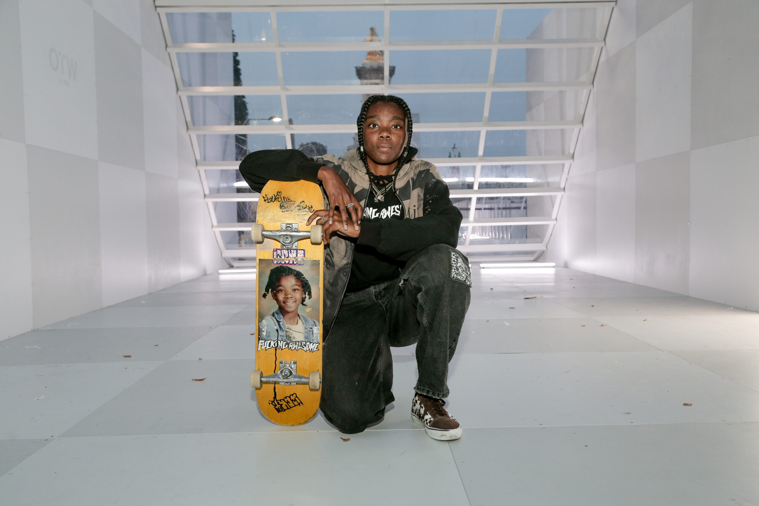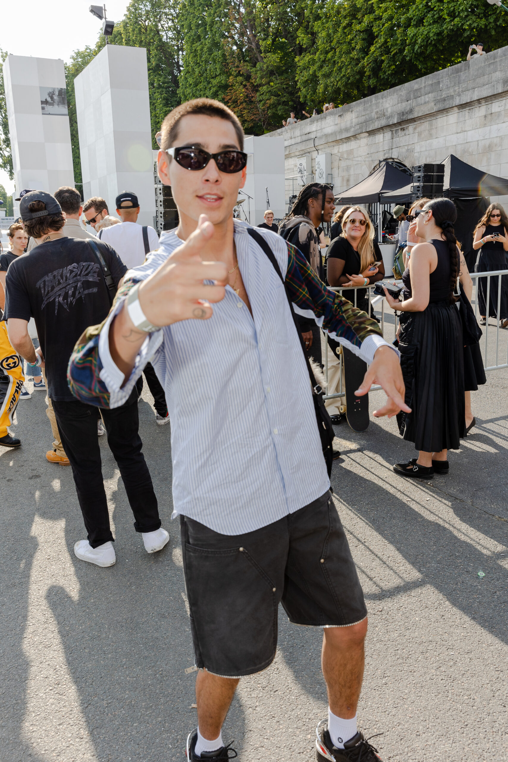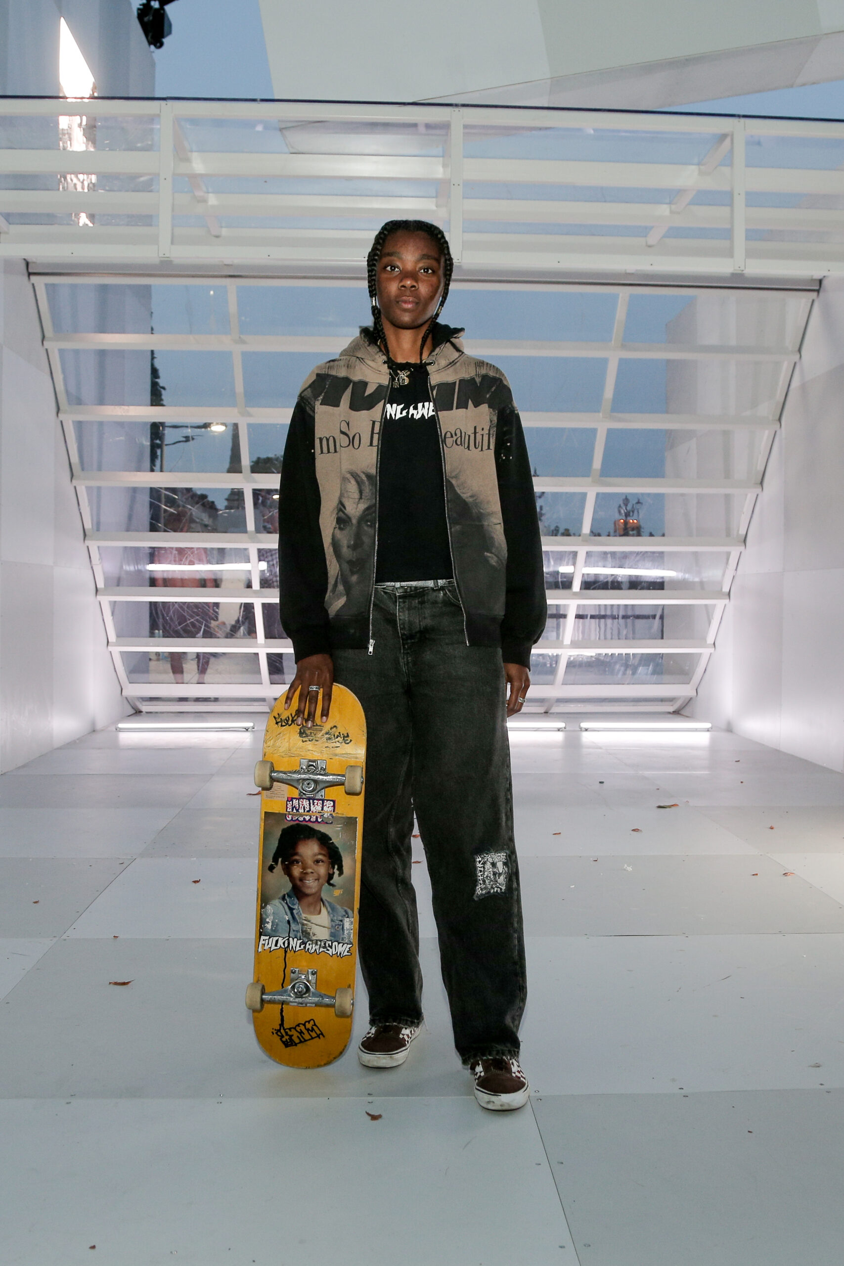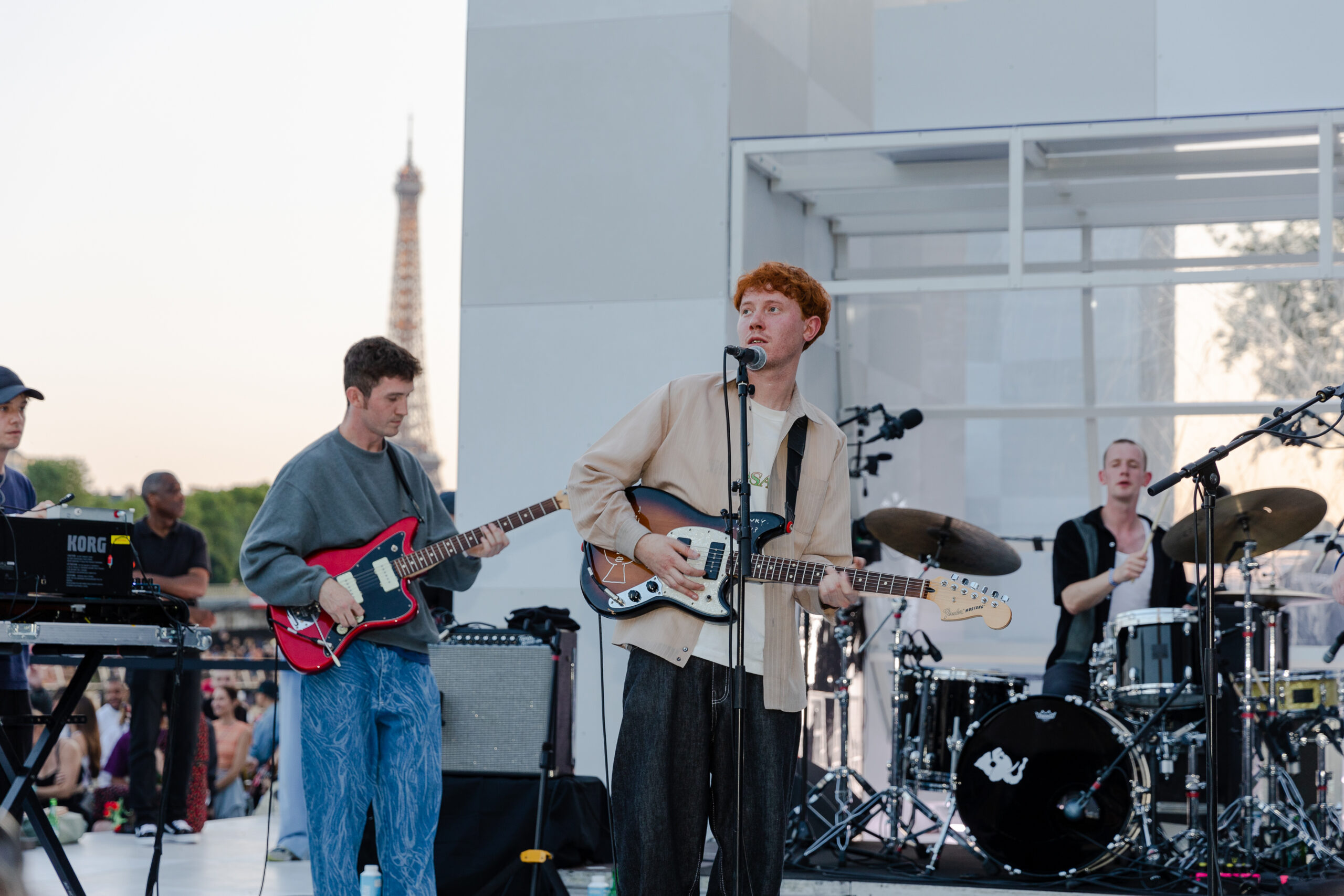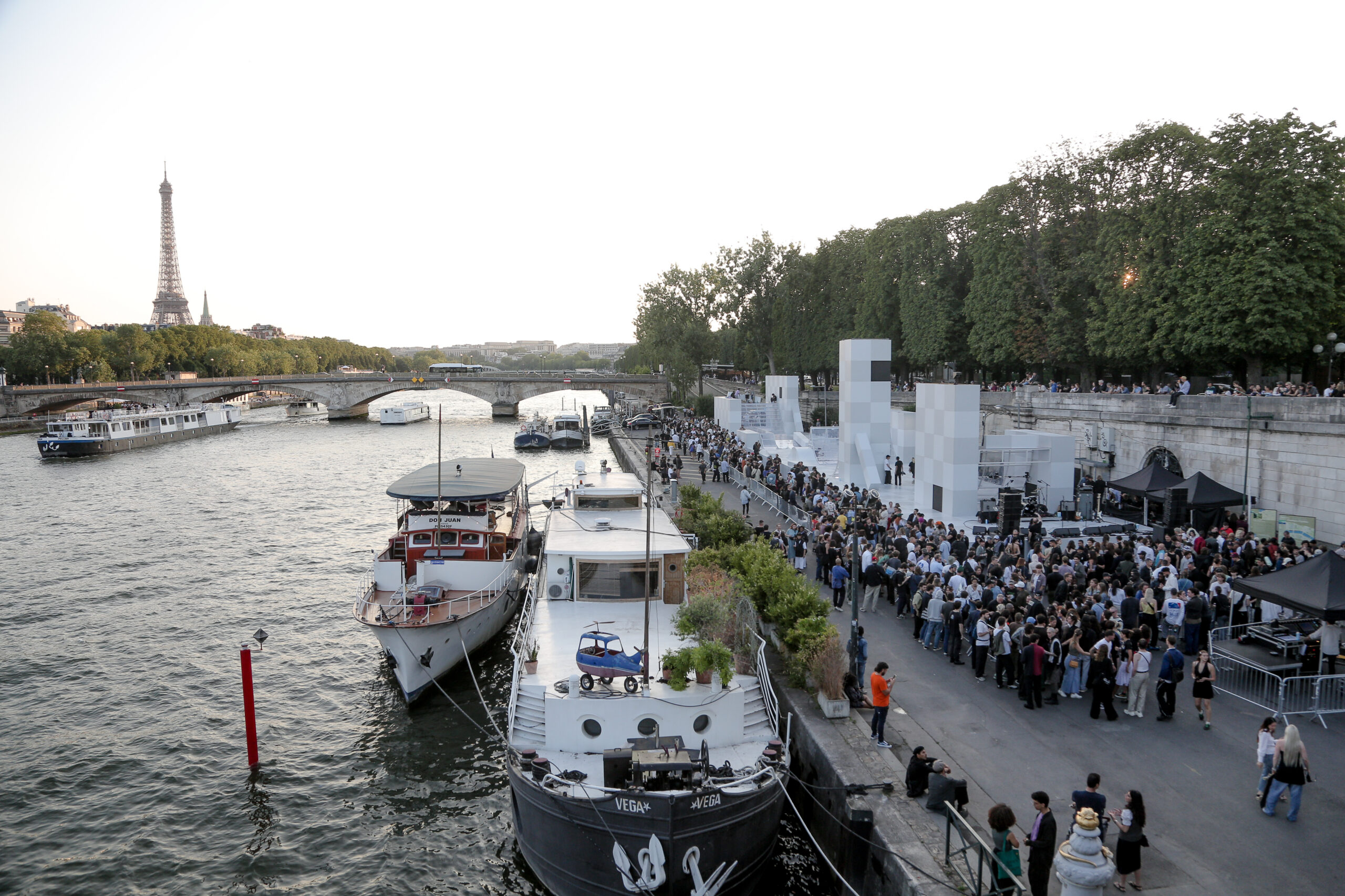 Attendees watched the Vans Skateboarding Team, including Beatrice Domond, Étienne Gagné, Rowan Zorilla, Lizzie Armanto, Mami Tezuka, Zion Wright, Diego Todd, and Axel Cruysberghs skate the OTW by Vans skate installation, set to the backdrop of the Eiffel Tower and music by Onyx Collective. Later in the evening, King Krule took to the stage and closed out the night, while Parisian passersby gathered on the bridge.